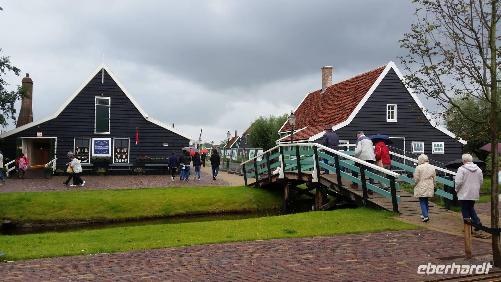 Hier können wir verschiedene alte Häuser, darunter den ersten Laden von Albert Heijn,(niederländische Supermarktkette), besichtigen. Neben den Souvenirläden kann man eine Käserei, eine Werft, einen Holzschuhwerkstatt, ein Bäckereimuseum, das Zaanse Uhrenmuseum besuchen. In der wahrscheinlich weltweit einzigen Farbmühle, De Kat, (die Katze) werden die Pigmente zur Farbherstellung gemahlen, wie es auch schon zur Zeit Rembrandts passierte.