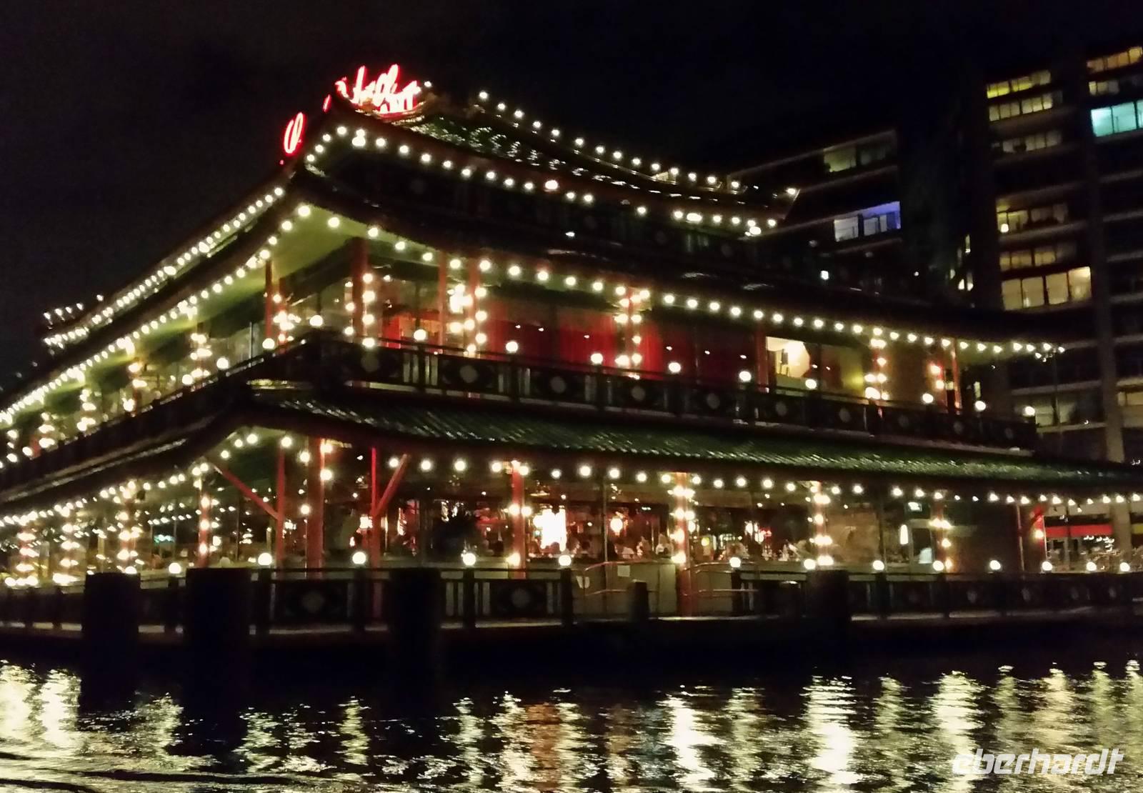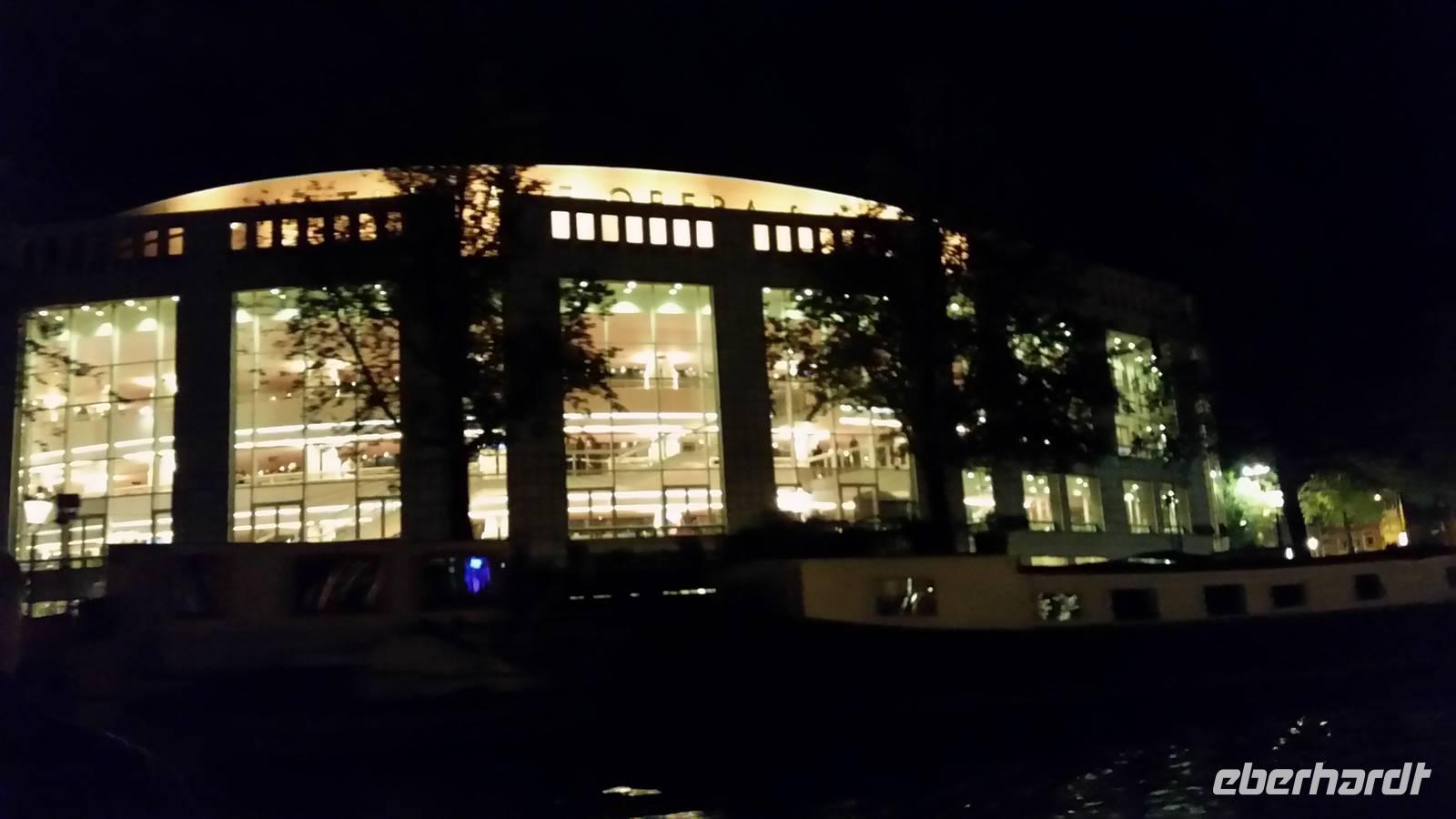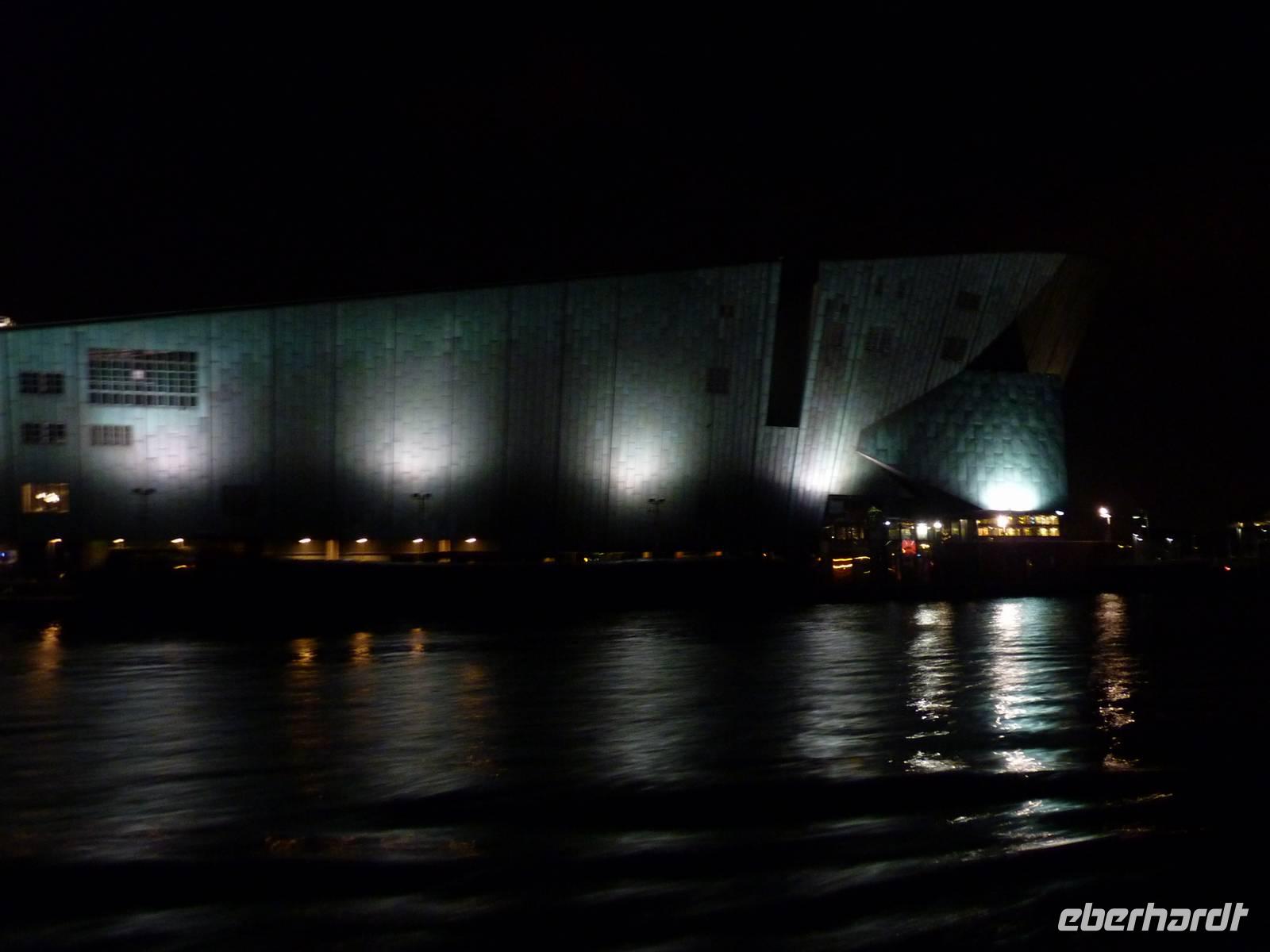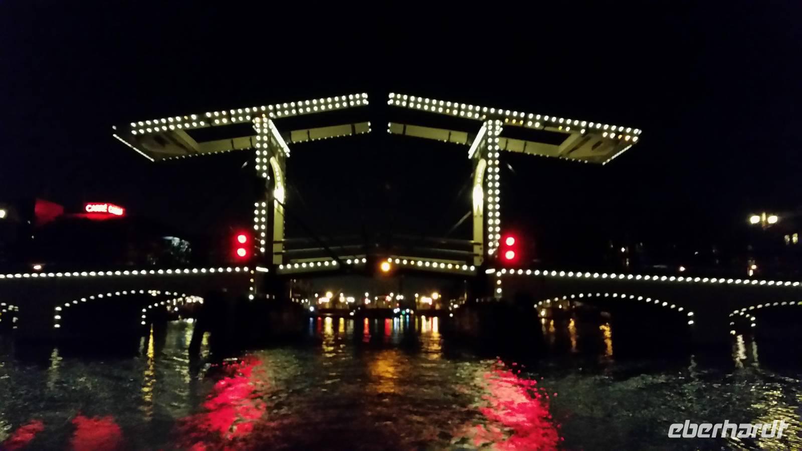 Krönender Abschluss unserer Reise war die Grachtentour am späten Abend. Durch das Oosterdok am Nemo vorbei - technisches Museum in Form eines Walfischs, weiter in die Oudeschans - vorbei am Montelban-Turm, mit Blick in die Nieuwe Amstel biegen wir etwa nach 270° um die Altstadt in eine innere Gracht um dann entgegen dem Uhrzeigersinn weiterzufahren. Viele Quergrachten mit unzähligen Brücken sehen wir bei unserer Fahrt, sowie zahlreiche der Prachthäuser in der Heren-, Prinsen- und Kaizersgracht und zum Abschluss ein Museumsschiff, einen Nachbau des V.O.C.