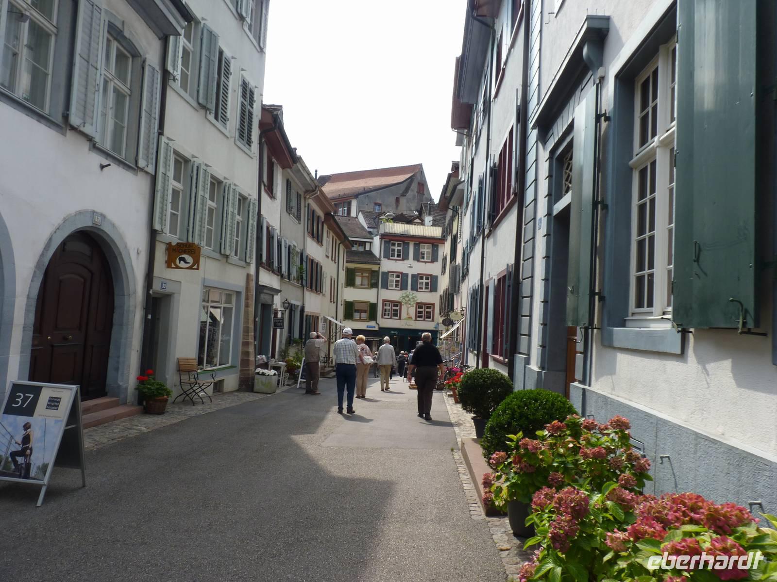 Hier endet unser geführter Rundgang und nachdem wir uns von unserer Führerin verabschiedet haben schlendern wir alleine weiter. Nun konzentrieren wir uns nicht nur auf die historischen Gebäude, denn Basel hat natürlich auch anderes zu bieten. Da sind z.B. die vielen kleinen Geschäfte mit edler Kosmetika, eleganter Bekleidung und Kunstartikel aus der Schweiz bis zu indianischer Kunst aus dem Norden Kanadas.Nach einem Mittagspäuschen gind es endlich an Bord der aRosa Flora.