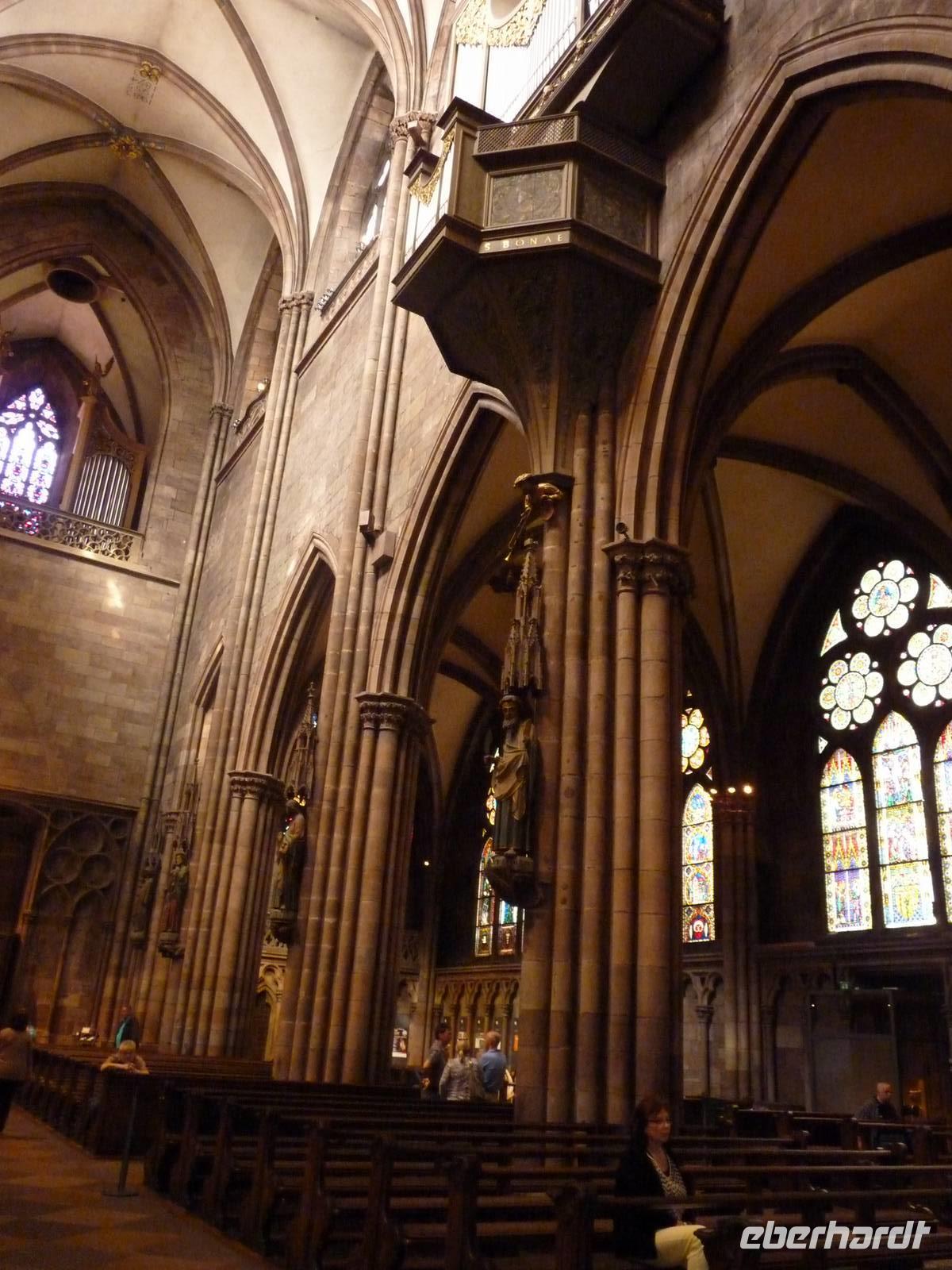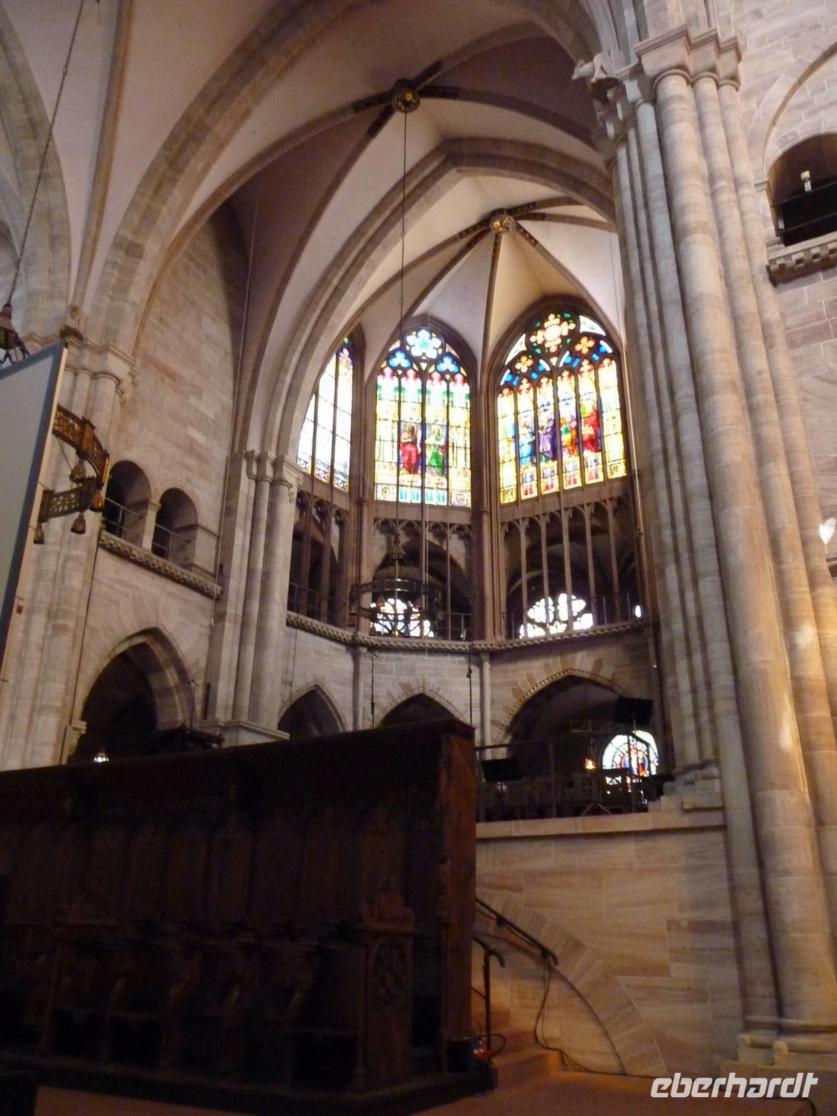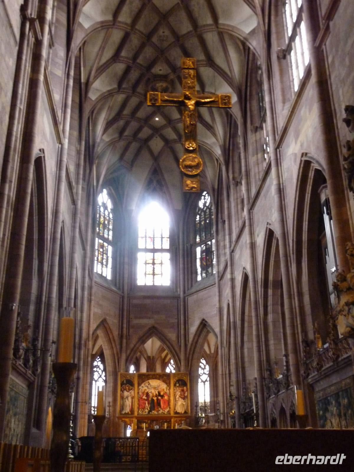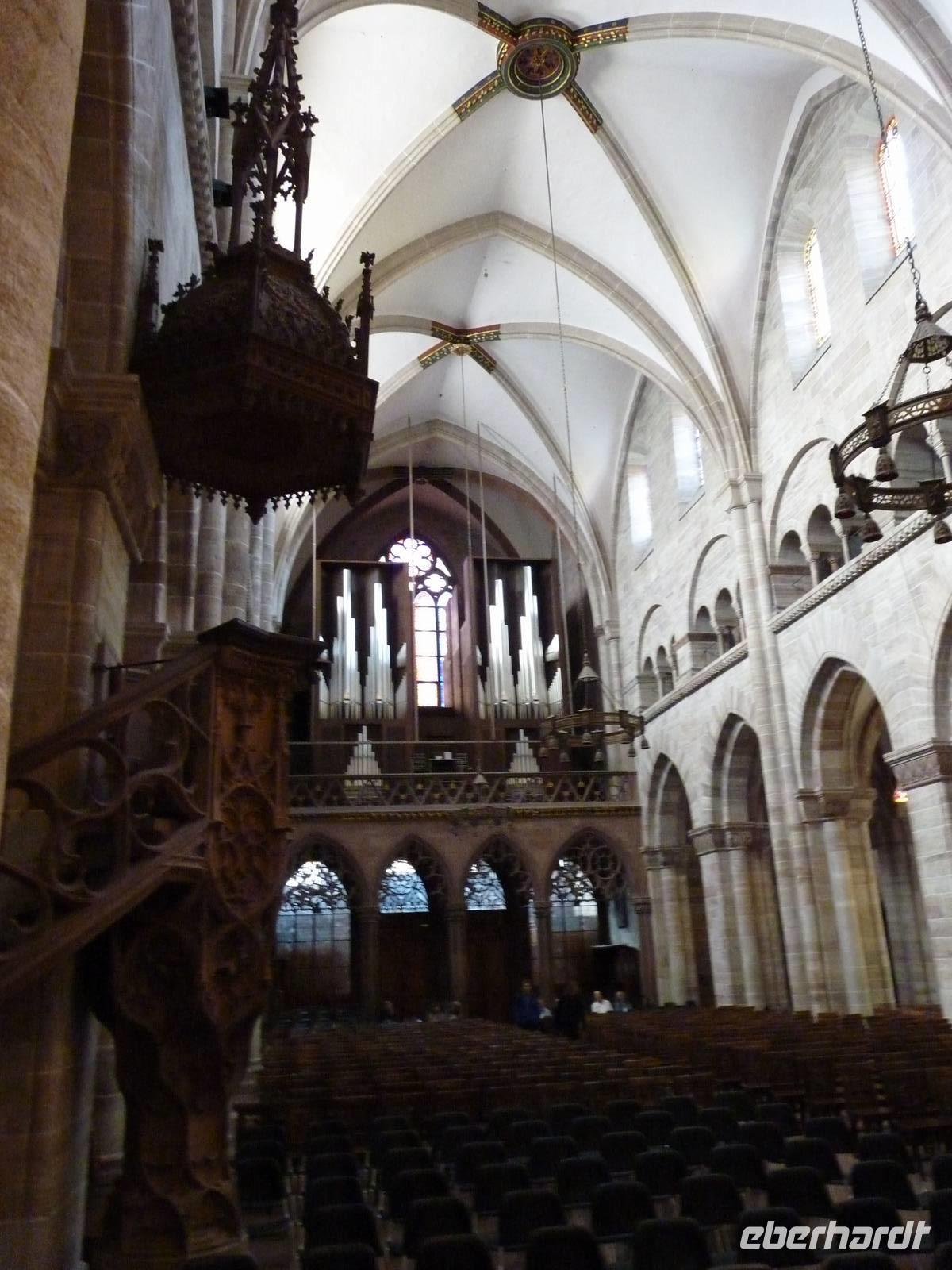 Ein weiteres Wahrzeichen: das Münster, aus rotem Sandstein, mit bunten Ziegeln und zwei schlanken Türmen. Bei dieser Kathedrale handelt es sich um eine spät romantische Basilika mit Querhaus und Chorumgang aus dem 12. Jahrhundert, doch sind die gotischen Akzente dabei nicht übersehbar. Bei einem schweren Erdbeben 1356 wurden das Gewölbe, die Türme und Krypten zerstörte und im gotischen Stil wieder aufgebaut.