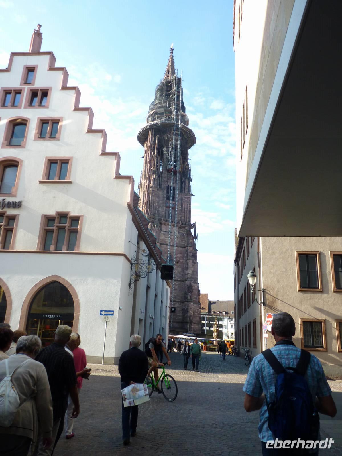 Das Freiburger Münster - Höhepunkt Nr. 1 - wurde im romanischen und größtenteils im gotischen Stil von ca. 1200 bis 1513 erbaut. Ein wahrer Blickfang ist der imponierende, 116 Meter hohe Turm des Freiburger Münsters, der laut einer Äußerung des bekannten Basler Historikers und Schriftstellers Carl Jakob Burckhardt „der schönste Turm der Christenheit" sei und bereits um 1330 fertig war. Gleich gegenüber dem Freiburger Münster auf der Südseite des Münsterplatzes liegt das Historische Kaufhau.s Es war das erste kommunale Kaufhaus für den Warenumschlag und die Zollabwicklung. Ein echter Hingucker sind die Wappen und der Figurenschmuck an der Hauptfassade, die Hans Sixt von Staufen schuf und eine Reverenz an das Haus Habsburg darstellen und im 14 Jahrhundert errichtet wurde.
