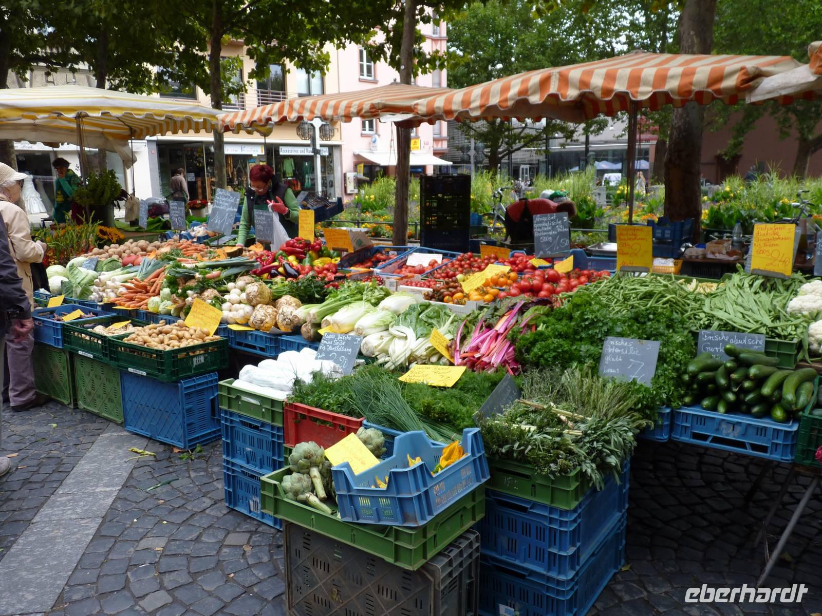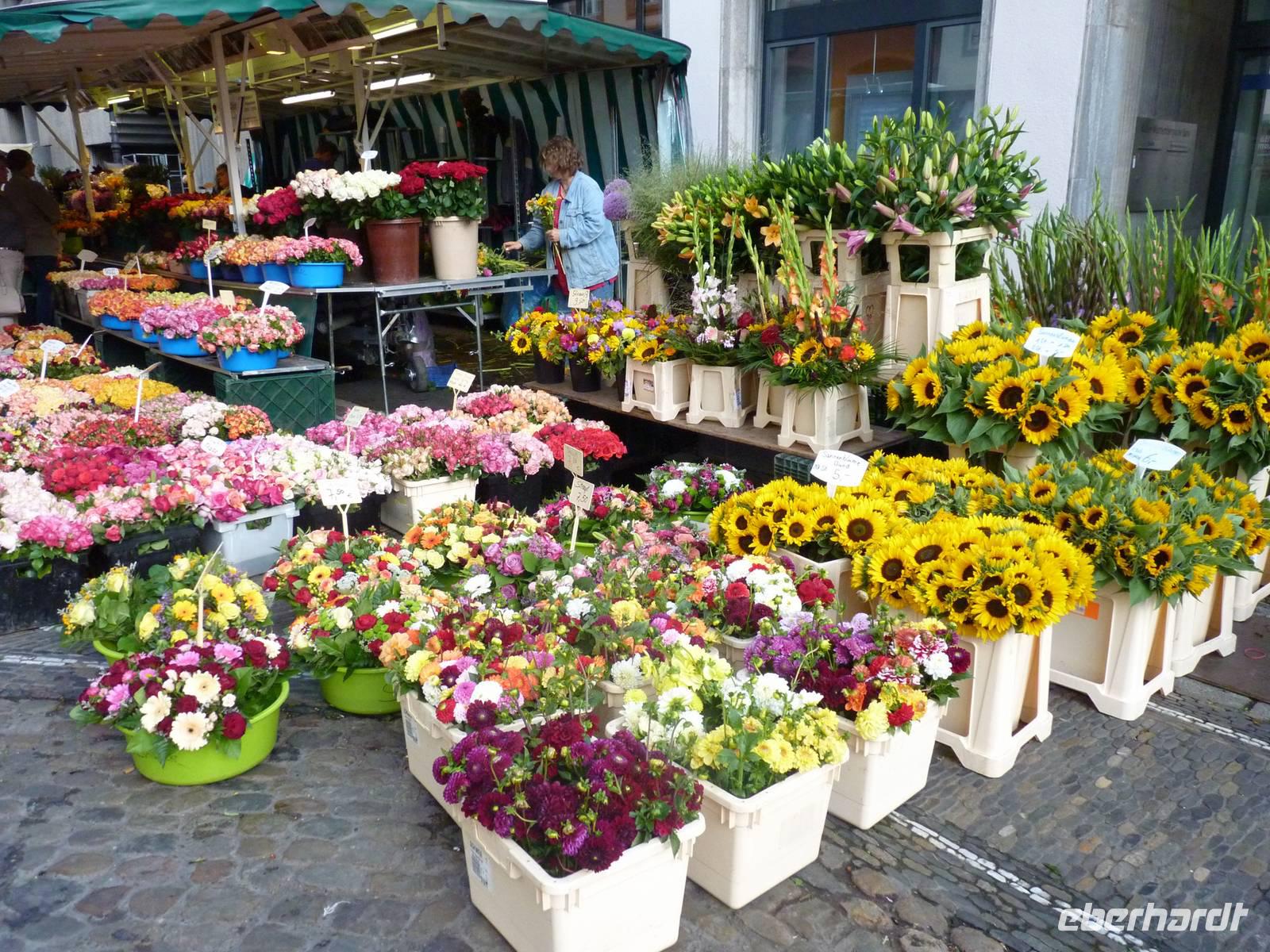 Vom Parkplatz war es nicht weit bis zum Münsterplatz, wo heute reges Markttreiben herrschte.