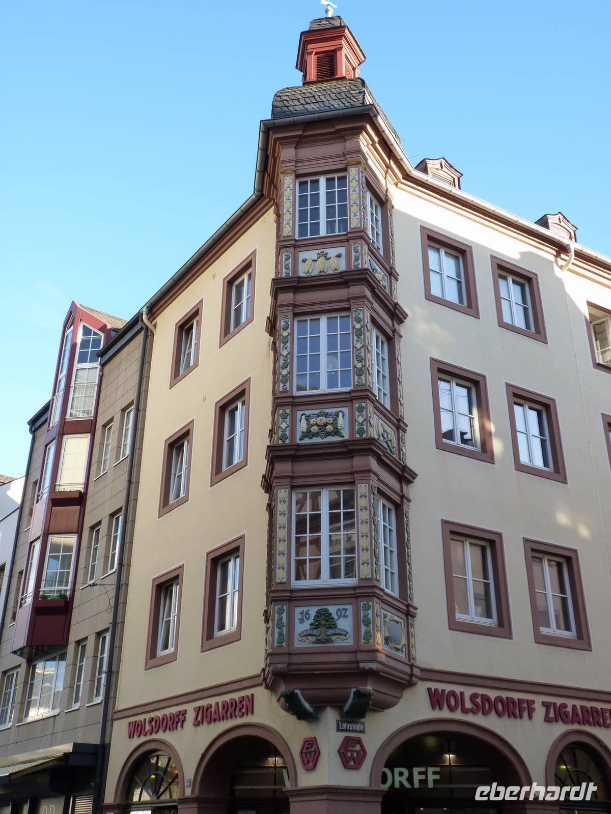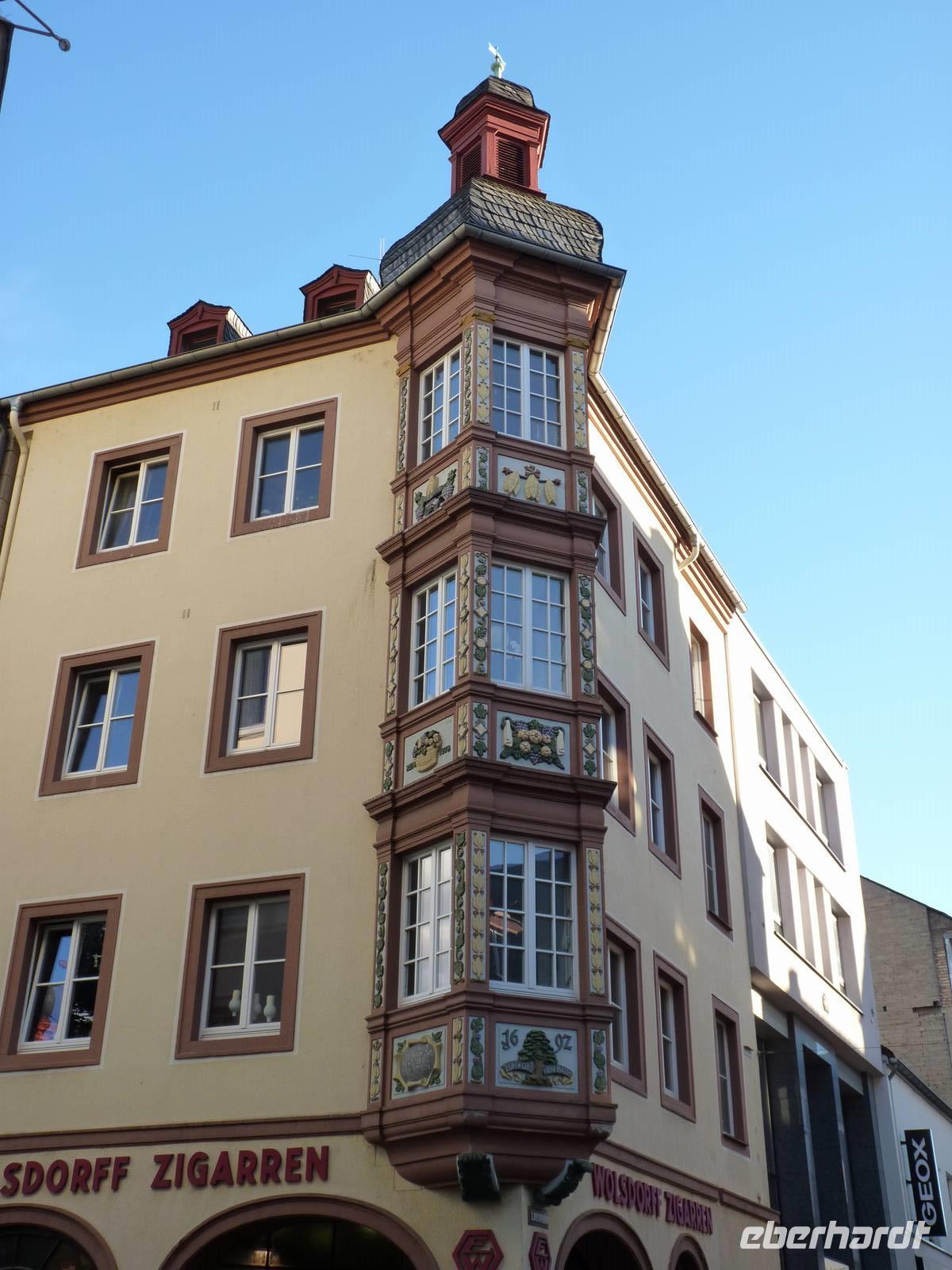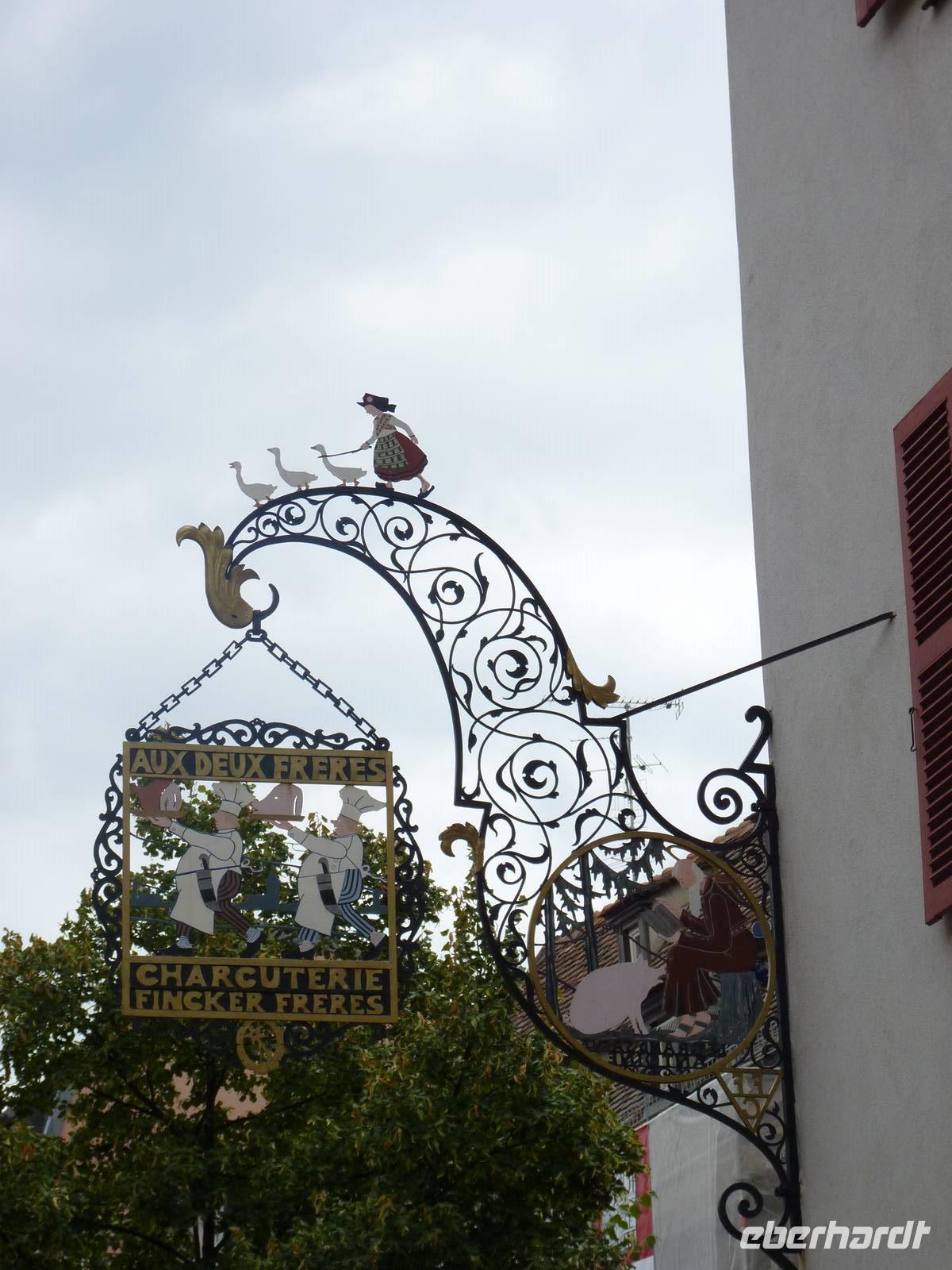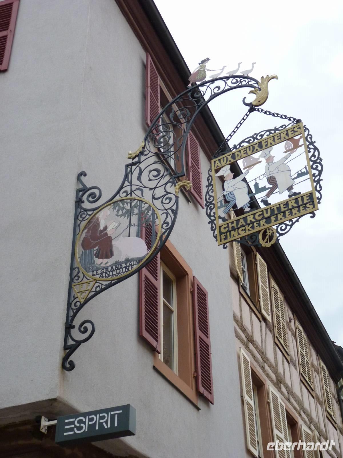 Filigrane Türschilder bekunden den Ursprung der Gebäude als Domizile handwerklicher Zünfte.