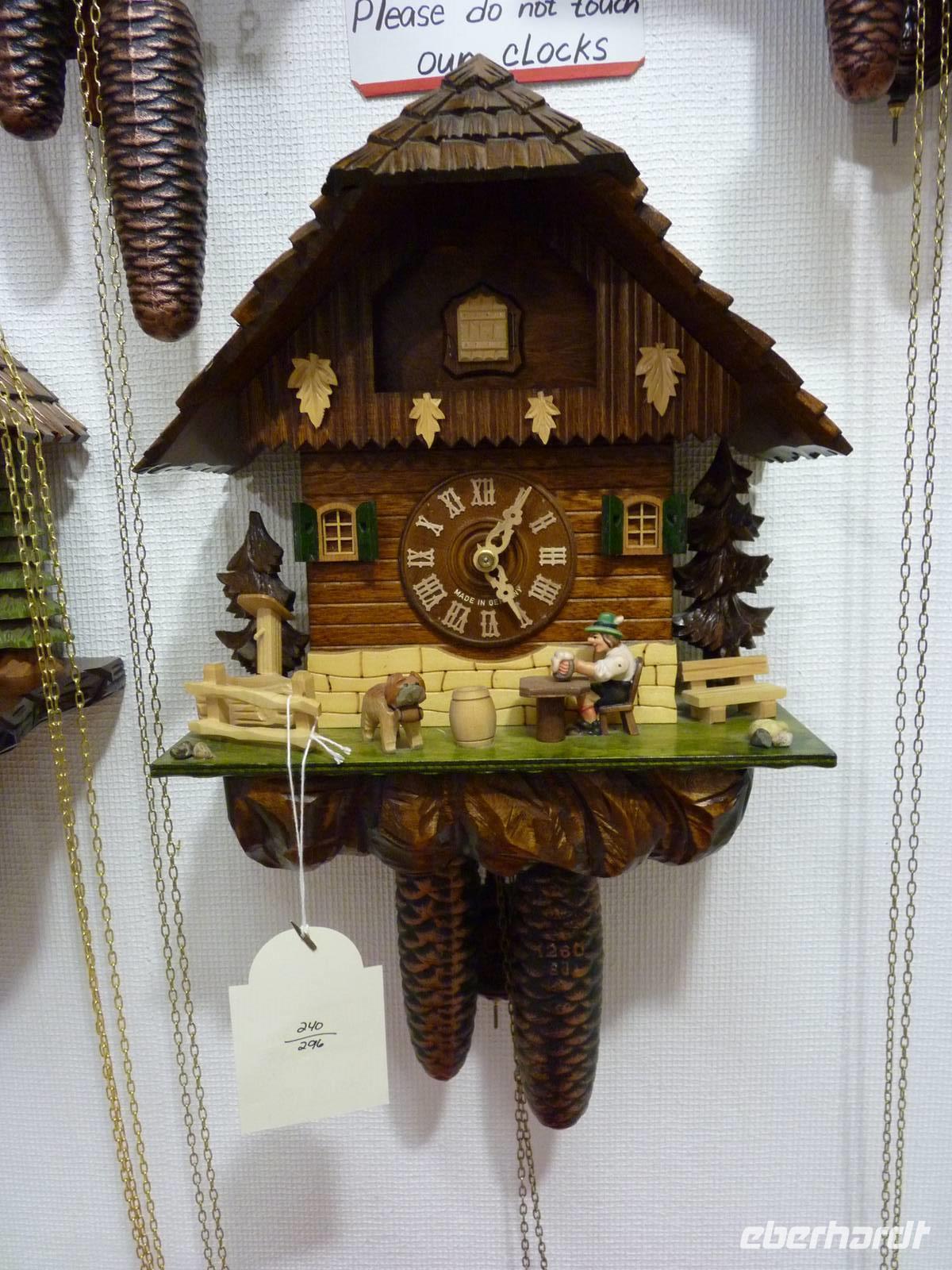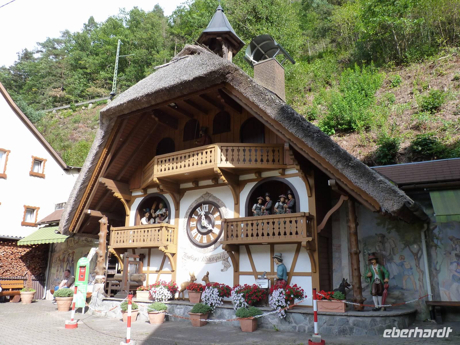 Zu jeder halben und vollen Stunde grüßt der Kuckuck aus der haushohen Kuckucksuhr.