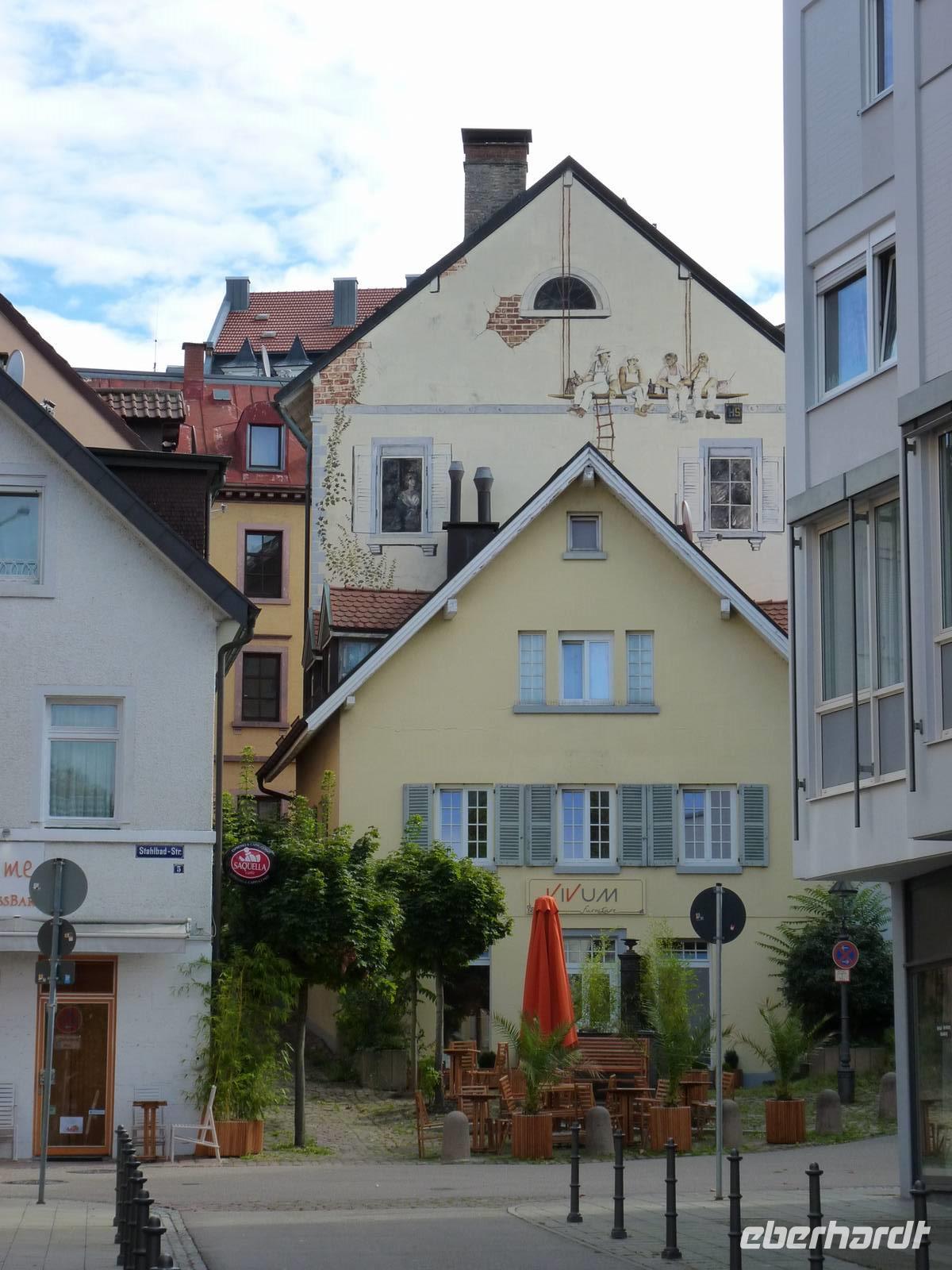 In Richtung Marktplatz schlendern wir durch die Straße im Handwerksviertel. Hier hatte jede Zunft seine eigene Gasse. So gibt es zum Beispiel die Goldschmiedestraße oder die Schneidergasse. Doch nicht nur das Handwerk ist hier zu Hause, sondern auch viele der Fasnacht-Cliquen.