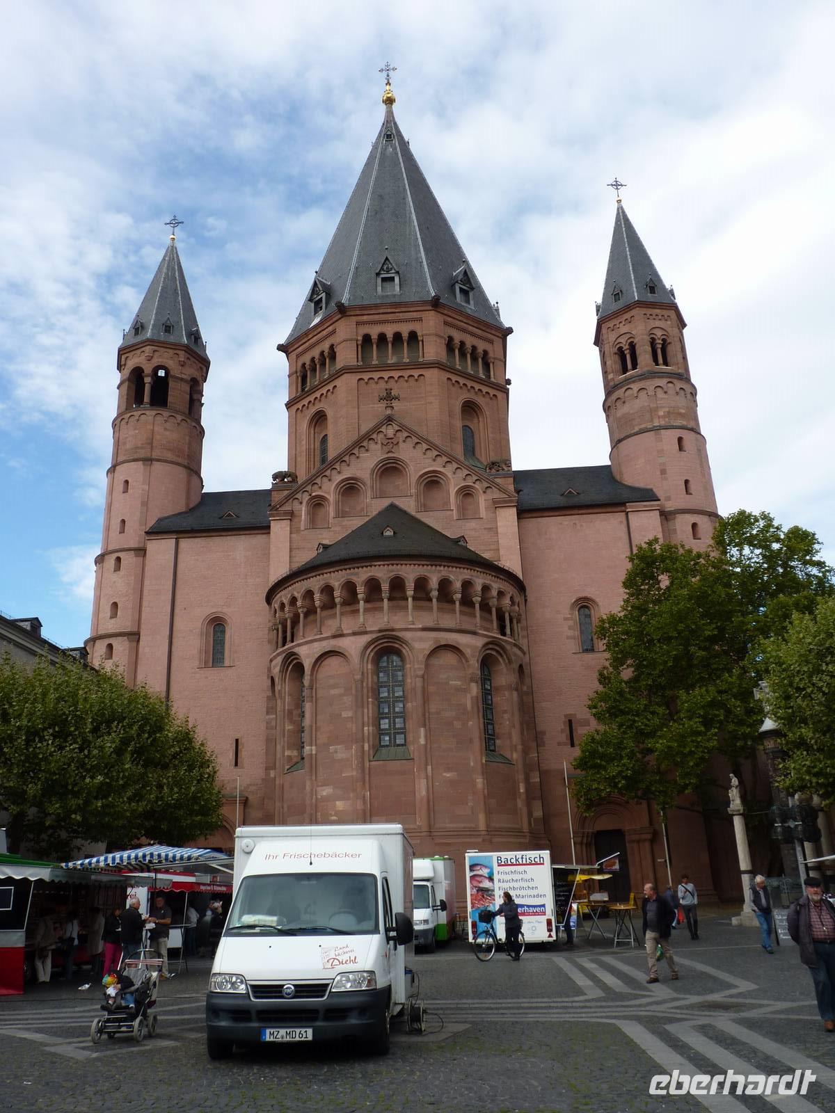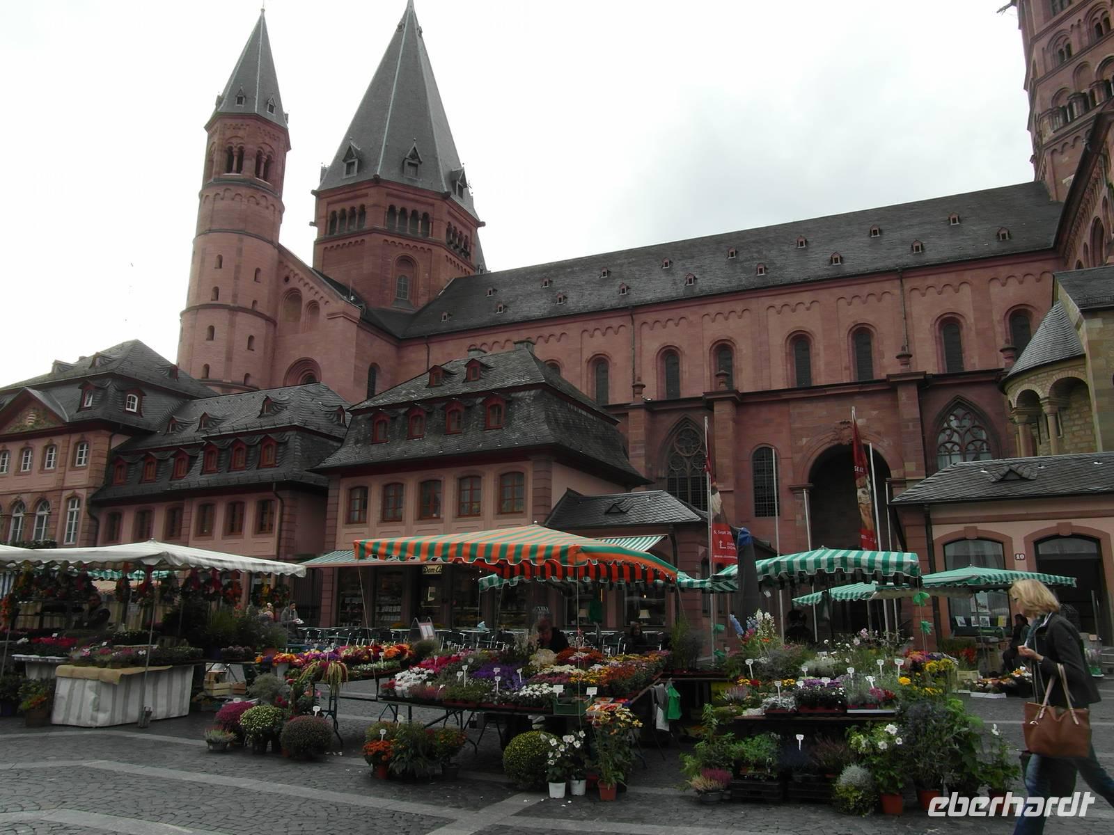 Während eines Stadtrundganges machten wir Bekanntschaft mit dem Kurfürstliche Schloss (Bauherr war der Erzbischof Georg von Greifenklau), Dem Gutenbergplatz mit dem Museum (ein Denkmal zur Erinnerung an den Erfinder des Buchdrucks), der Stadtkirche St. Johann, dem Mainzer Dom (eines der größten und wichtigsten romanischen Bauwerke in der Region, sein Bau wurde 975 begonnen und im Jahre 1239 vollendet). Davor herrschte geschäftiges Markttreiben und Köstlichkeiten aus der Region wurden feilgeboten. Leider legten wir mittags schon wieder ab und die Fahrt ging vorbei an Rüdersheim mit der Drosselgasse und dem Niederwalddenkmal, Bingen + den Mäuseturm, vielen berühmten Burgen (die feindlichen Brüder, Katz, Maus etc.) und dem Flusskilometer 555 mit der Lorelei nach Koblenz.