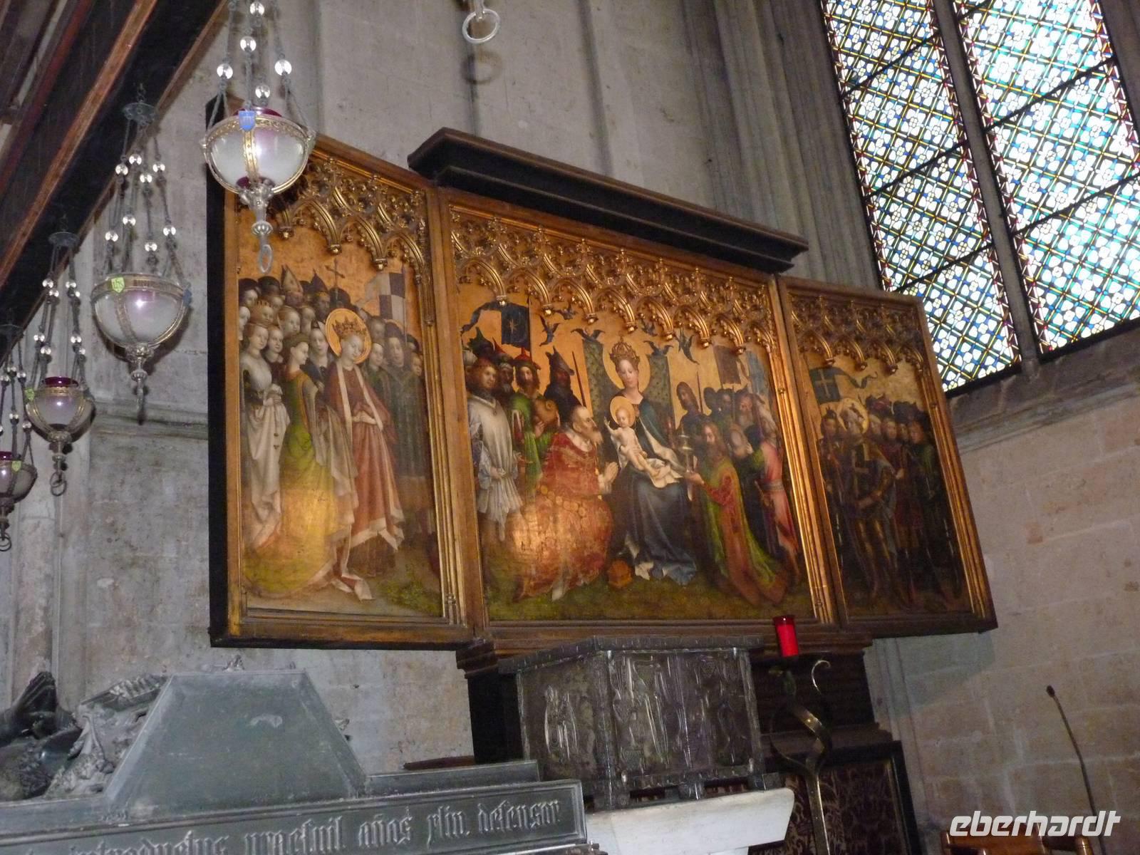 Bei unserem Stadtrundgang kamen wir vorbei an der Martinskirche zum Rathausplatz mit dem alten und dem prunkvollen neuen Rathaus. Vom Rathausplatz weg liefen wir zurück zur Kaiser-Joseph-Straße und danach auf dieser Straße bis zum Martinstor, dem älteren der beiden noch erhaltenen Tortürme der mittelalterlichen Stadtbefestigung. 1238 tauchte es erstmals in den Urkunden auf. Es wurde durch die Jahrhunderte mehrfach umgebaut und bisweilen auch als Gefängnis genutzt.