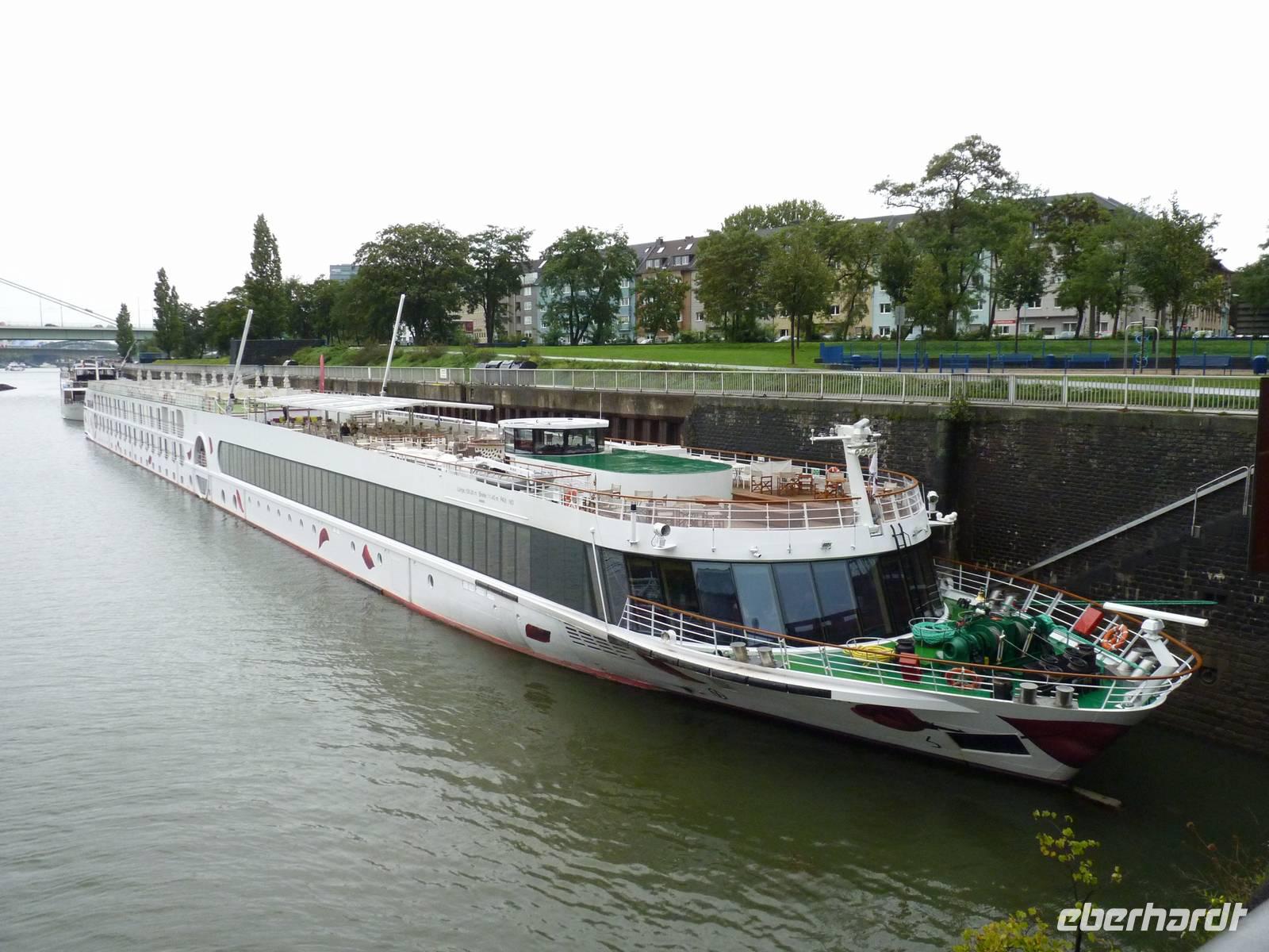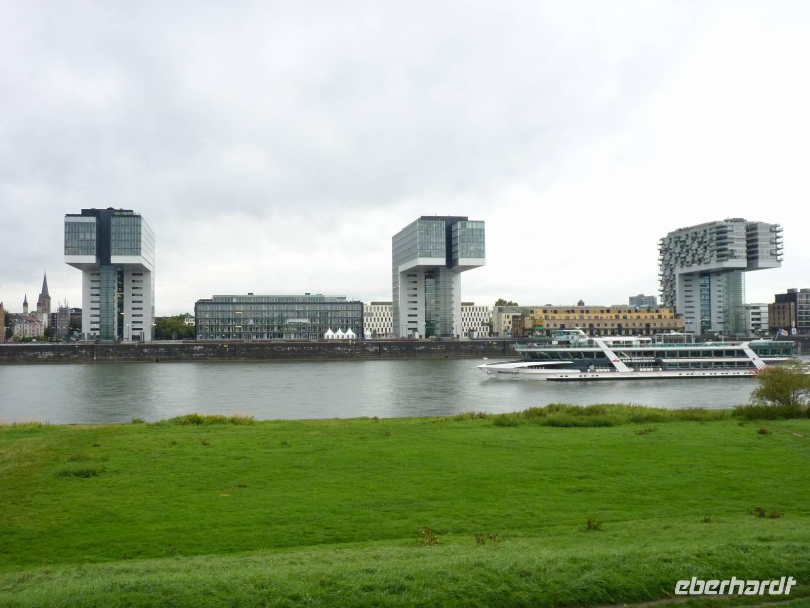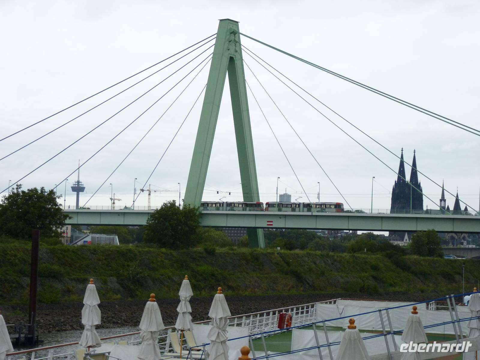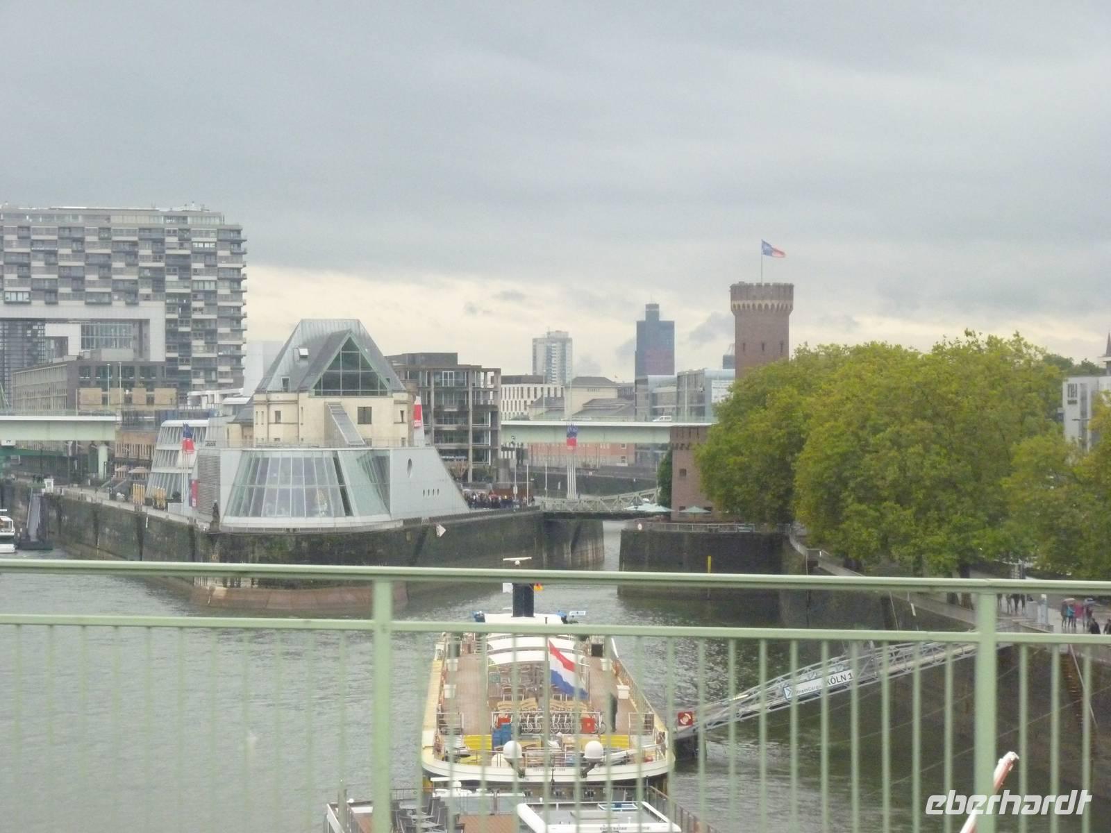 Am Morgen ankert die „Flora am Deutzer Ufer in Köln. Die Sonne hat sich verhüllt und sendet leichten Nieselregen auf die Entdecker.