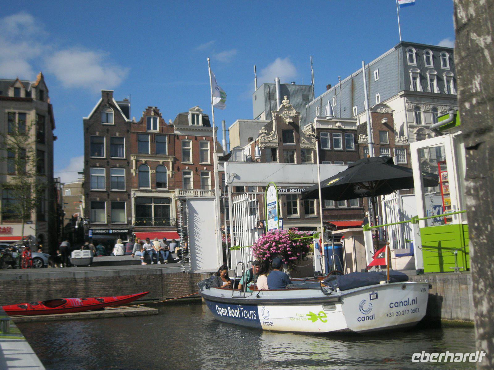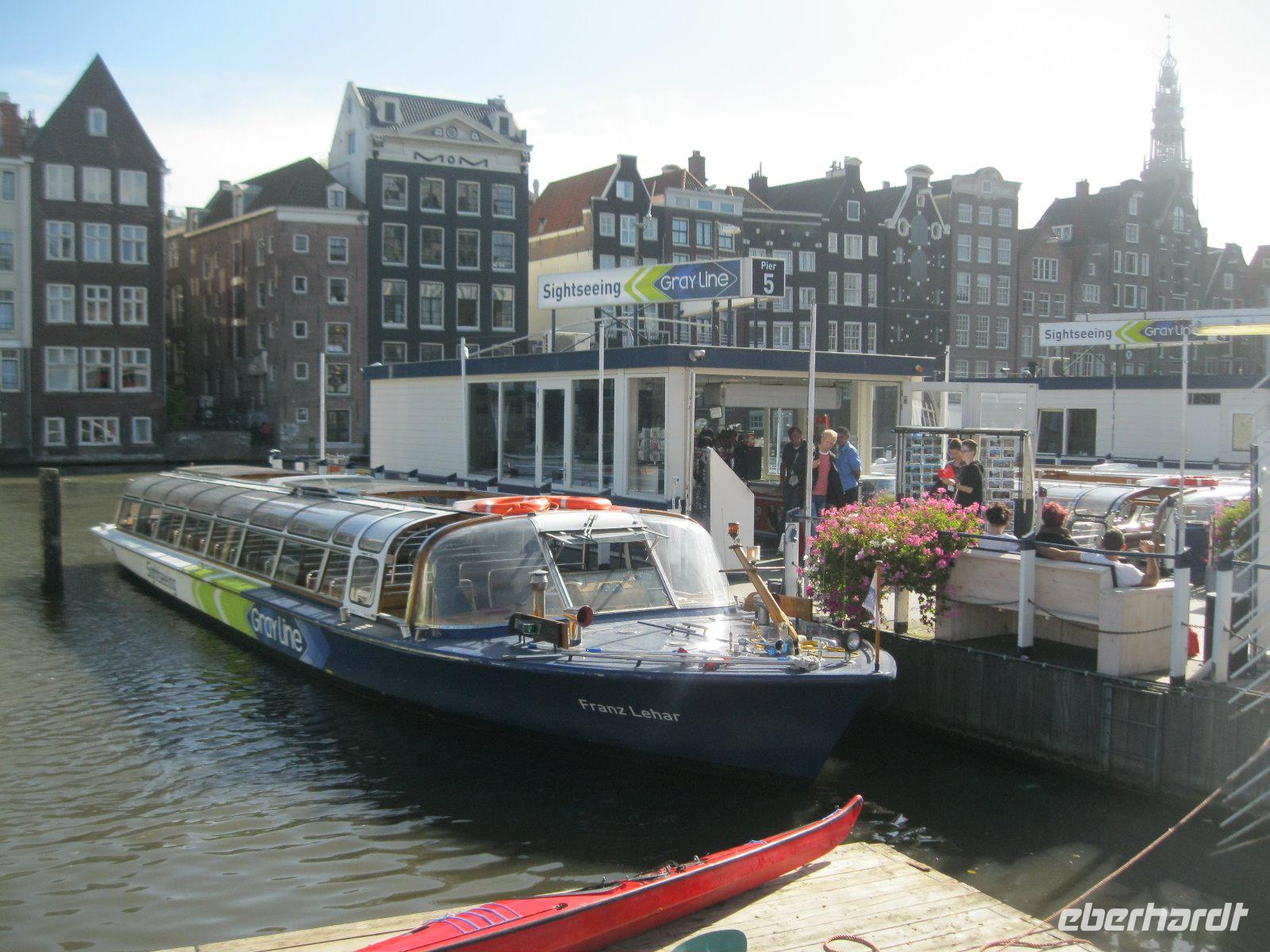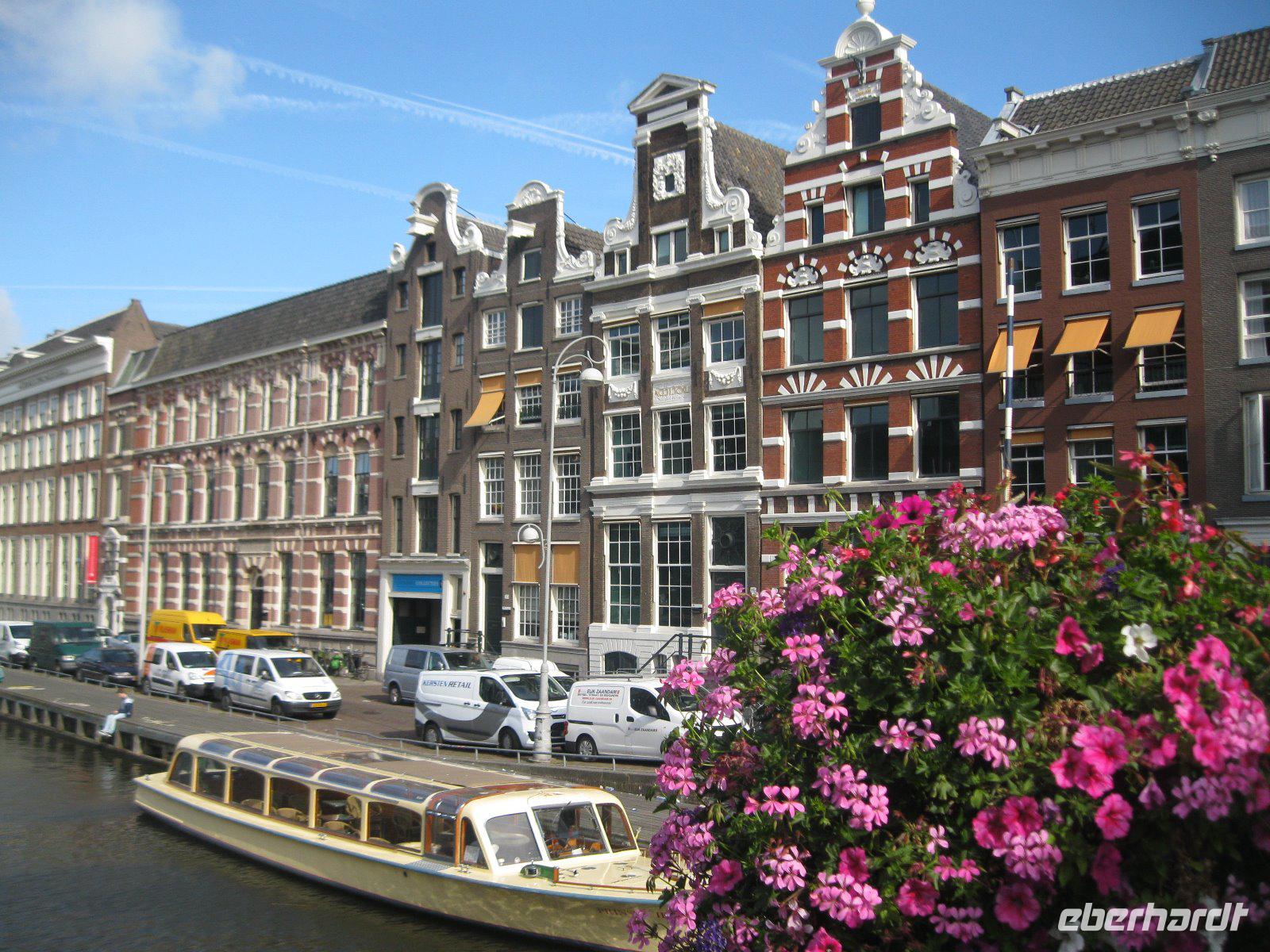 Nach kurzer Fahrt erreichten wir Holland u.staunten über die Sauberkeit des" Königreichs in den niederen Landstrichen".Bei Arnheim machten wir Bekanntschaft mit "Vater Rhein".Dort errinnerten wir uns auch an Rheinüberquerung der Alliierten u.den bekannten Film "die Brücke von Arnheim.In Amsterdam erwartete uns Rein u.zeigte uns die Sehenswürdigkeiten seiner Stadt bei einer Rundfahrt.Am Blumenmarkt wurden -natürlich-Tulpenzwiebeln gekauft.Im nächsten Frühjahr blühen in einigen Gärten echte "Tulpen aus Amsterdam".Die Hauptstadt der Niederlanden,auf unzähligen Eichenpfählen erbaut ,nach einem trocken gelegten Damm u.dem Fluß Amstel benannt -Amestelledamme 1275 -ist eine der lebhaftesten Metropolen Europas geworden.Wir wollten es etwas ruhiger genießen u.nicht immer auf Radfahrer achten müssen. Bei einer Grachtenfahrt konnten wir in aller Ruhe ,die Schönheit der alten Häuser,auf uns wirken lassen.So,nun wird es aber Zeit,unser Kreuzfahrtschiff wartet am Ruijterkade auf uns.Ein kleiner Schiffsentdeckungsrundgang und ein Welcoms Drink ,am Abend,runden den heutigen Tag ab.