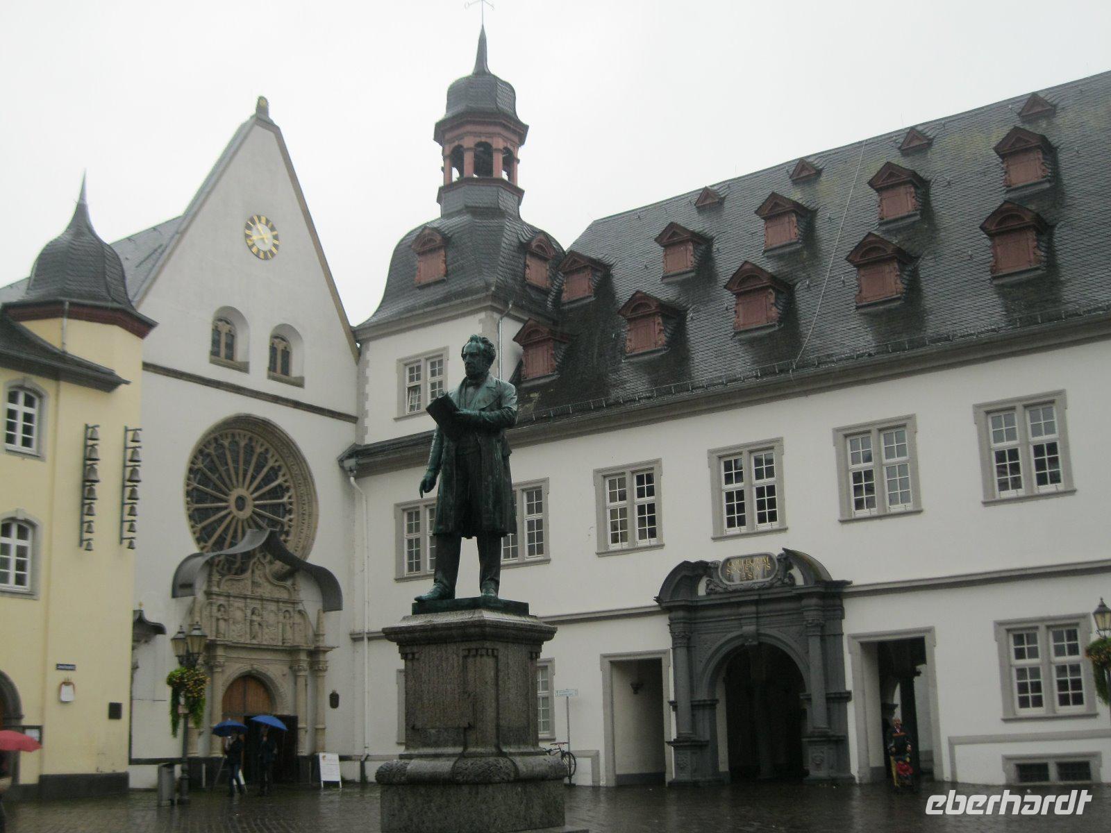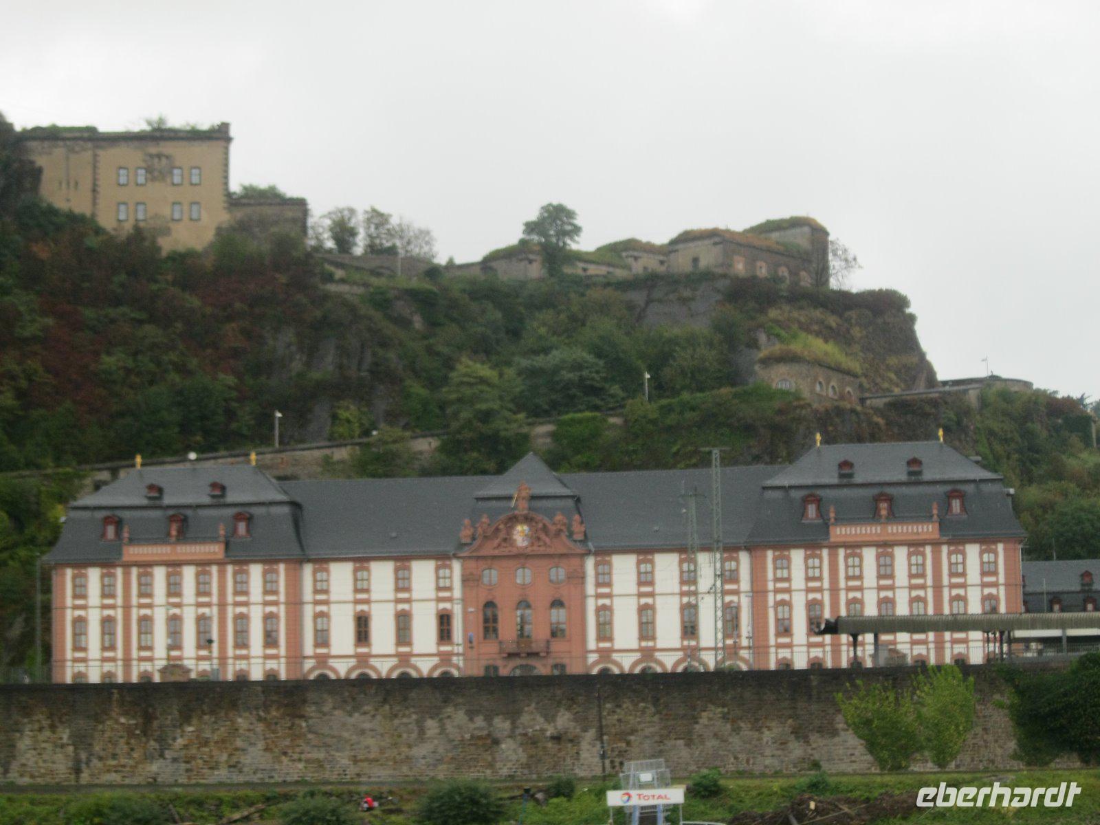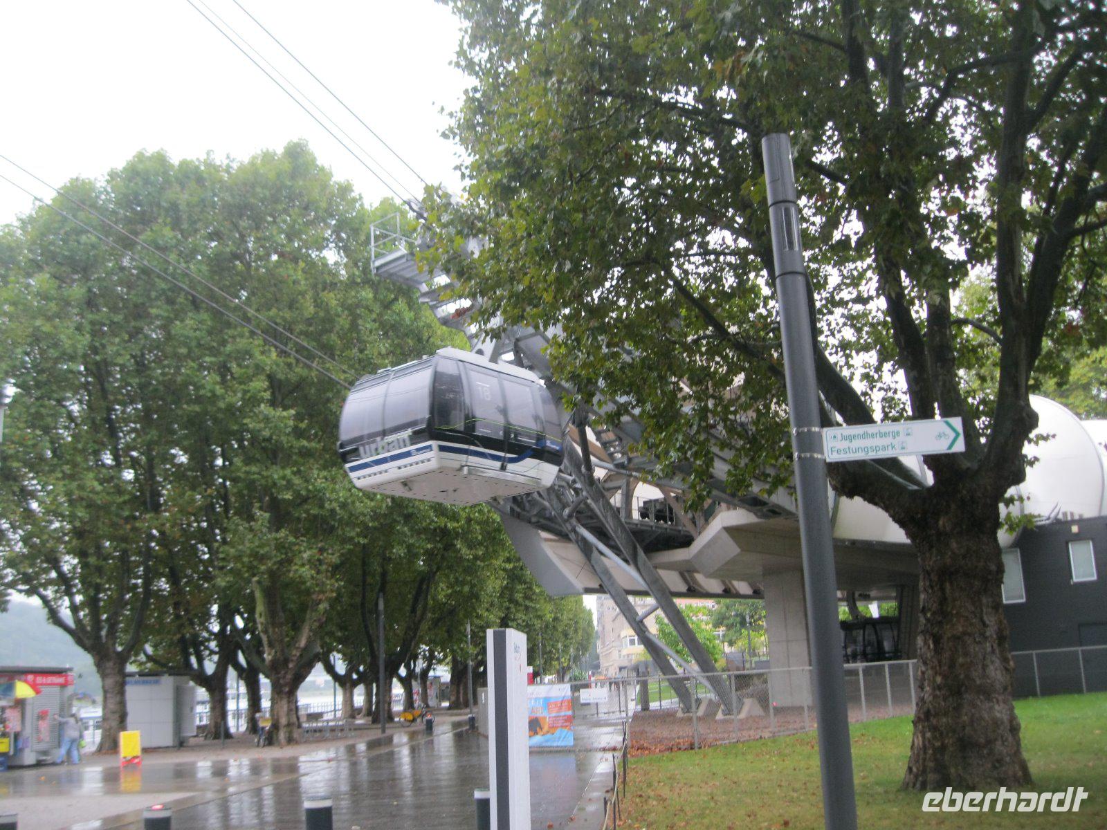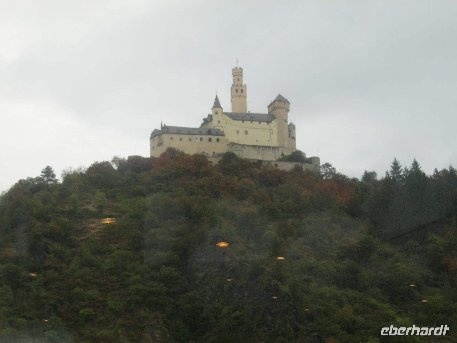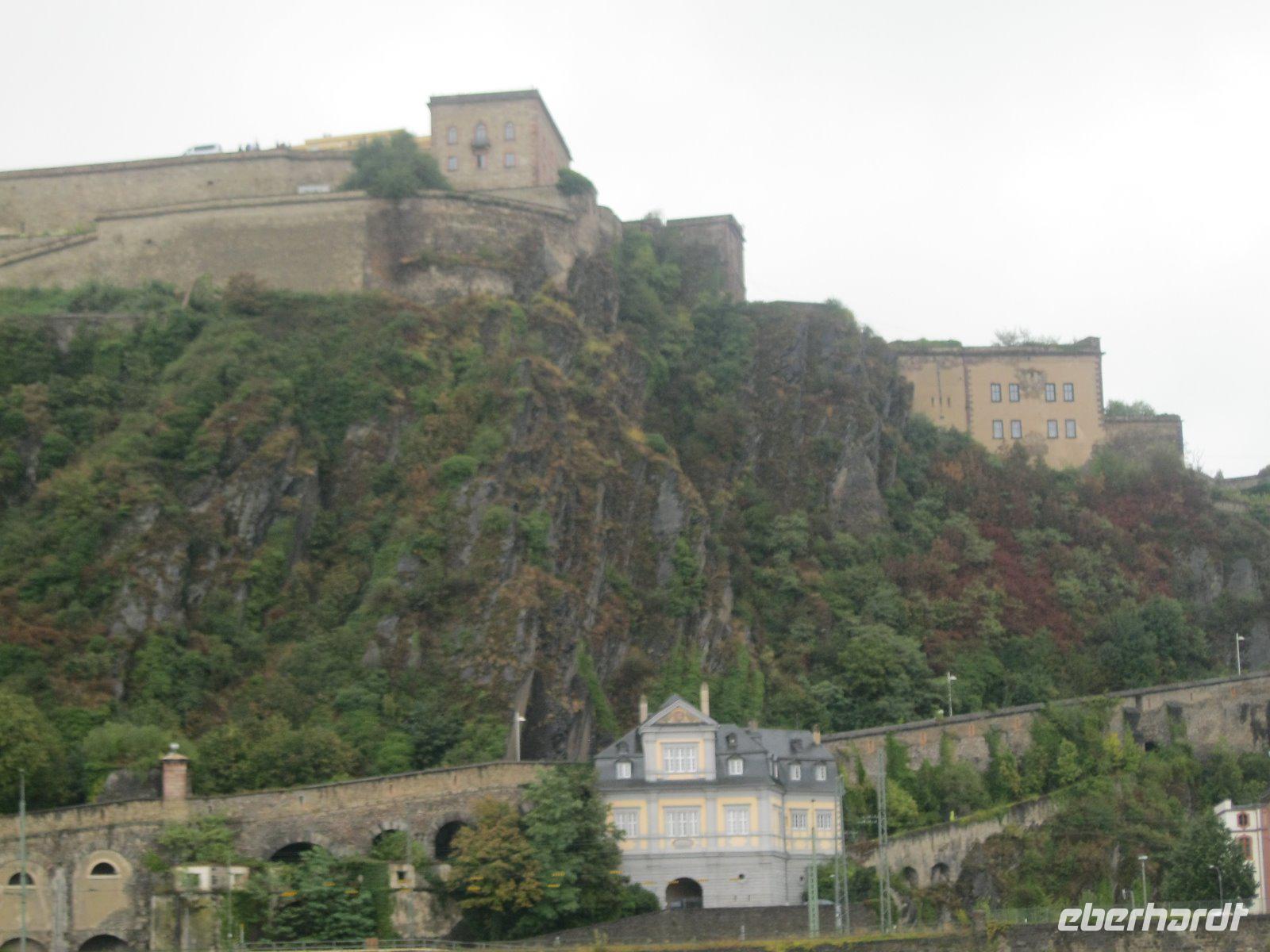 Schon zeitig früh legten wir diesmal an der Mosel an,500 m vom Deutschen Eck entfernt.Dort fließt dann auch die Mosel in den Rhein u.Kaiser Wilhelm I.begrüßte uns hoch zu Pferd.Unser Ziel- die Gondelfahrt zur Festung Ehrenbreitstein.Von dort hat man einen tollen Blick wieder hinunter zum Rhein,für uns leider verregnet.Nach einem kurzen Spaziergang legte unser Schiff ab u.wir genossen das Bordleben.Bei Kaffee u.Kuchen zogen die alten Burgen,im Abschnitt Mittelrhein, an uns vorbei. Die Sonne zeigte sich gnädig als wir an der Loreley unsere Kameras in Position brachten.Ungewöhnlich "klein"präsentierte sich der geführchtete Felsen. Während der Passage sang unser Bordmusikus Enzo, live, das Loreley Lied.Wegen des Niedrigwassers zeigten sich allerdings gut die 7 Jungfrauen.Eine Felsformation im Rhein,die besonders schwierig zu umfahren ist u.viel Stoff für Legenden liefert.In Rüdersheim erblickten wir das mächtige Niederwald Denkmal ,umhüllt von mystisch dunklen Wolken.Am Abend konnte man sich in der Bar bei einer Karaoke Show von seiner "verkannten"Seite zeigen,leider grif niemand zum Mikro.