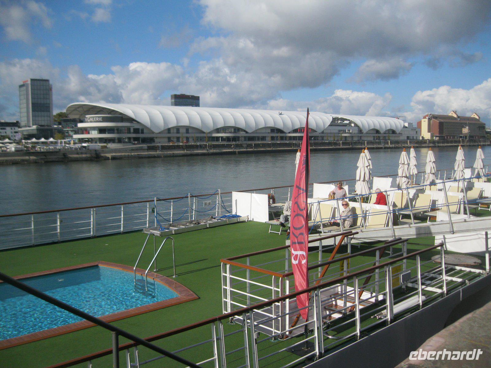 Die Arosa Flora,das neueste u.modernste Flotten- Mitglied,unser schwimmendes Hotel,lag die Nacht in Amsterdam vor Anker.Sicherlich werden wir, auf unserer Tour, nie wieder so eine ruhige Nacht ,ohne Maschinen Geräusche,haben.Wer wollte schaute sich noch einmal im "Venedig des Nordens" um ,es gab ja reichlich zu endecken.Die Stadt hat,unter anderem, über 700 Museen zu bieten.Einzigartig die großen Sammlungen der alten Gemälde von Rembrandt oder Vermeer u.van Gogh.Leider reichte unsere Zeit dafür nicht mehr.Gegen Mittag hieß es "Leinen los"u.das Schiff setzte sich Richtung Köln in Bewegung.Vom Sonnendeck (bei leichtem Nieselregen) ließ sich das Ablegemanöver gut verfolgen und wir verließen diese quirlige ,multikulturelle Stadt.Die tausenden von Fietsen (das Hauptbewegungsmittel)werden uns lange in Erinnerung bleiben.