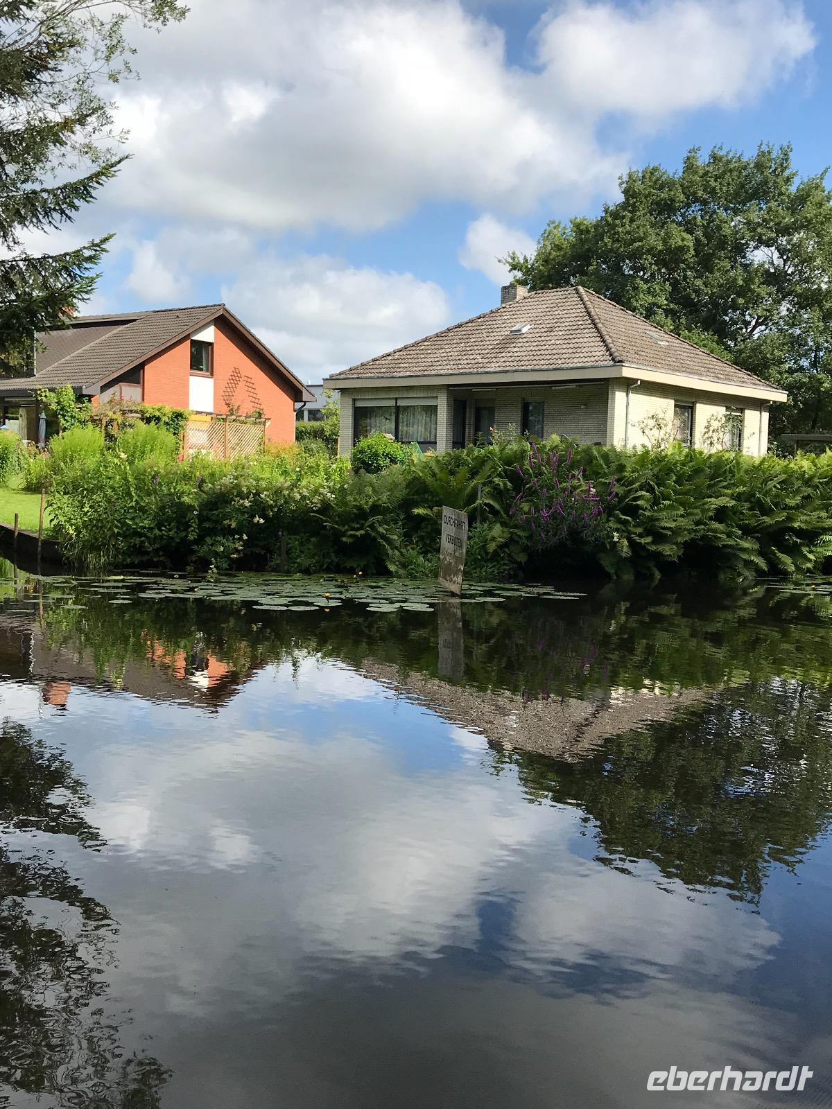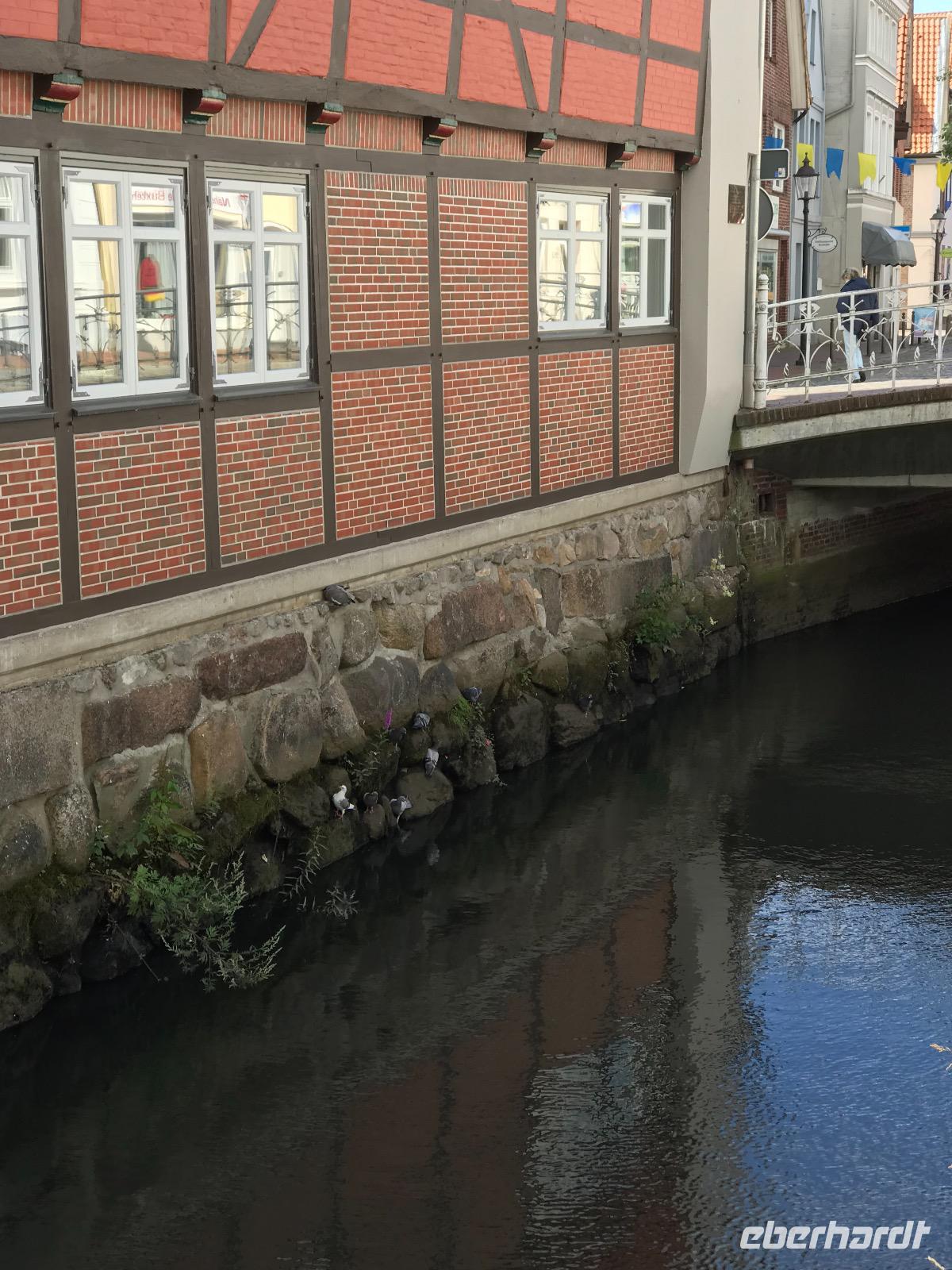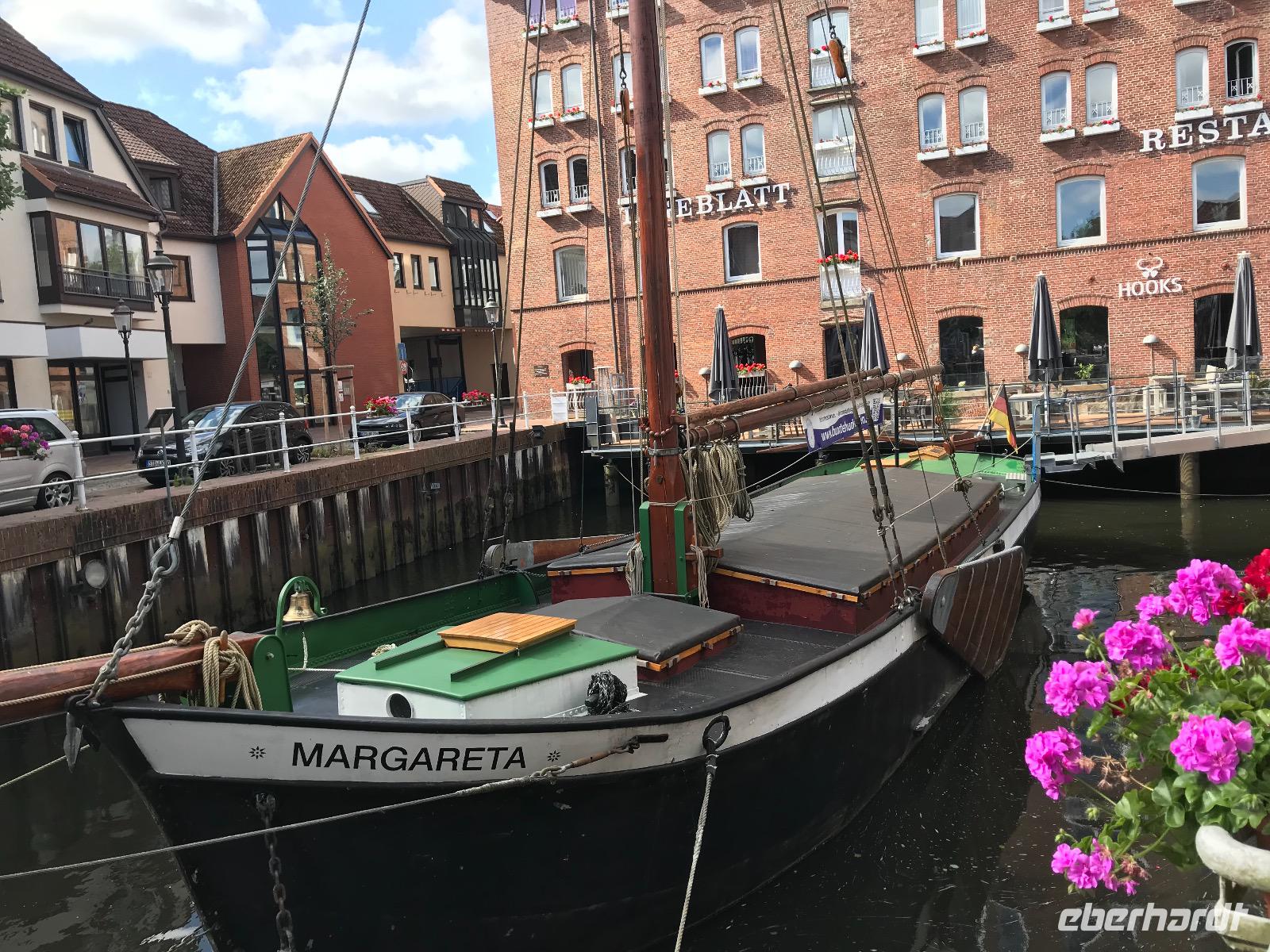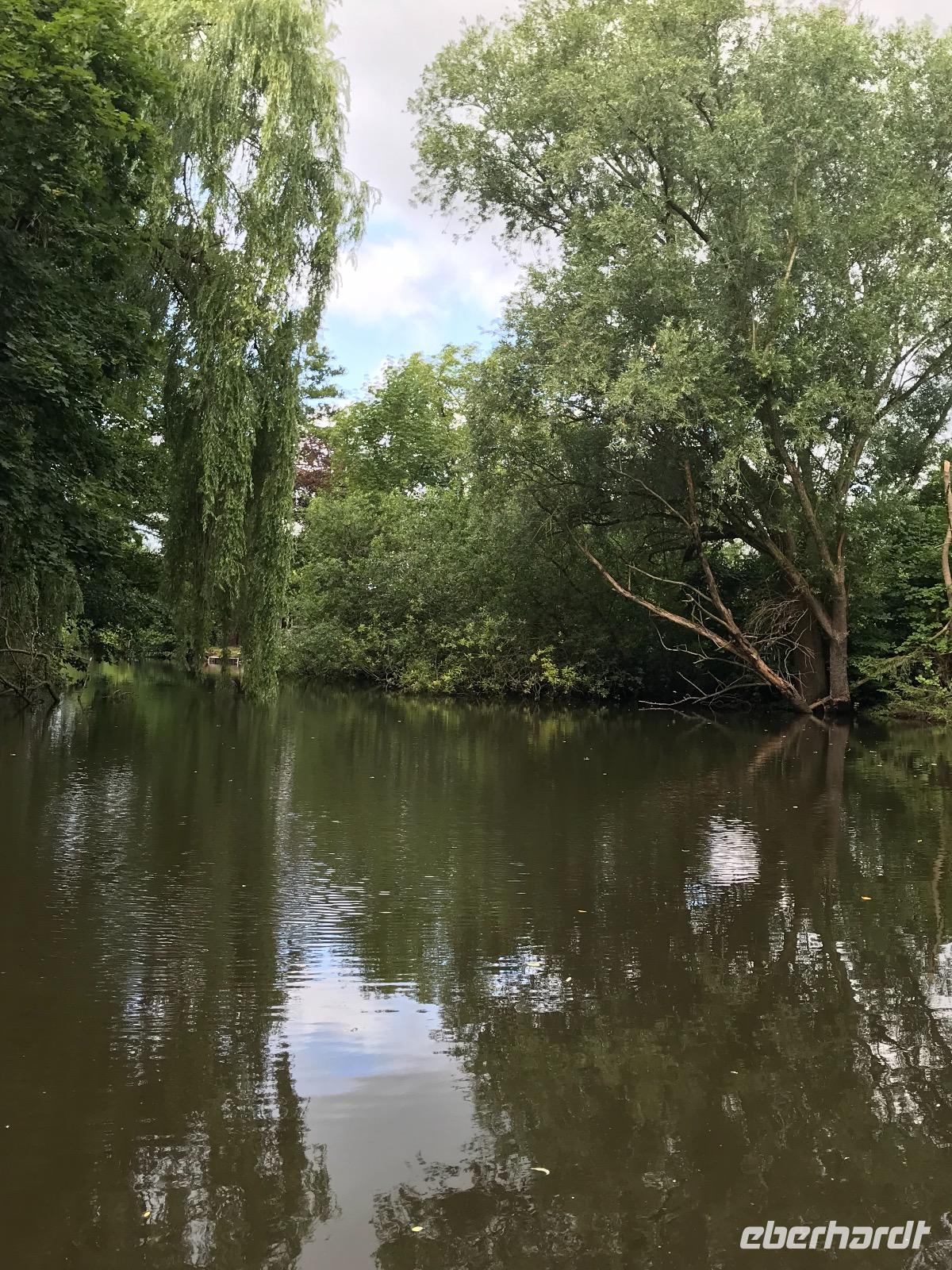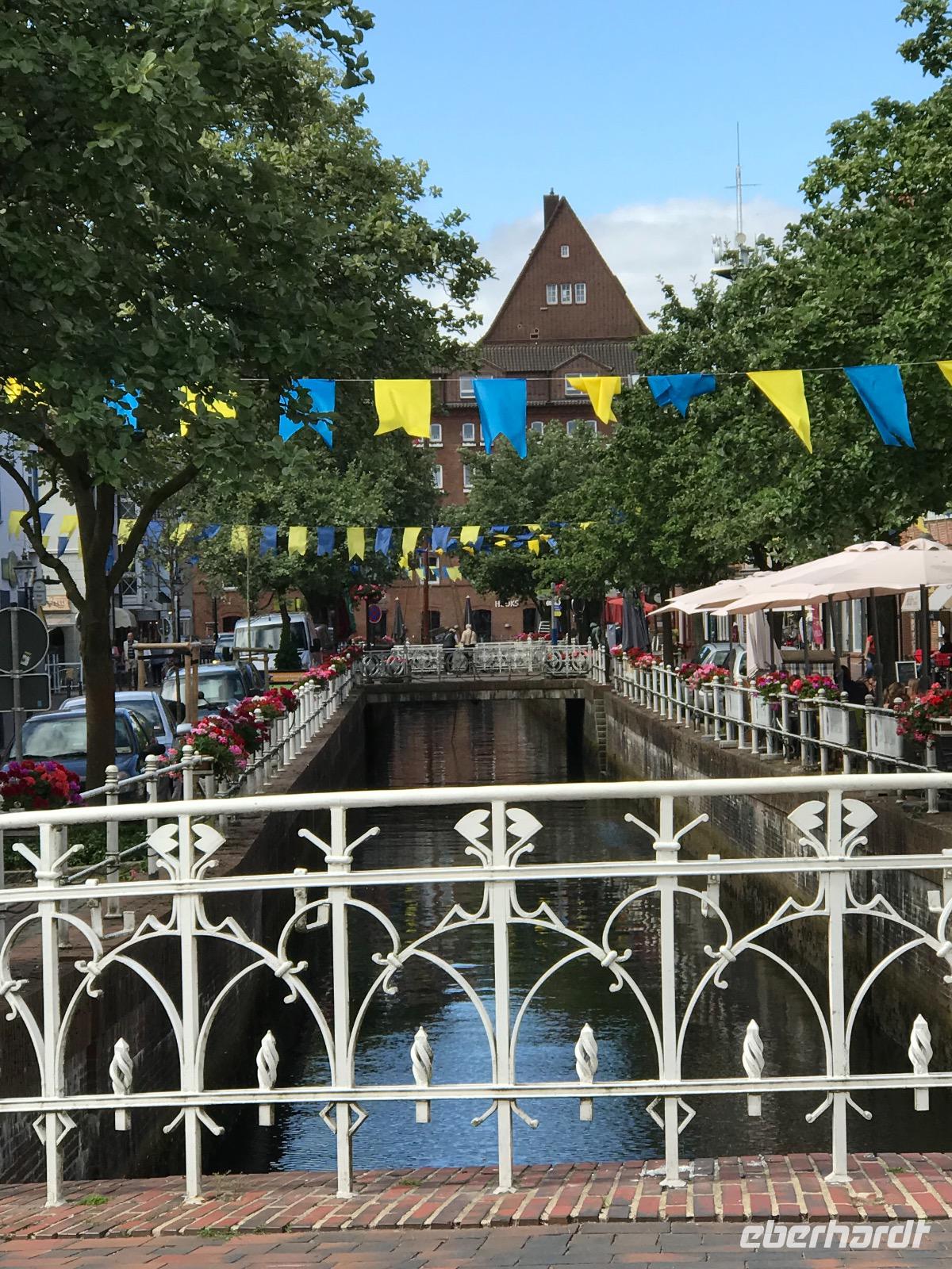 Es war am Morgen noch trübes Wetter als wir zu Fuß zum alten Holzhafen in Stade gingen. Eine Fleetkahnfahrt auf der Schwinge und den Gewässern des Wallgrabens ist ein besonderes Erlebnis. Kaum glitten wir in zwei Kähnen über das ruhige Wasser und lauschten den Erzählungen unserer Schiffer, da kam die Sonne hinter den Wolken hervor. Welch ein schöner Tag und welch ein Lebensglück. Vom Wasser aus - ein anderer Blickwinkel auf die Stadt, und so erholsam. Leider war die Kahnfahrt viel zu schnell vorbei, der Bus wartete schon.