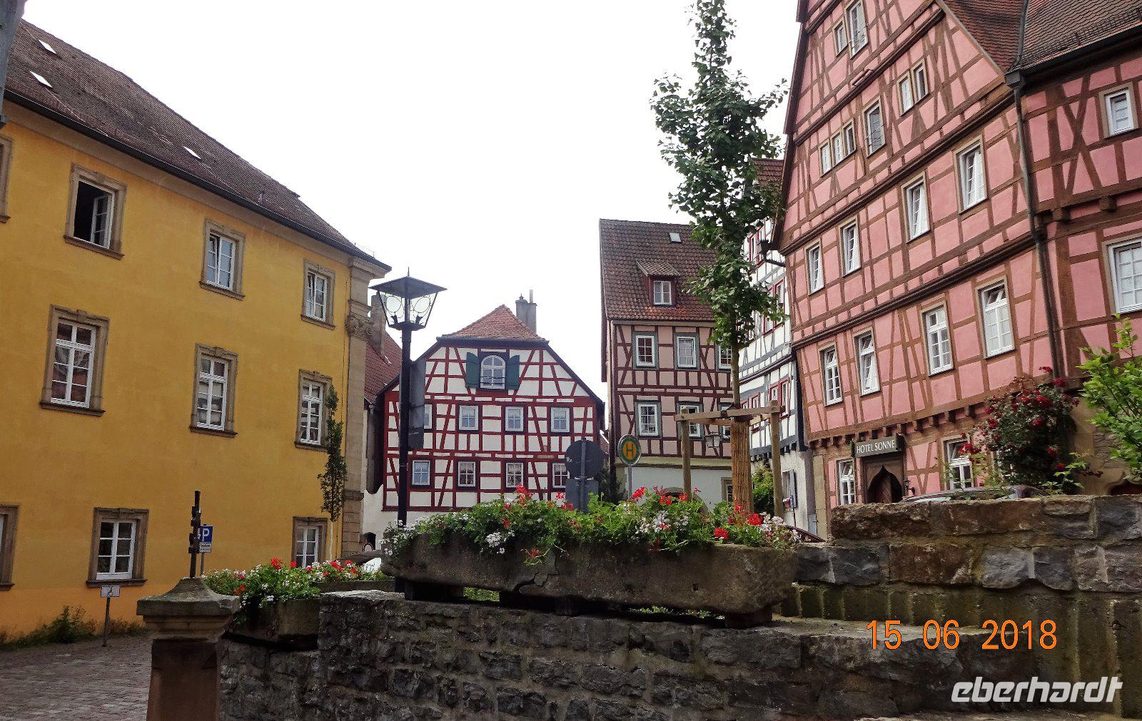Am frühen Morgen trafen sich die ersten Reisegäste in Dresden, Nossen und Chemnitz und fuhren mit mir gemeinsam, zunächst in Richtung Vogtland und dann weiter auf der A9 nach Münchberg - nun war unsere Reisegruppe komplett. Vorbei an Nürnberg erreichten wir am Nachmittag unsere Zwischenstation in Wolframs Eschenbach - eine ländliche Kleinstadt mit viel Geschichte. Hier unternahmen wir einen kleinen Rundgang in der sehr überschaubaren Minnesängerstadt, welche nach Wolfram von Eschenbach - dem Dichter des „Parzival" benannt ist. Der von der Stadtmauer umgebene Innenbereich gleicht einem Wehrschild und sobald man durch das obere oder untere Tor des Schildes hereinläuft, fühlt man sich sofort ins Mittelalter versetzt. Über Kopfsteinpflaster erreicht man in wenigen Gehminuten die wichtigsten Sehenswürdigkeiten der Stadt. Zuerst auf dem Marktplätzchen das Denkmal des berühmtesten Sohnes der Stadt, gleich nebenan das Münster und das Schloss des Deutschen Ordens, entlang der Haupt- bzw. Prachtstraße geht man an vielen, sehr schick restaurierten Fachwerkhäusern vorbei zum oberen Tor. Danach ging es weiter, vorbei an Heilbronn und dem Hockenheimring zu unserem Hotel in Schifferstadt, unweit von Worms, Speyer und Heidelberg gelegen. Dort wurden wir bereits freundlich vom Hotelpersonal empfangen und durften unsere Zimmer beziehen. Nach einer kleinen Verschnaufpause trafen wir uns zum gemeinsamen Abendessen im Hotelrestaurant wieder. Wir genossen ein leckeres 3- Gänge Menü und verabschiedeten uns danach in die erste Nacht in Rheinland Pfalz.