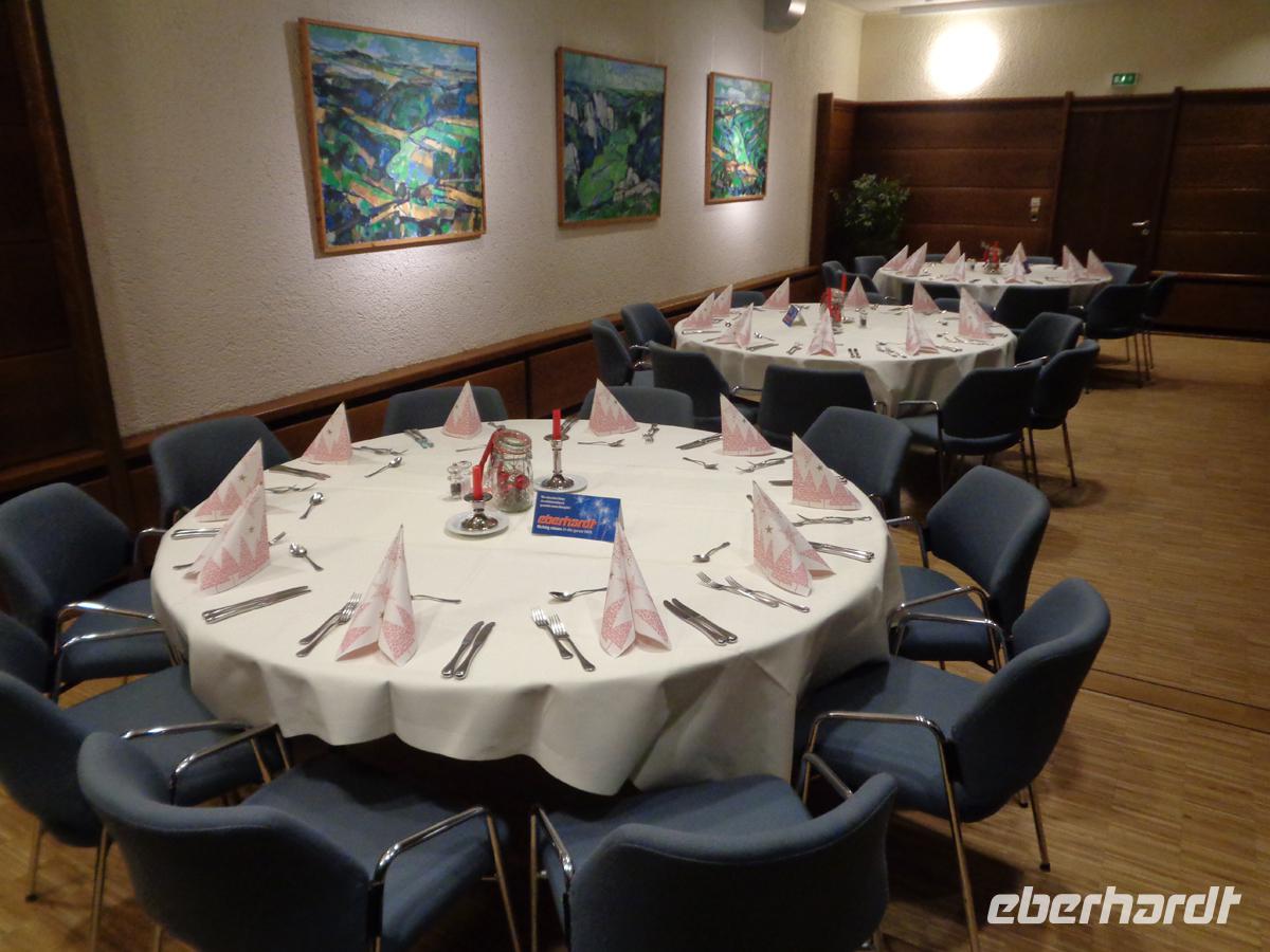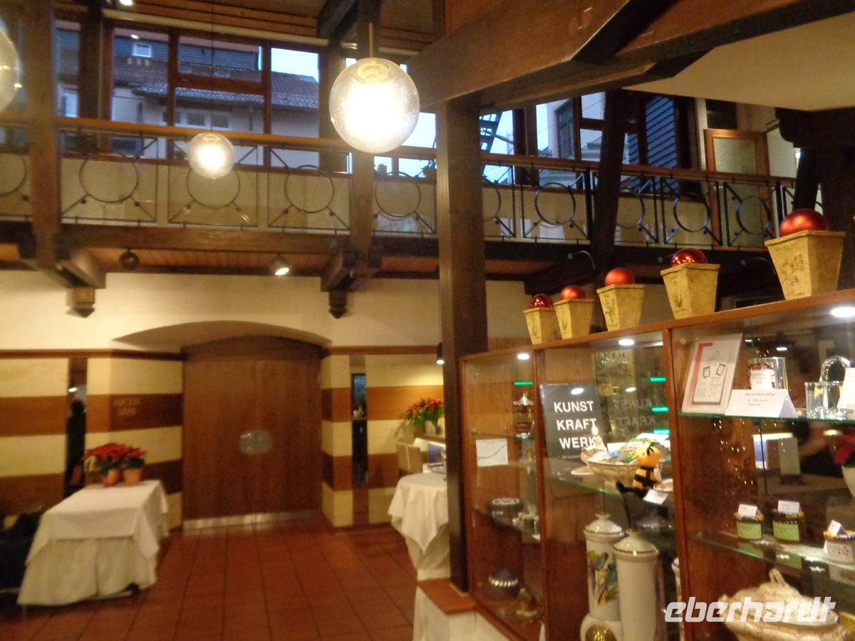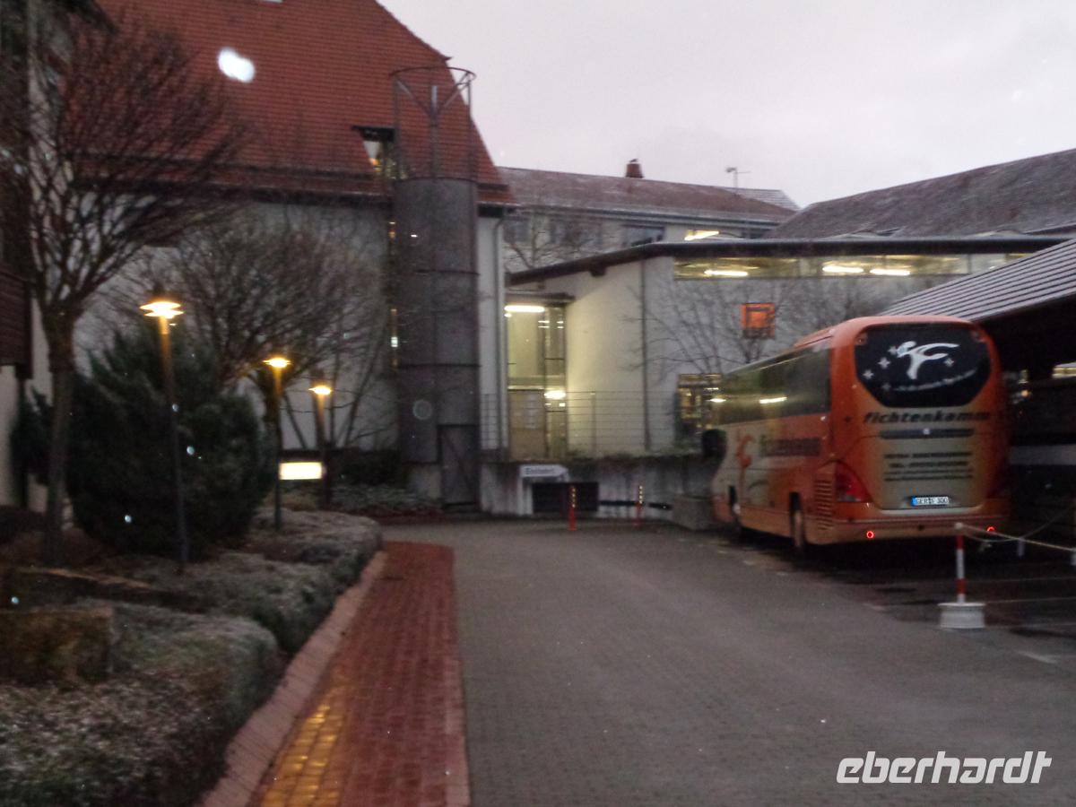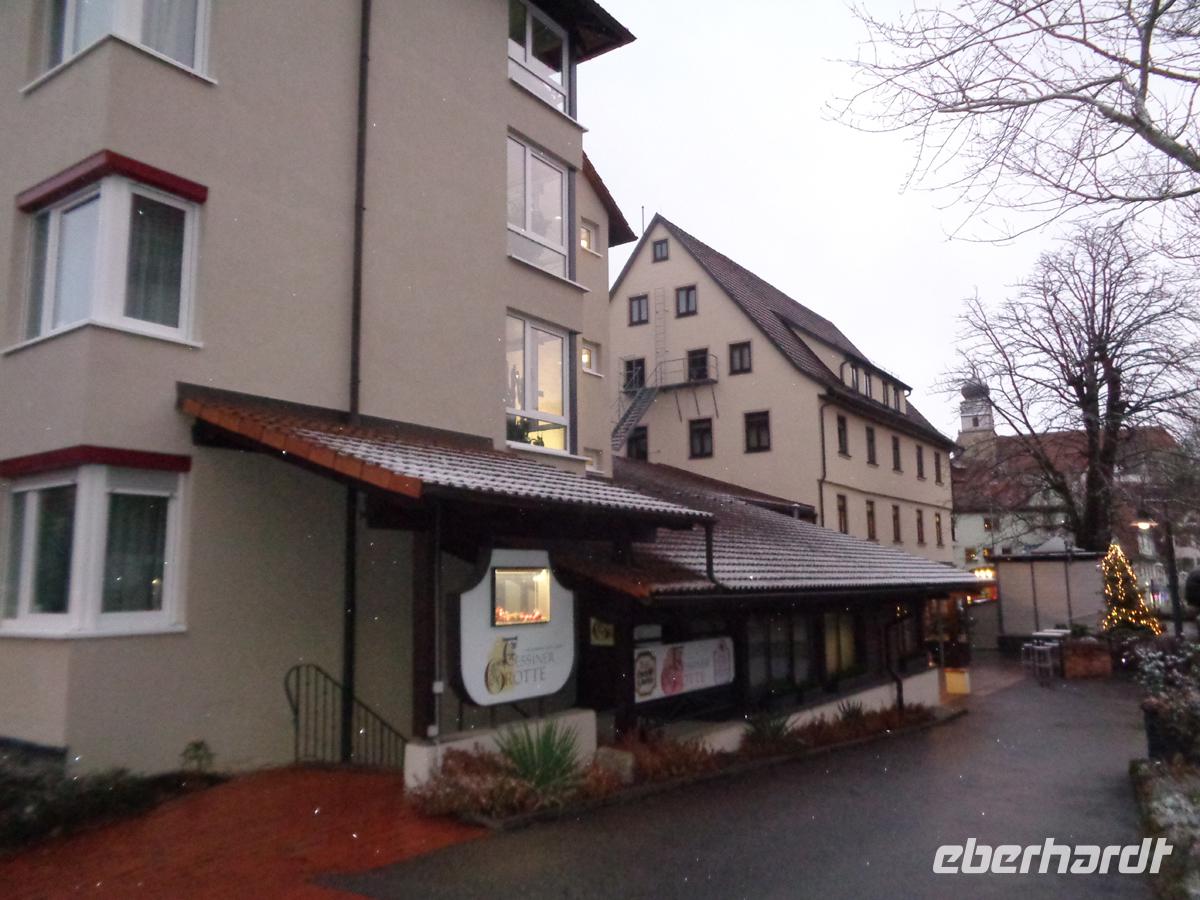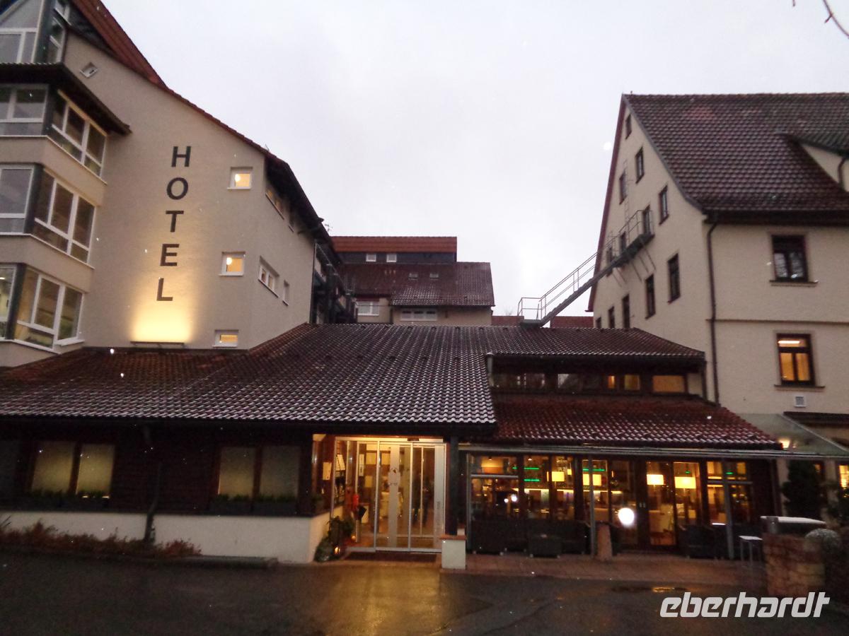 Noch im Dunkeln starten wir morgens vom Dresdener Flughafen in Richtung Südwesten. Herrenberg, ca. 20 km südwestlich zwischen dem Schönbuch und dem Schwarzwald gelegen, ist unser Reiseziel. Das Wetter verfinstert sich immer mehr, je weiter wir in Richtung Erzgebirge kommen. Ab Stollberg fängt es an zu schneien. Und nachdem hinter Hof die letzten Reisegäste zugestiegen sind schüttelt in der fränkischen Schweiz Frau Holle so richtig die Kissen. Der Schnee und Schneeregen wird uns die gesamte Hinreise begleiten. Mitunter ist er so dicht, dass man kaum etwas rechts und links von der Straße sieht. Entgegen meinen Befürchtungen kommen wir aber sehr gut durch und haben keinen Stau. So können wir noch bei Hellem unsere Zimmer beziehen. Unser 4 Sterne Hotel ist ein Traditionshaus, welches bereits im Jahre 1620 als Gasthof erwähnt ist. Es ist familiengeführt und es wird selbst gekocht. Das historische Haus ist saniert zur Straße hin mit Restaurant vorhanden, aber rückseitig sind geschickt hochmoderne Anbauten hinzugefügt worden. Hier befinden sich unserer Zimmer, die wirklich in Allem einen 4 Sterne Ambiente entsprechen. Ja, hier kann man sich wirklich die nächsten Tage wohlfühlen. Das sagen auch jene Gäste, welche schon die Weihnachtsreise hier verbracht haben, und die wir abends beim gemeinsamen 3 Gänge-Menü in unserem Speiseraum treffen. Nun ist die Gruppe vollzählig und wir freuen uns gemeinsam auf die schönen Dinge, die wir in den nächsten Tagen erleben und sehen werden.