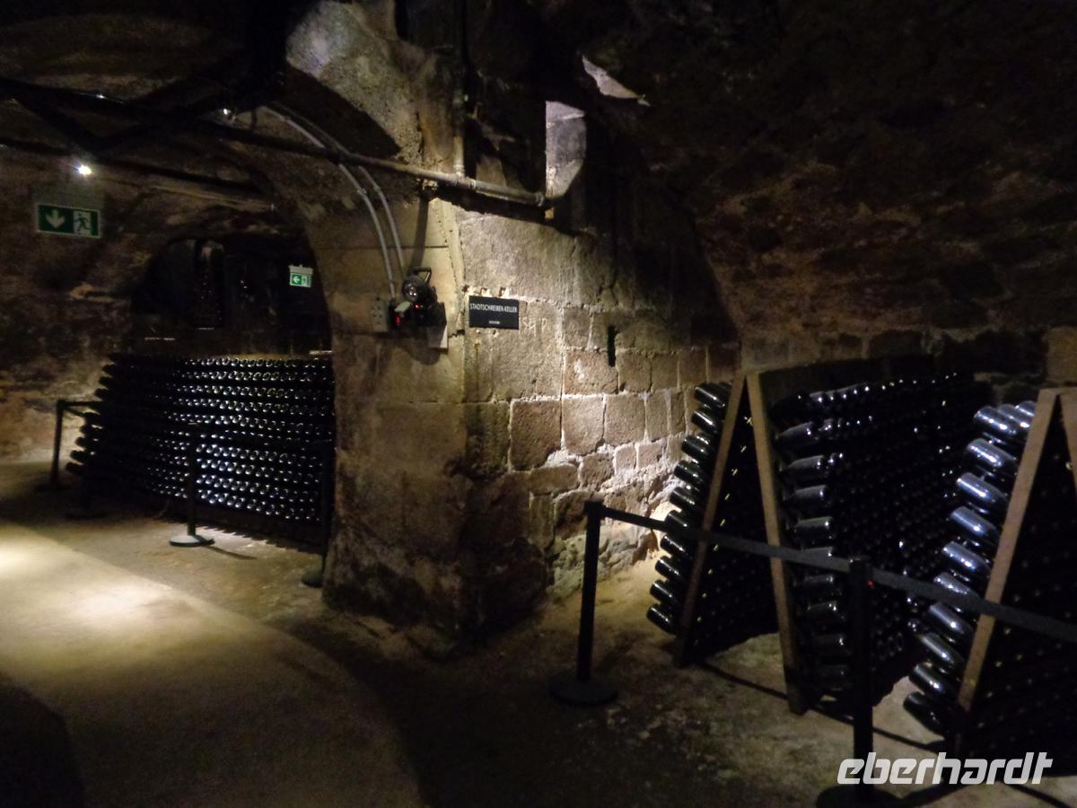 Den Abschluß unseres Programms verbringen wir in Esslingen. Unser Abstecher in die alte Reichsstadt führt uns über den Marktplatz mit der Stadtkirche St. Dionys um das Rathaus aus bestem alemannischen Fachwerk. Am Hafenmarkt bestaunen wir die älteste Häuserzeile Deutschlands aus dem frühen 14. Jh. und schlendern durch die Webergasse zum Speyrer Pfleghof, einem Stadthof des Speyrer Domkapitels seit dem 13. Jh. Hier ist heute die älteste Sektkellerei Deutschlands untergebracht, nämlich Kessler. 1826 wurde sie von Georg Christian Kessler gegründet, nachdem er sich in Frankreich in einer Kellerei durch enormes Wissen zu deren Inhaber hochgearbeitet hatte. Nach einer Führung durch die Keller mit sehr guten Erläuterungen zur Sektherstellung, werden uns in einem historischen Saal drei Varianten dieses edlen Getränkes zum Probieren kredenzt. Natürlich nimmt man sich die eine oder andere Flasche mit nach Haus, oder bestellt gleich einen ganzen Karton, denn die Inhalte der Flaschen munden allen sehr gut. Schon ist der Tag vorüber und wir beschließen ihn mit einem leckeren Abendmenü in unserem Hotel.
