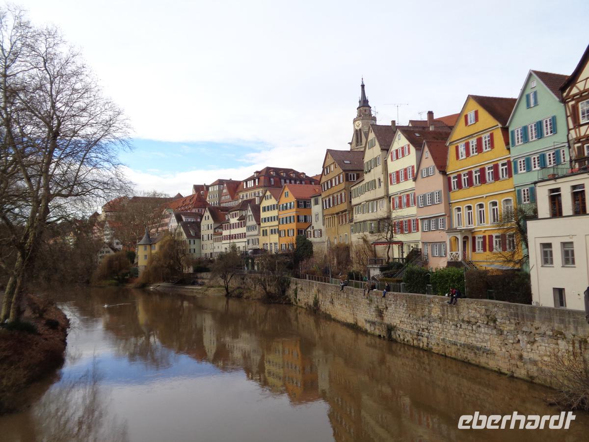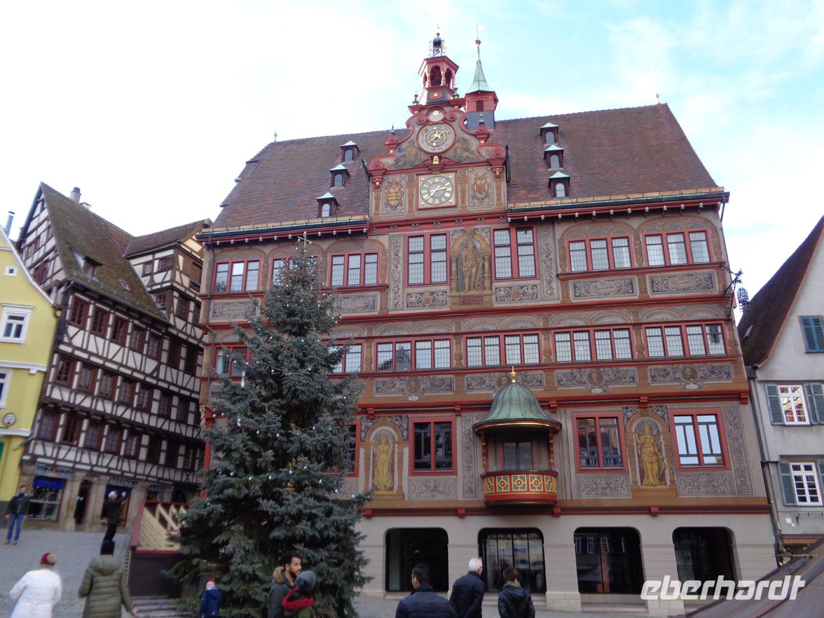 Nur eine gute halbe Stunde Weg ist es bis Tübingen. Die altehrwürdige Universitätsstadt wird uns auf einem geführten Rundgang mit einer lokalen Gästeführerin nahe gebracht. Natürlich lassen wir den Hölderlinturm direkt am Neckar genauso wenig aus, wie das sehr schön bemalte Rathaus. Tübingen kann mitunter ganz schön steil sein, und so manche Treppe hat es in sich. Nach dem ausgedehnten Rundgang ist man froh, wieder im Bus zu sitzen. Wir sind rechtzeitig im Hotel und können uns in aller Ruhe auf die Silvesterfeier vorbereiten. Festlich ist der Saal geschmückt und es gibt Live Musik. Zudem werden wir mit einem riesigen Menü verwöhnt. Die Wachtelbrüste und auch das zarte Kalbsfilet munden allen prächtig. Die Zeit vergeht wie im Flug und schon ist es 0.00 Uhr. Wir stoßen auf das Jahr 2018 an, welches nun begonnen hat. Bis tief in den Morgen feiern einige Gäste noch, andere sind schon früher ins Bett gegangen. Jeder nach seinem Gusto.
