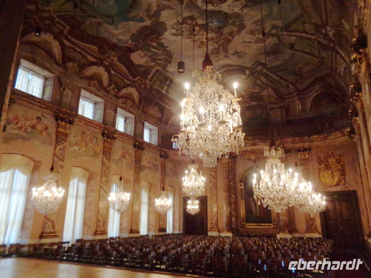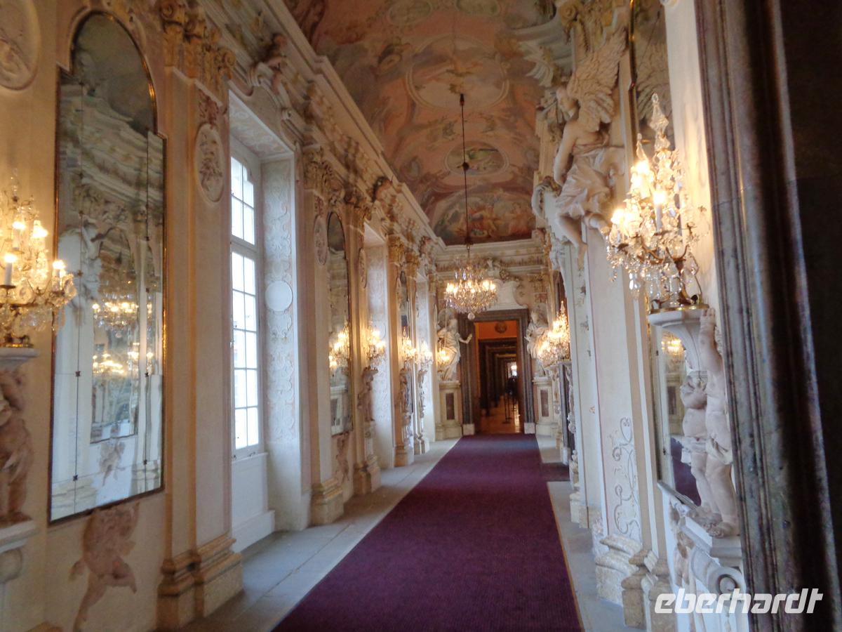 Am frühen Nachmittag begeben wir uns nach Ludwigsburg zu dem größten barocken Schloss Deutschlands. Es wurde Anfang des 18. Jh. in Anlehnung an Versailles von Graf Eberhard-Ludwig errichtet, weil ihm das alte Schloss in Stuttgart nicht mehr standesgemäß erschien. Schier endlos sind die langen Gänge und Galerien. Prunkvolle Räume sowohl im Stil des Empire, als auch in lupenreinem Barock wechseln sich ab. Leider ist es im Schloss sehr kalt. Man kann soclh ein riesiges Gebäude auch gar nicht richtig warm bekommen. Die Wärme spendet uns hernach dann ein Glühwein. Den hat unsere Chauffeur Matthias schon vorbereitet, denn am 1. Januar haben in Ludwigsburg leider auch die meisten Cafes geschlossen. Wir beschließen den Tag wie immer bei einem leckeren Abendmenü im Hotel.