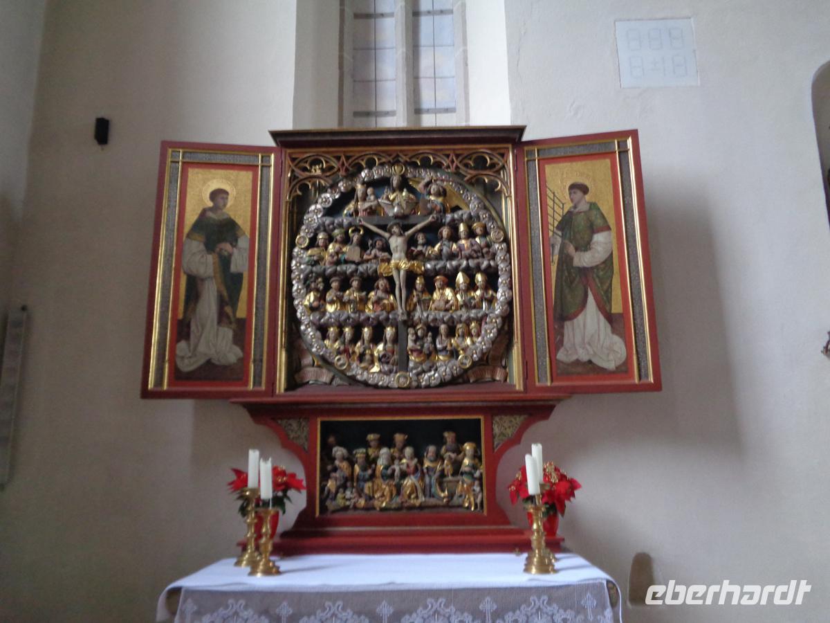 Ein letztes opulentes Frühstück mit einem Gastgeschenk neben jedem Teller - und dann packen wir die Koffer, um uns nach Nordosten zu begeben. Da noch etwas Zeit ist, unternehmen wir in Franken noch einen kleinen geführten Rundgang durch das malerische Städtchen Wolframs Eschenbach. Hier stammt der berühmte Minnesänger und Verfasser des Parzival her. 600 Jahre war die Stadt im Besitz des deutschen Ordens und verdankt diesem eine komplett erhaltene Stadtmauer. Das Münster brigt übrigens einen Rosenkranzaltar aus der Werkstatt von Veit Stoß. Doch nun treten wir mit ausreichend Pausen die endgültige Heimreise an und sind gegen 19.45 in Dresden am Flughafen.
