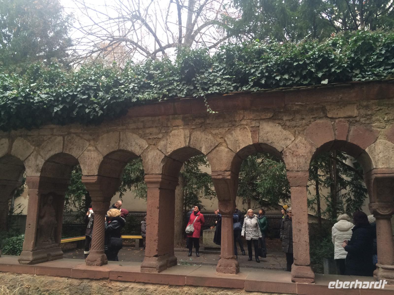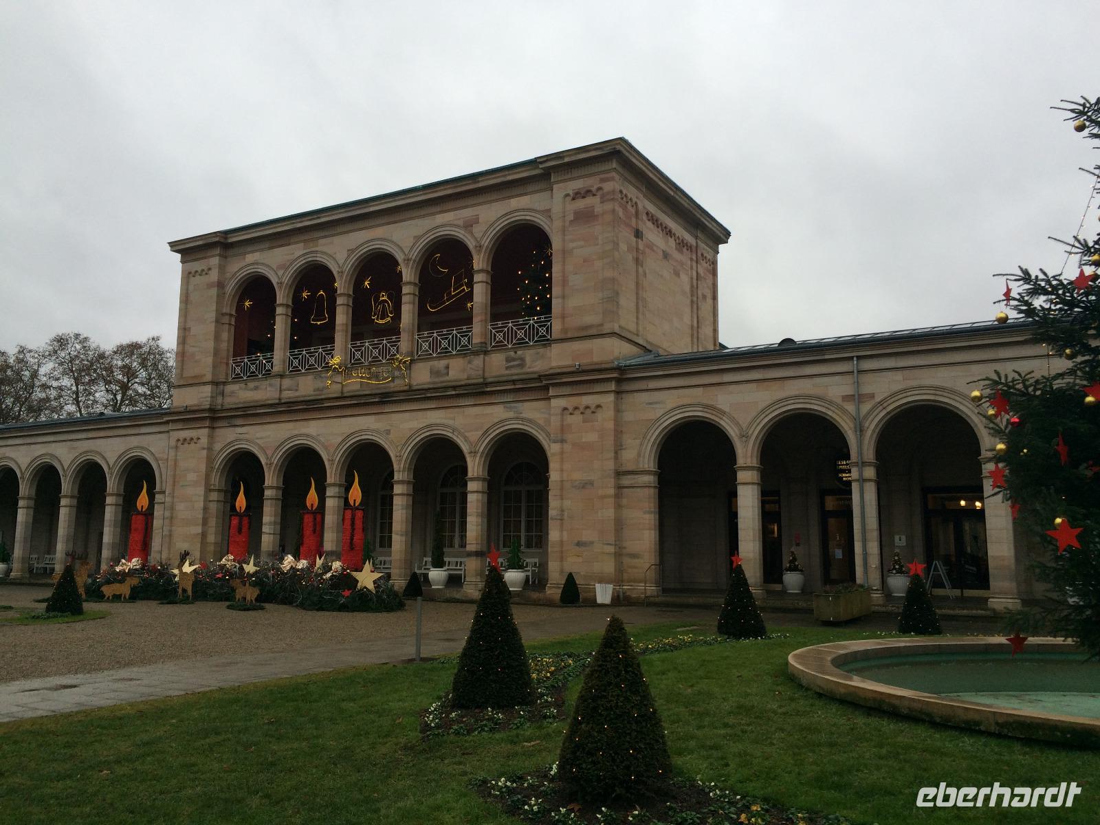 Am Morgen holt uns Ruth Medrow, unsere Reiseleitern zu einer Stadterkundung ab. Gemeinsam spazieren wir von der Ludwigbrücke vorbei am Rosengarten, an den alten Salzhallen zum Neuen und Alten Rathaus, weiter zum Kurzentrum mit dem Regentenbau, den Trinkhallen, den Arkaden, den Quellen und dem Casino. Im Kurhaus bewundern wir die verschiedenen schön mit Fresken verzierten Räumlichkeiten, lauschen einer Konzertprobe zu, weswegen Ruth fast hinauskatapultiert wurde und bekommen einen Eindruck von einer klassischen Aufführung in der wundervollen Wandelhalle. In zwei Tagen dürfen wir selbst als Zuschauer die schönen Klänge genießen. Es bleibt Zeit für eigene Erkundungen oder einen leckeren Heißen Weißen auf dem Weihnachtsmarkt. Prost!
