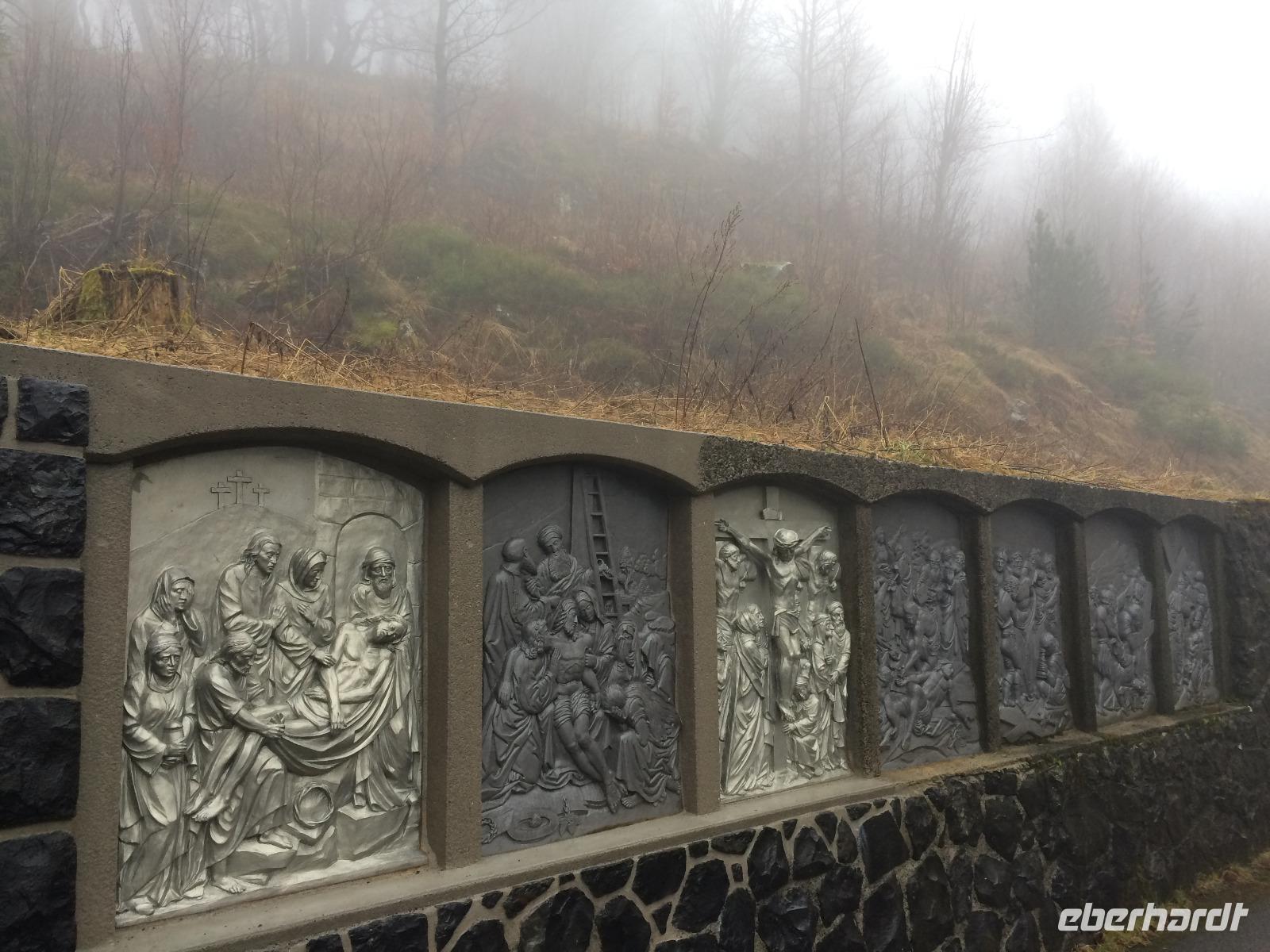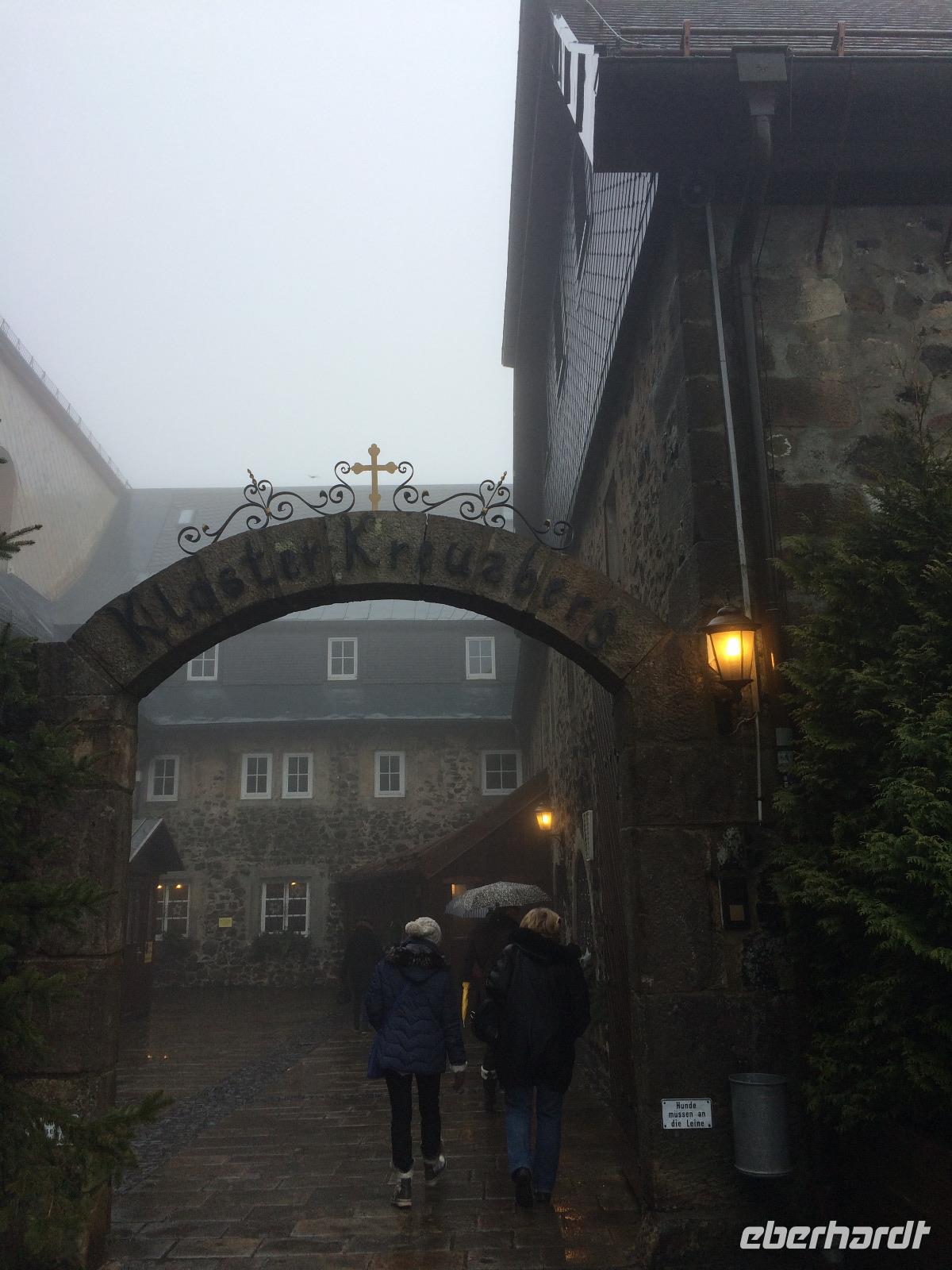 Am Vormittag besuchen wir den Kreuzberg, das beliebteste Ausflugsziel in der bayerischen Rhön. Er ist auch ein berühmter Pilgerort und wird gern als der Heilige Berg der Franken bezeichnet. Unsere Hoffnung auf gute Sicht und schönes Wanderwetter werden leider genommen, als wir oben auf dem Berg ankommen. Ein rauer, kalter Wind weht uns die Schirme weg und der Nebel breitet sich wie ein Schleier über die Klosteranlage. Na gut, wir erfahren im Museum Interessantes über das Leben des heiligen Franz von Assisi. Und auch wenn es tatsächlich etwas neblig ist, schmeckt das Klosterbier der Franziskaner in der berühmten Klosterschenke vom Kreuzberg richtig gut.Am Nachmittag wird das Wetter nicht wirklich besser und wir entscheiden uns, bei dem Schmuddelwetter die Bade- und Saunalandschaften der Hotelanlage zu nutzen. So tuen wir auch unserem Körper etwas gutes, schließlich ist es Weihnachten und schließlich sind wir im Urlaub.
