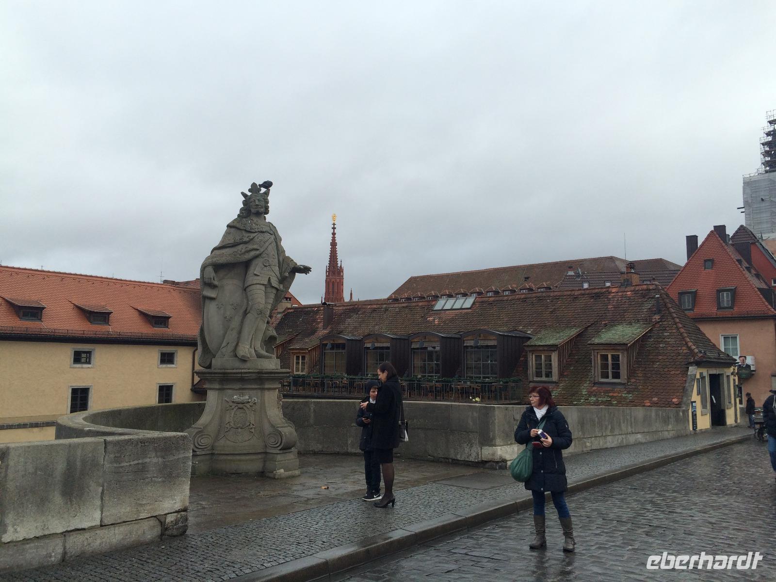 Heute ist Petrus auf unserer Seite, denn haben Glück mit dem Wetter: es ist nicht zu kalt und trocken bleibt es ebenfalls. Nach herzhaftem Frühstück fahren wir nach Würzburg, in die barocke Residenzstadt der Fürstbischöfe. Die nette Stadtführerin Ruth begleitet uns wieder bei diesem Ausflug. Der Rundgang führt uns vorbei am Paradeplatz, dem heutiger Wohnsitz des Bischofs, zur barocken Fürstbischöflichen Residenz. Ruth erzählt uns Wissenswertes über dieses Meisterwerk von Balthasar Neumann. Weiter geht es zum und in den Dom St. Kilian mit der Grabplatte Tilman Riemenschneiders, zum Marktplatz mit der Marienkapelle, zum Falkenhaus mit der schönen Rokoko-Fassade, zum Rathaus hinüber und hinein ins Neumünster, mit dem Lusamgärtchen mit Kreuzgang und dem Grab von Walther von der Vogelweide dahinter. Wie von magischen Händen werden plötzlich die Wolken beiseite geschoben und die ersten Sonnenstrahlen fallen auf unsere roten Wangen. An der alten Mainbrücke mit den Ausblicken auf die Festung Marienberg, das Käppele und die Weinlage „Stein" beenden wir die Führung. Es bleibt Zeit für einen Kaffee und einen Spaziergang durch das heute so ruhige Würzburg.