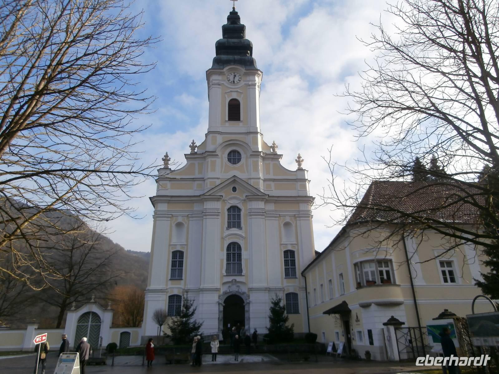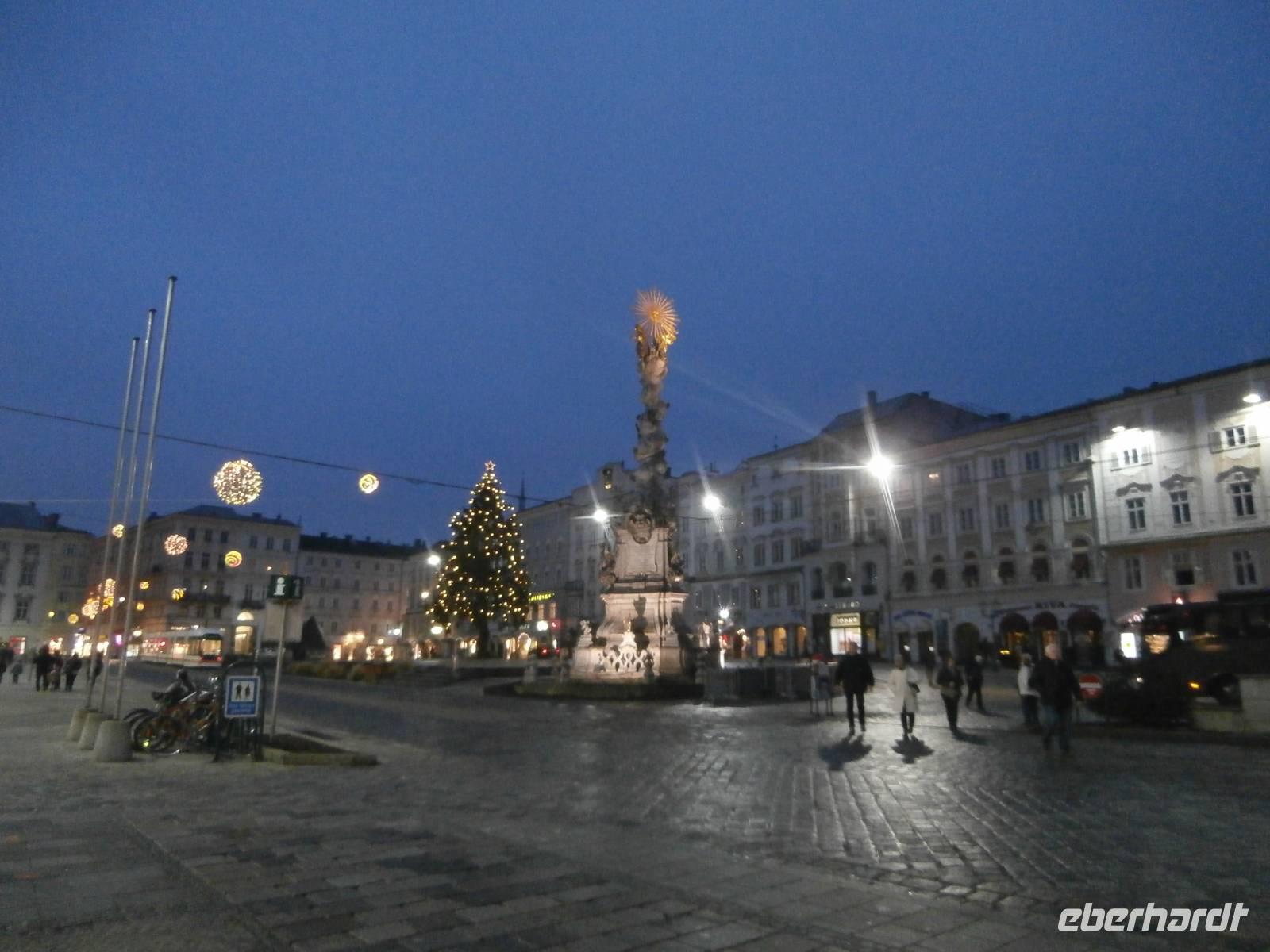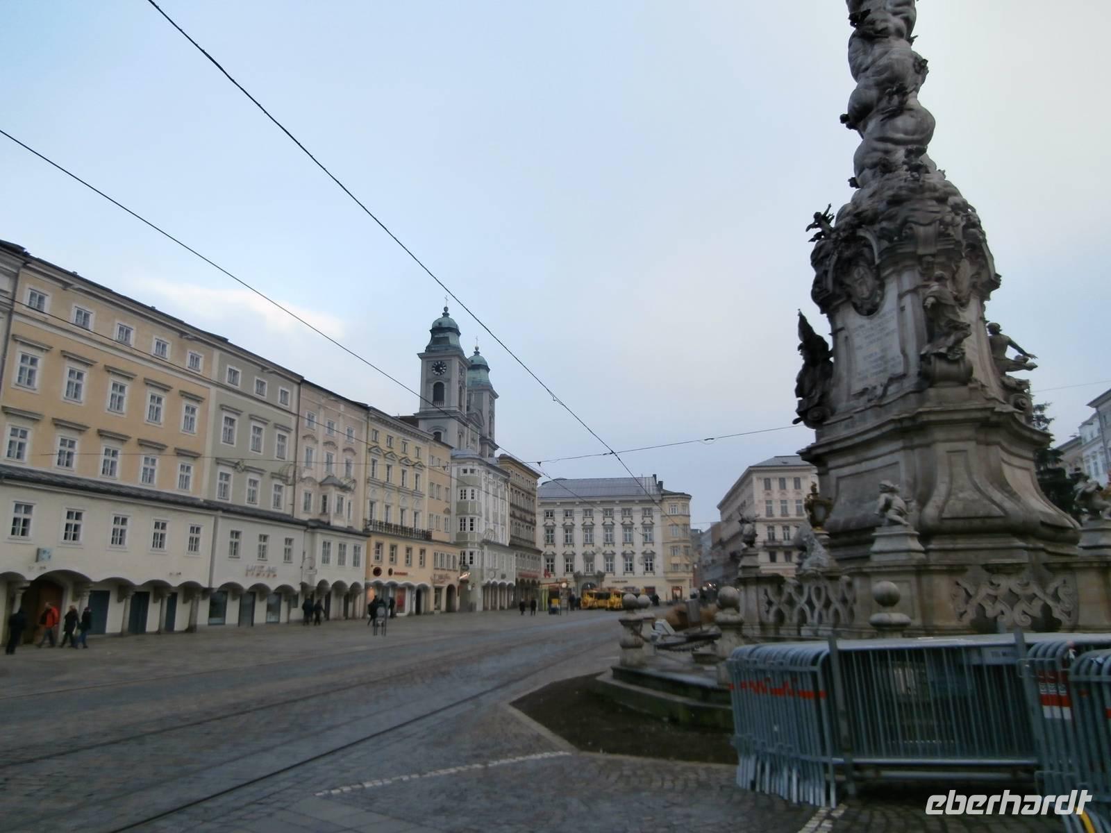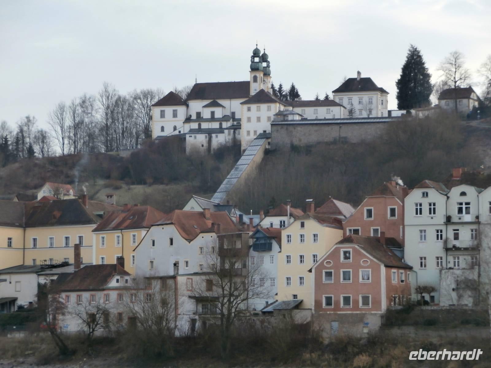 Einen ersten Fotostopp legen wir in Engelhartszell am einzigen Trappistenkloster Österreichs am Stift Engelzell ein. Schon von Weiten grüßt uns der markante Turm der Klosterkirche am Ufer der Donau. Wir finden die Klosterkirche geöffnet vor und sind beeindruckt von der Ausstattung. Weiter geht unsere Fahrt entlang der Donau und in Schlögen stoppen wir erneut. Bei Sonne und blauen Himmel schauen wir auf die Donau, die hier in einer engen Kehre um 180 Grad von südöstlicher auf nordwestliche Laufrichtung wendet und anschließend wieder zurück in Richtung Osten fließt. Am Nachmittag werden wir von Theresa in der oberösterreichischen Landeshauptstadt Linz erwartet. Das Linz nicht nur Industriestadt ist, bemerken wir sehr schnell. Die vielen Sehenswürdigkeiten wie der Alte und Neue Dom, das Ständehaus und der Hauptplatz mit der Dreifaltigkeitssäule sind beeindruckend. Als wir den Neuen Dom verlassen, können wir Heino und seine Gattin Hannelore in Nähe des Domes sehen. Am Silvestertag war der Musikantenstadl in Linz zu Gast. Frau Hannelore stammt aus Linz erfahren wir später von Theresa. Unsere örtliche Führerin Theresa versäumt es nicht, uns eine Kostprobe der berühmten Linzer Torte zu reichen. Nun haben wir eine Vorstellung von diesem leckeren Gebäck. Nach unserer Freizeit in Linz treten wir die Rückfahrt nach Passau an, unterwegs gibt es für alle einen Minischnaps gekauft von mir bei der Firma Penninger, so begrüßen wir nochmal das Neue Jahr mit einem Getränk gesponsert vom Reiseveranstalter Eberhardt Travel.