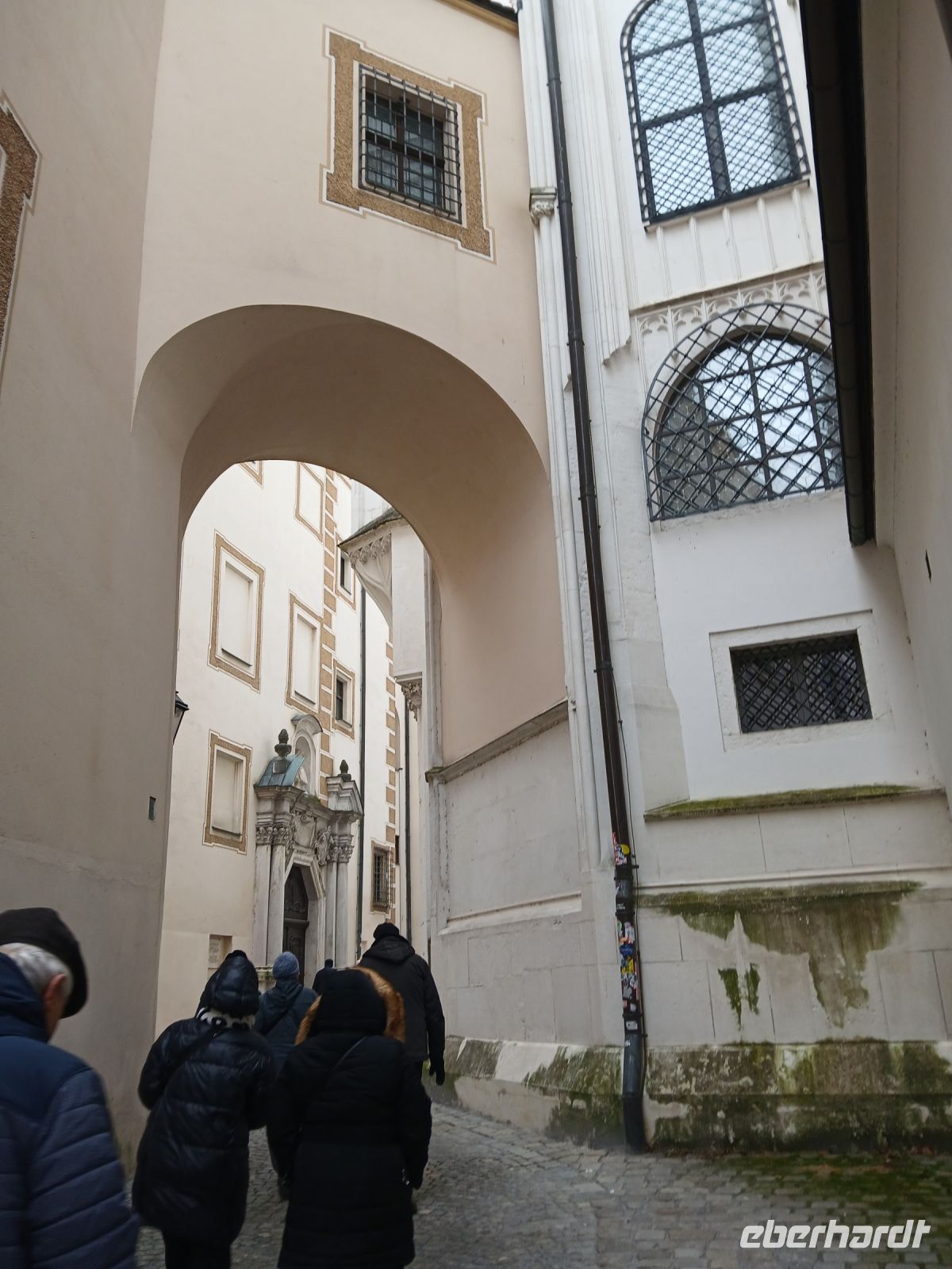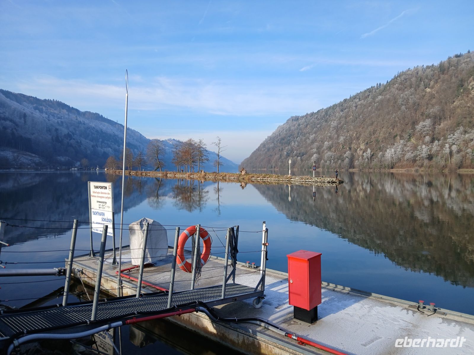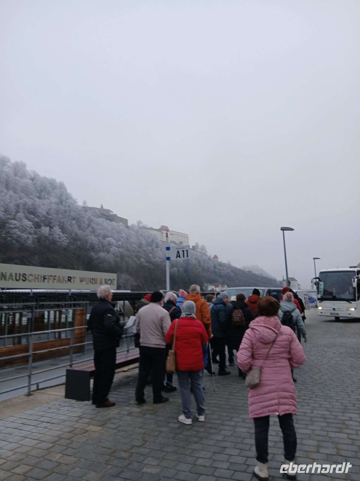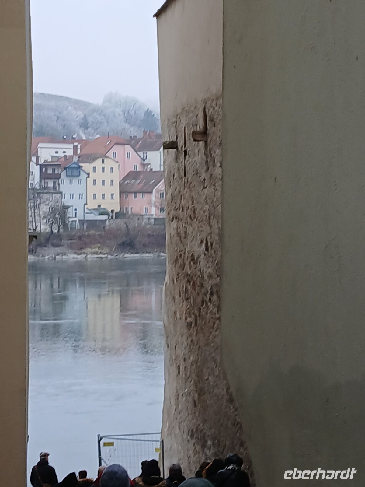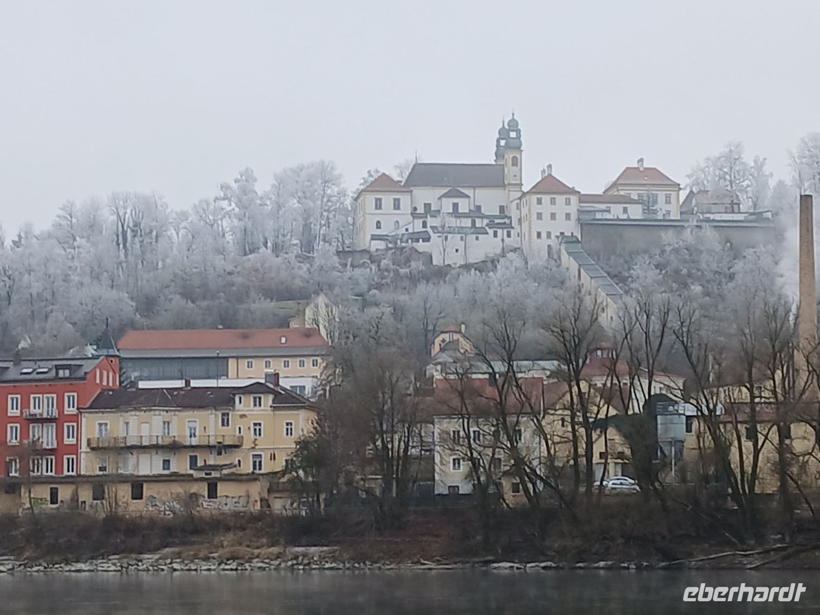 Ausgeschlafen und nach einem späten Frühstück erfreut uns die klare Sicht von unserem Hotel auf die Veste Oberhaus.Wir überqueren den Inn und die Donau, um an deren Südseite zu gelangen. Schon bald erreichen wir die Grenze zu Österreich.Durch die winterliche Landschaft fahren wir an Obernzell , Engelhardtszell und anderen mittelalterlichen Orten vorbei .Zu beiden Seiten des Flusses erheben sich auf Anhöhen Burgen und Klöster, die diesem- wohl schönsten - Stromgebiet der Donau seine Prägung verleiht. Ein bleibendes, weil sehr beeindruckendes ,Naturerlebnis bietet sich uns an der Schlögener Schlinge. In der Windung der Donau spiegeln sich die Hügel und Wälder der sie umgebenden Hügellandschaft. Ein einmaliger Eindruck!