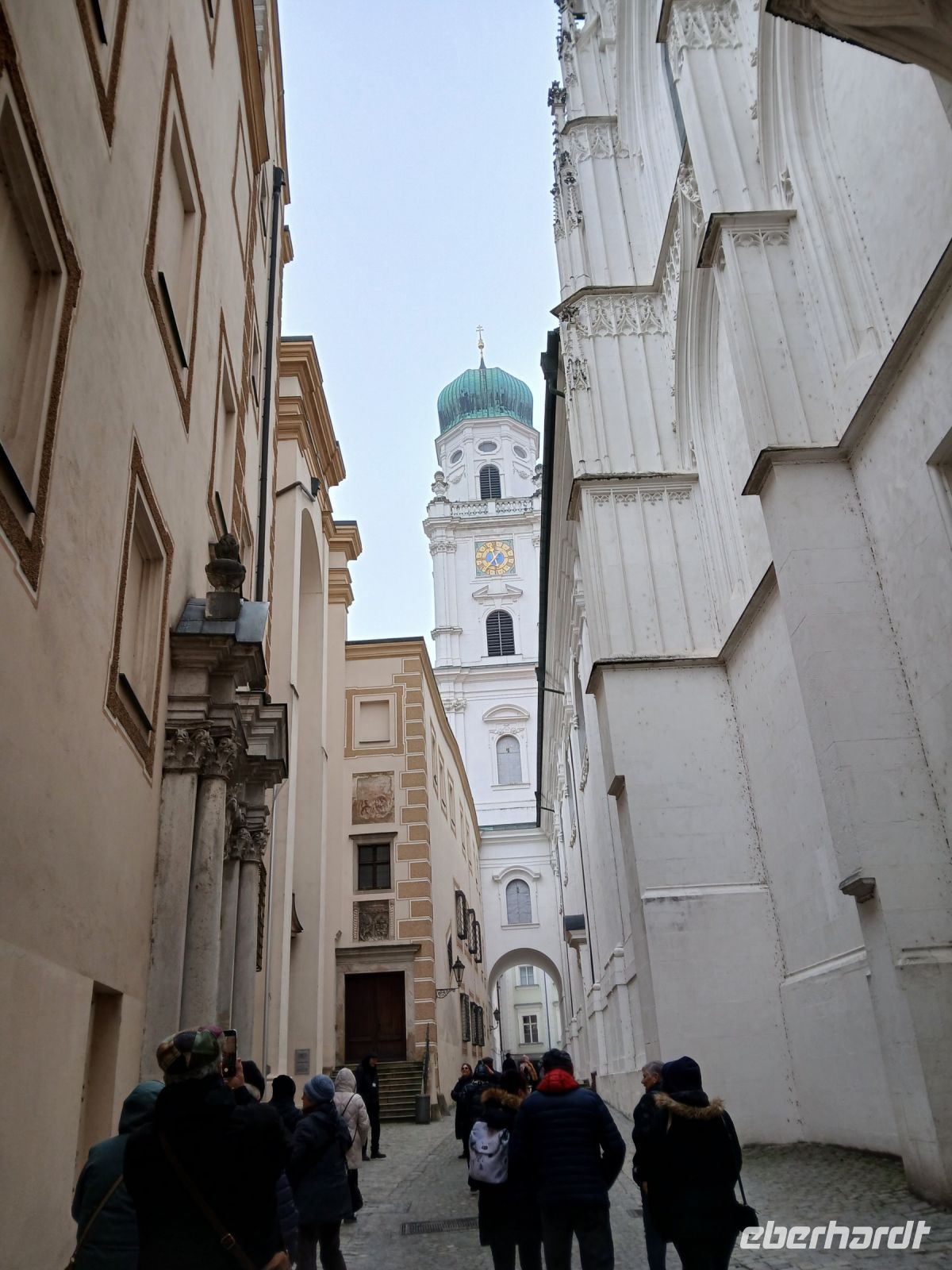 Nach einem guten Frühstück sind wir gespannt auf Passau. Schon auf der Fahrt zum Treffpunkt mit den Stadtführern überqueren wir den Inn und fahren ans Ufer der Donau.Da wir eine große Gruppe sind, werden wir auf einem Spaziergang von zwei Stadtführern mit der sehr wechselhaften Geschichte und den Sehenswürdigkeiten der Drei - Flüsse - Stadt bekannt gemacht. Am Rathaus, dem Dom St. Stephan, dem Dreiflüsseeck ,in der Künstlergasse und den wunderschönen Fassaden vieler Häuser klickten die Fotoapparate oder die Handys .So haben wir auch Erinnerungen und