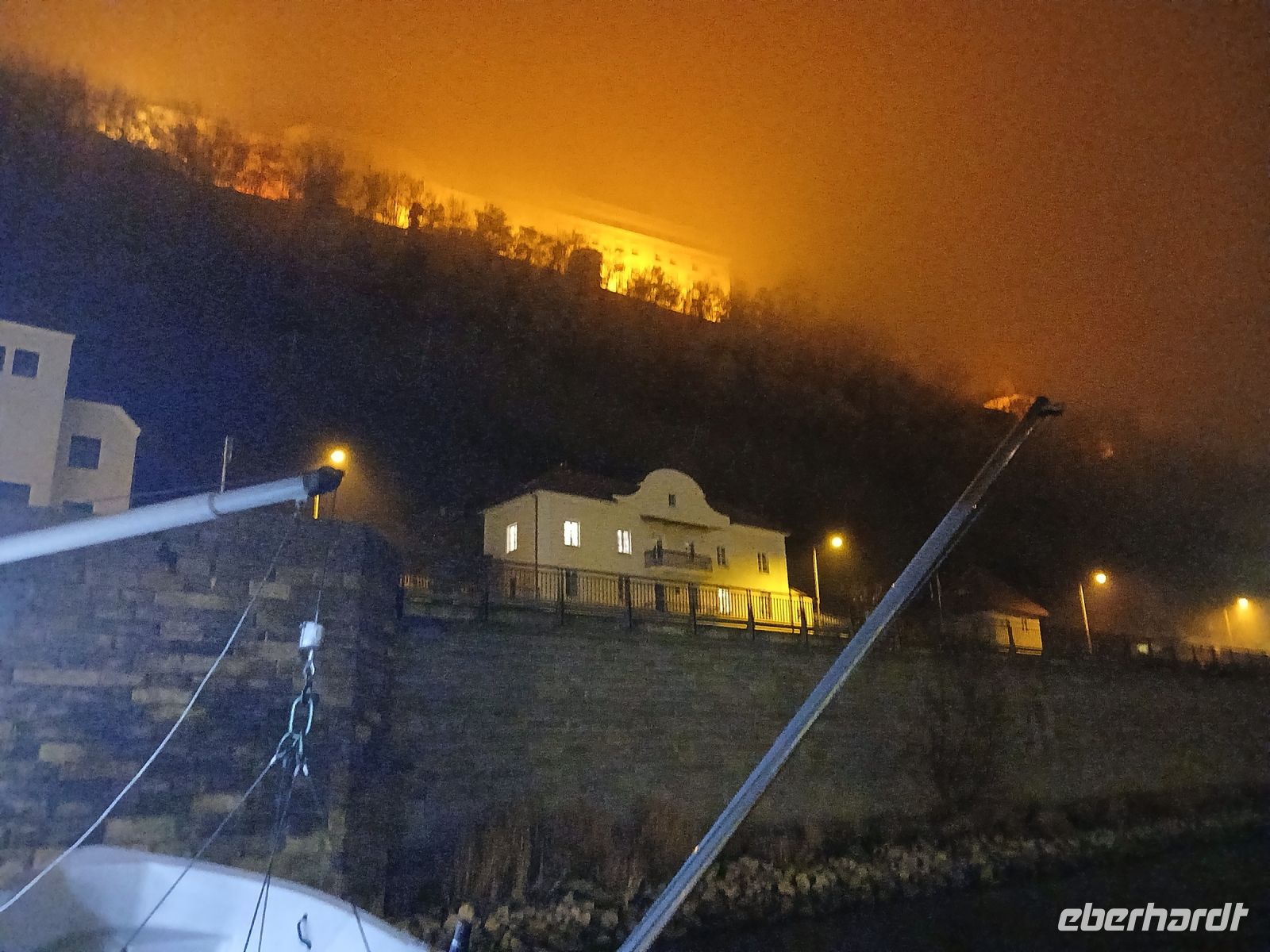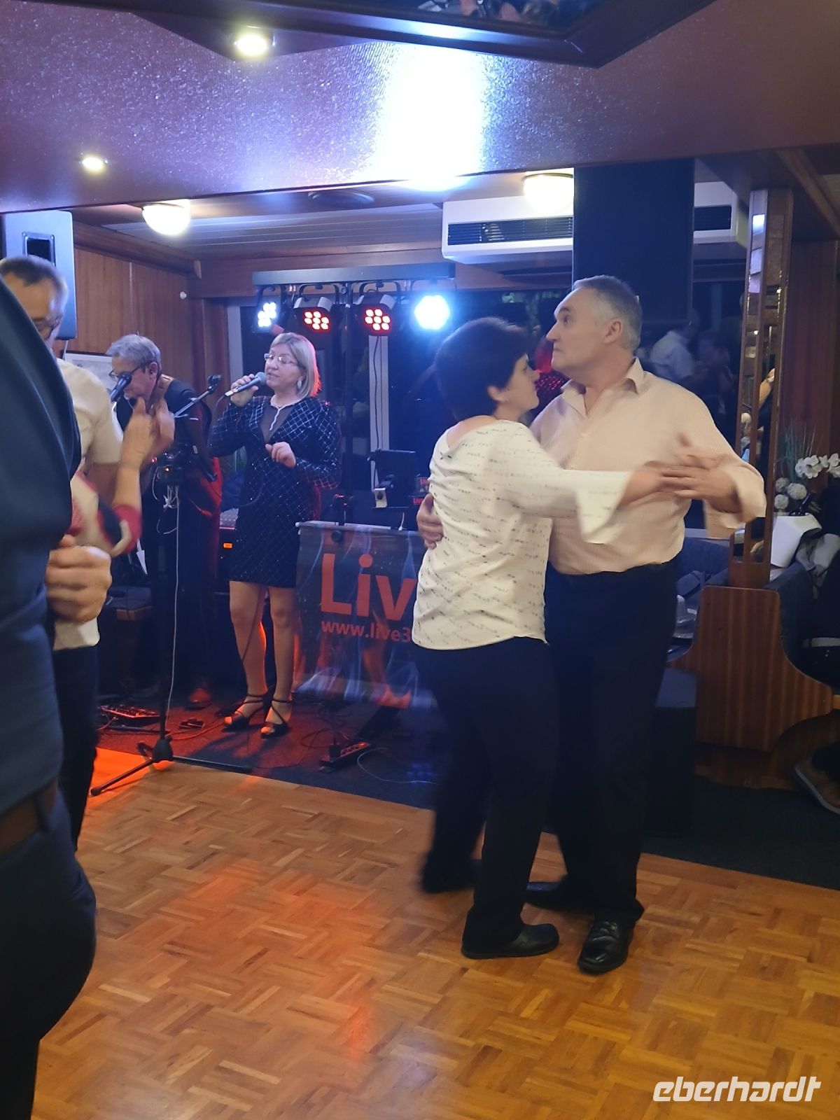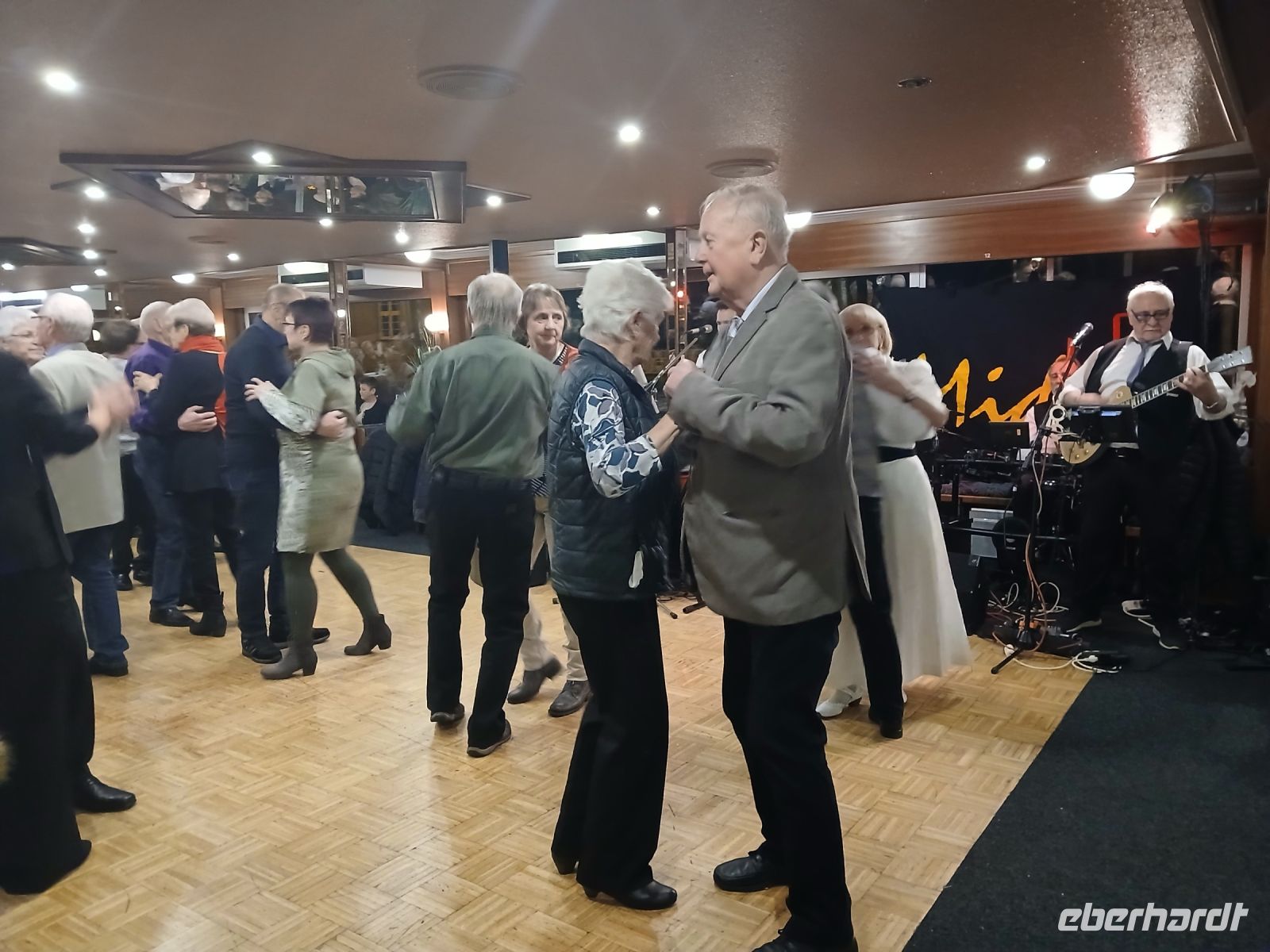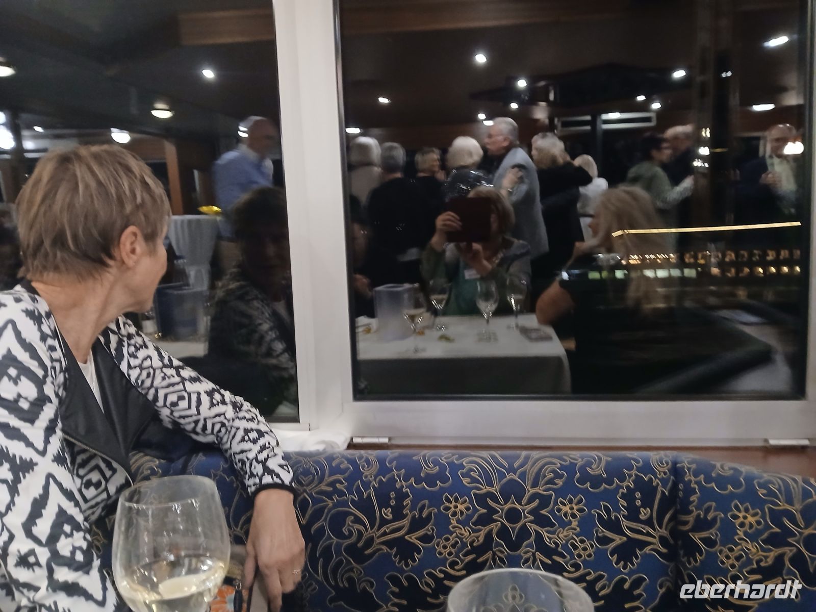 Nachdem wir wieder "fit" und "aufgehübscht" sind ,bringt uns unser eberhardt- Bus zeitig zur Anlegestelle der Schiffe, was ein enormer Vorteil bei der Parkplatzwahl ist. Dort verkürzen wir uns die Wartezeit mit Silvestergedichten, - geschichten und Musik. Auf dem Schiff " Stadt Linz" erlebten wir einen phantastischen Silvesterabend. Während der nächtlichen Fahrt auf der Donau genossen wir bei Musik und Tanz, ein reichhaltiges Büfett und grüßten winkend und einander zuprostend die vorbeifahrenden Schiffe. Nach Mitternacht konnten wir uns vom Schiff aus am Silvesterfeuerwerk der Stadt Passau erfreuen.