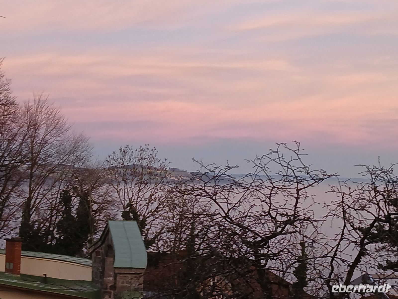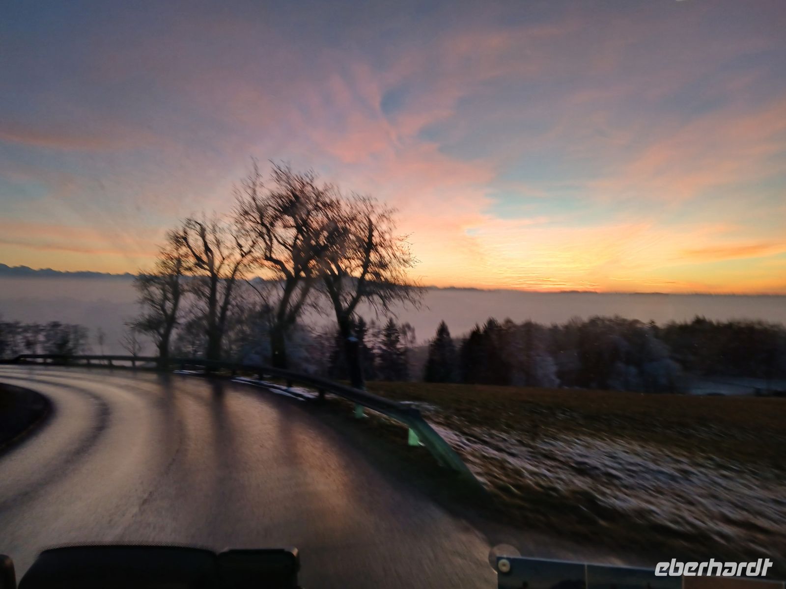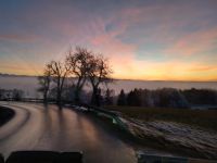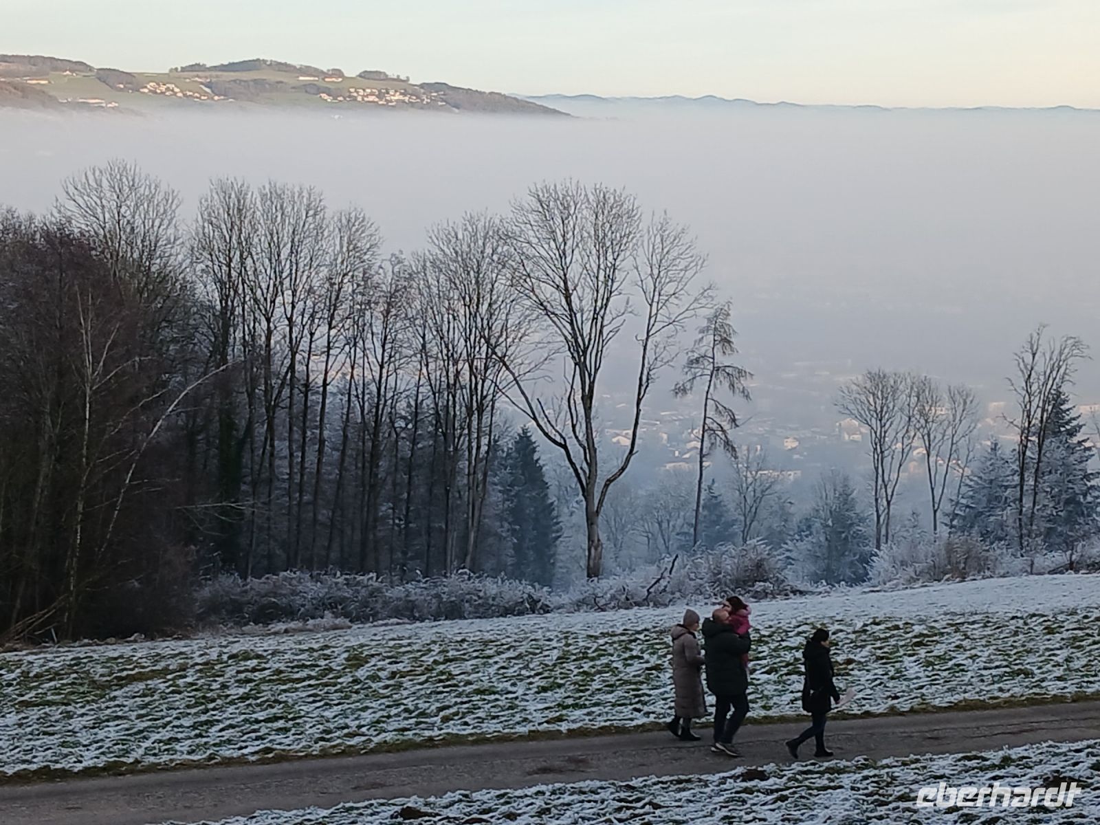 vielleicht im Sommer- sehr viel Zeit zum gemütlichen Bummeln nehmen sollte. Beim Kirchenwirt klang unser Linzbesuch, natürlich bei Linzer Schnitte und einem" Verlängerten" oder Cappuccino, aus .Von der Anhöhe bot sich uns noch ein wunderbarer Blick auf eine in der Landschaft schwebende Nebelwolke. Diese verdichtete sich auf der Rückfahrt zusehends, was unseren Busfahrer aber gar nicht störte, uns beeindruckte.