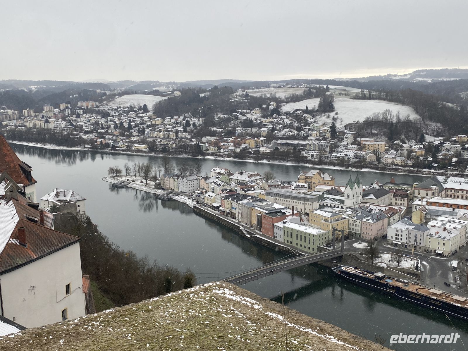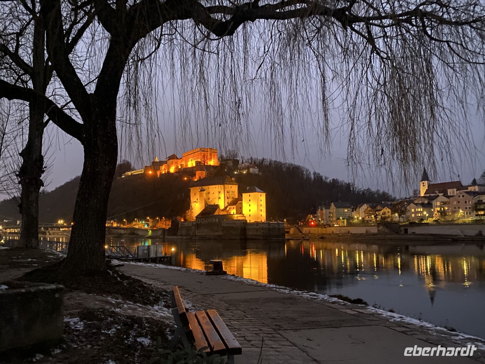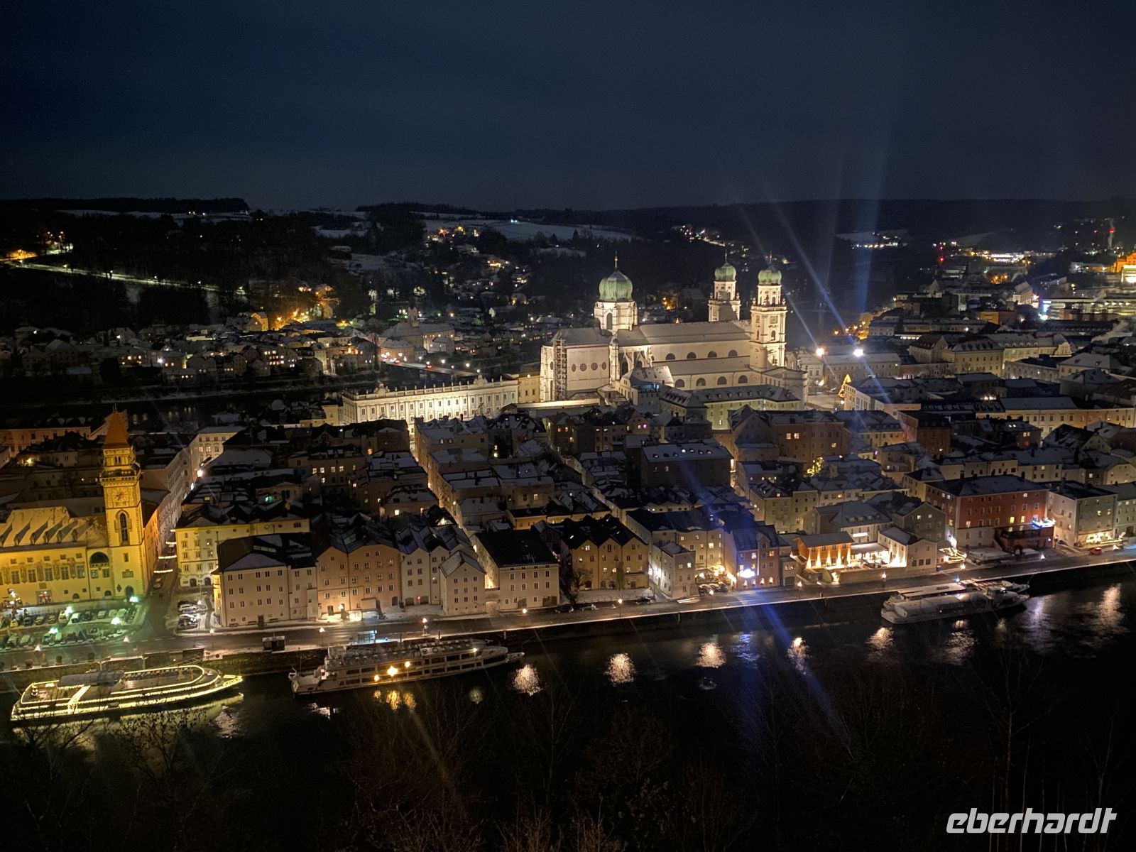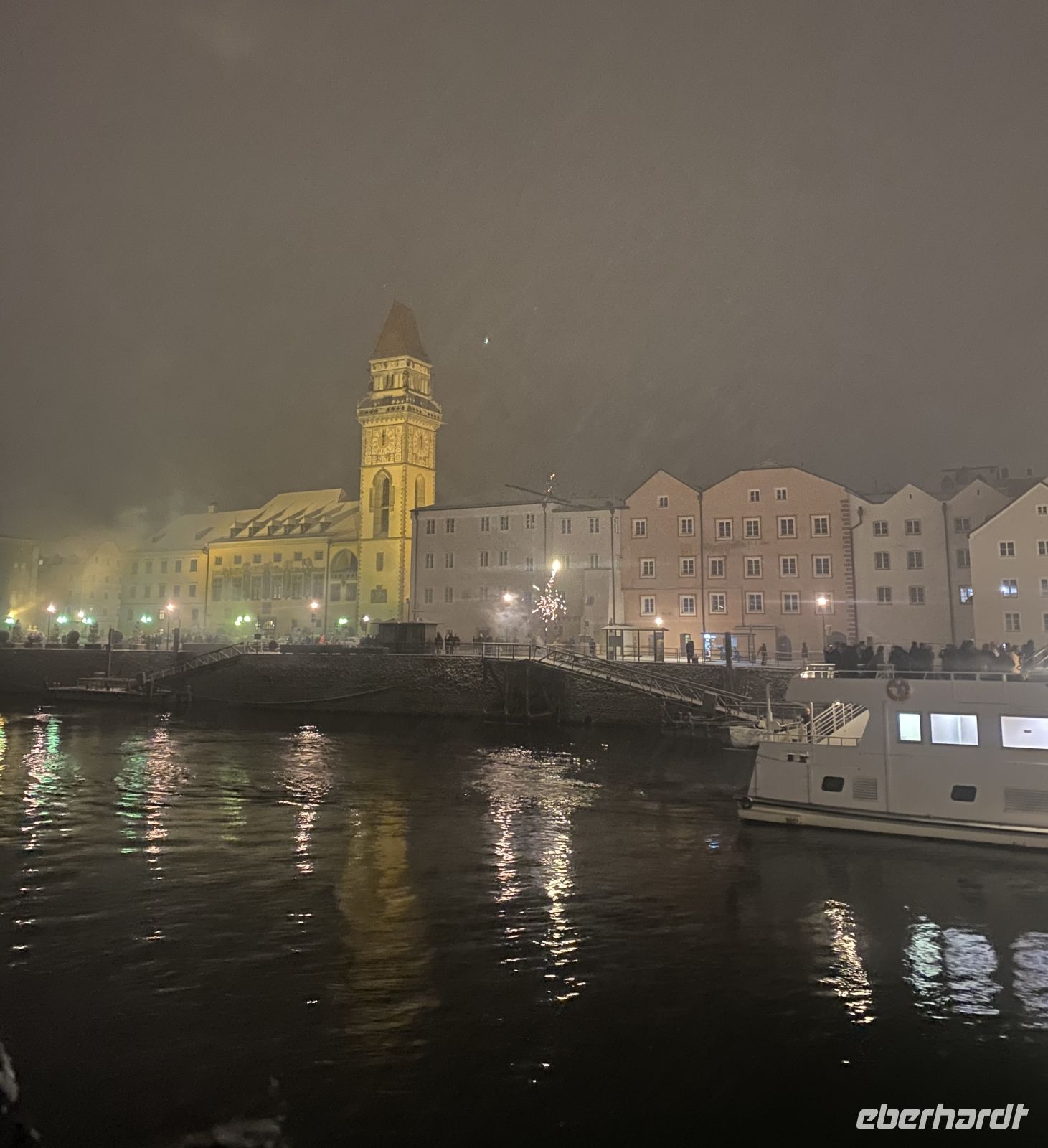 Und als das Schiff rechtzeitig zum Jahreswechsel wieder in Passau zurück ist, stoßen wir bei leichtem Schneefall mit einem Glas Sekt aufs Neue Jahr an, hören die mächtigen Glocken des herrlich erleuchteten Domes und erfreuen uns am Feuerwerk.
