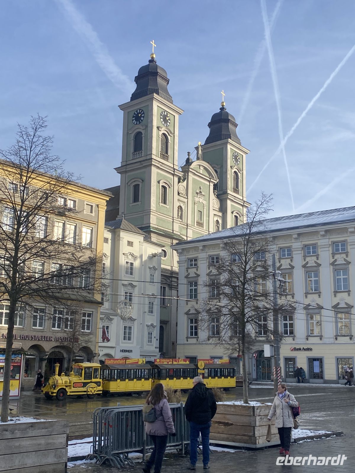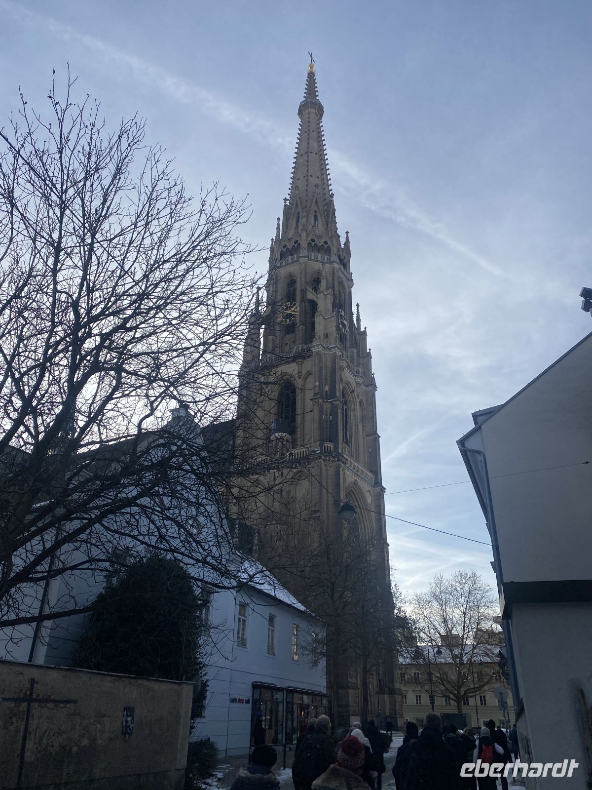 Dann geht es weiter nach Linz, der Hauptstadt des Bundeslandes Oberösterreich, in der wir auf unsere Stadtführerin treffen. Sie nimmt uns mit auf den großen Hauptplatz mit seiner Dreifaltigkeitssäule und den schönen Bürgerhäusern, die ob der Steuerersparnis nur drei Fenster pro Etage aufweisen. Auf verschlungenen Wegen gelangen wir zum imposanten Mariendom, einem neogotischen Bauwerk aus dem frühen 20. Jahrhundert mit sehr schönen Buntglasfenstern. Und nachdem wir noch ein ehemaliges Kloster, in dem heute das oberösterreichische Parlament untergebracht ist, und das Mozarthaus besichtigt haben, wird es Zeit, auf den Linzer Hausberg, den Pöstlingberg, zu fahren und diese relativ große Stadt von oben zu bewundern. Dort oben machen wir dann auch Rast, um in einem Cafe das berühmteste Gebäck der Stadt, die Linzer Torte, zu verkosten.