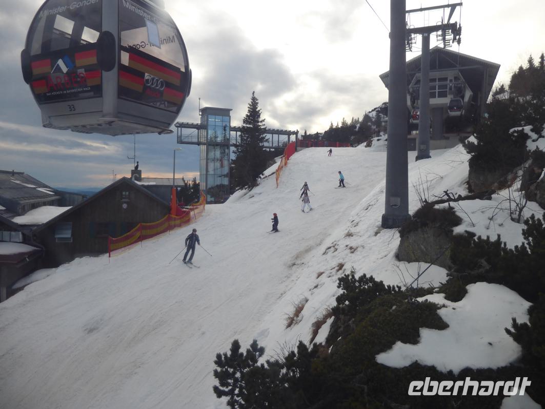 Weiter führte unsere Rundfahrt nach Bayrisch Eisenstein bis zum Großen Arber. Am großen Arber sind 8 Grad über null, man kann gerade noch die Skifahrer bestaunen. Wir fuhren mit der Gondelbahn auf den „König des Bayrischen Waldes" in eine Höhe von 1456 m und werden mit einem sagenhaften Weitblick belohnt.