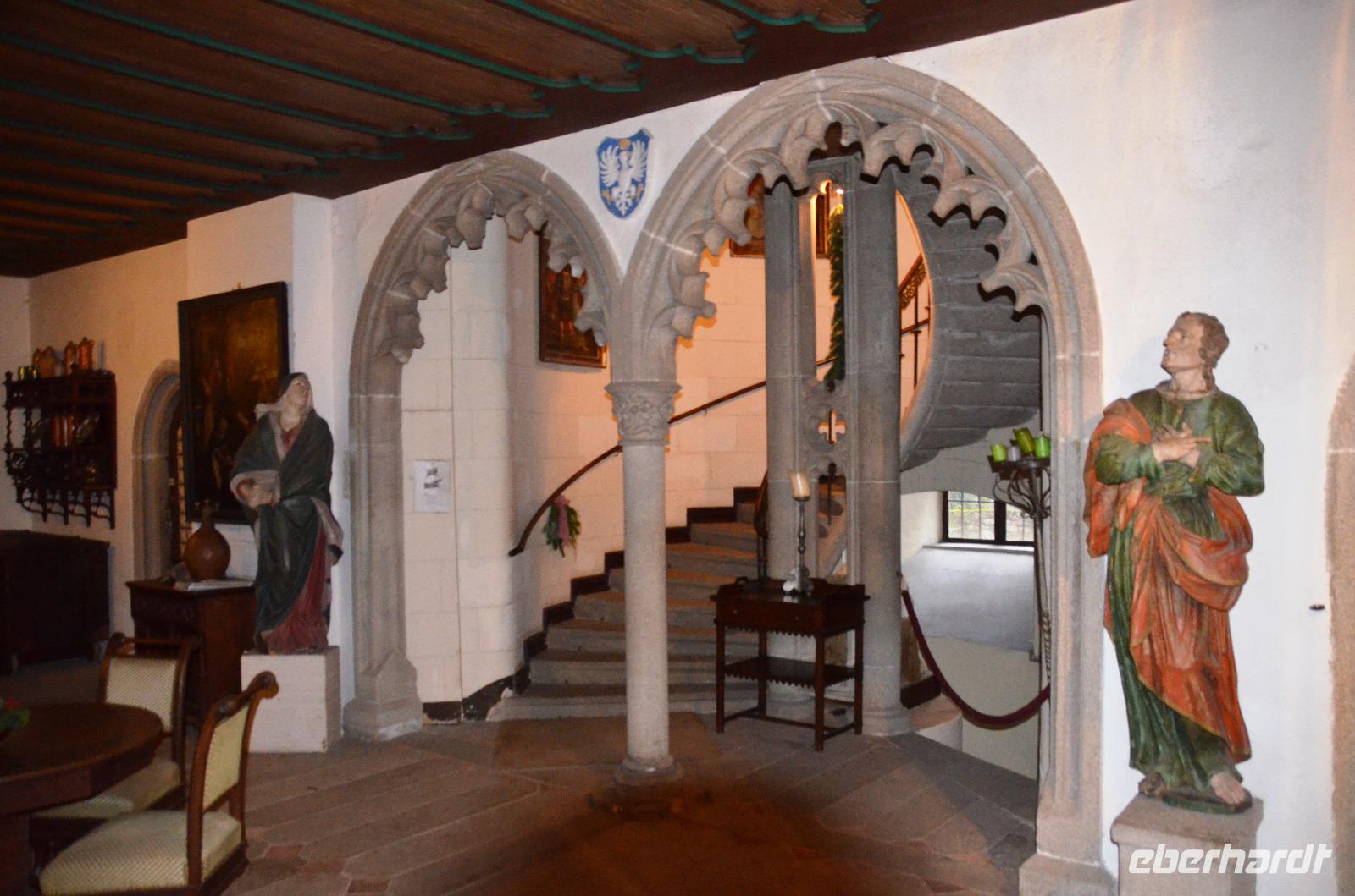 Ein Gruppenfoto am Schloss und erste Fotos der Anlage lassen die Zeit schnell verstreichen, bis der Schlossherr, Herr Konsul Georg Hartl, mit uns die Führung macht - und uns sehr interessant und erlebenswert eine der ältesten Burganlagen (1109) Bayerns mit seinem neugotischen Schlossbau näherbringt.