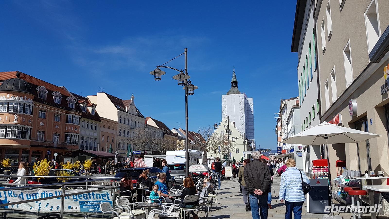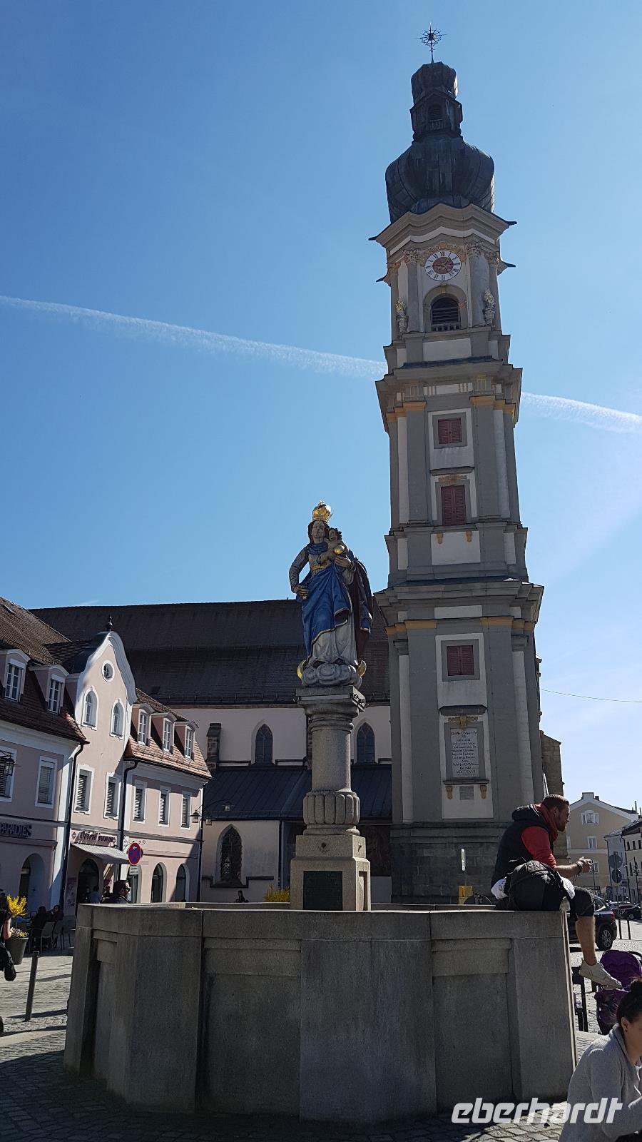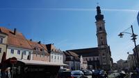 Hier angekommen stärken wir uns erst einmal, wer wollte vom Bordservice oder auch in der Stadt selber. Wir hatten einen guten Parkplatz in Zentrumsnähe für unseren Bus gefunden und so war der Spaziergang zum Oberen Stadtplatz und dem Luitpoldplatz kein Problem. Zudem hatte ein Gast vorgesorgt und alle mit Kartenmaterial ausgestattet, auch mit einem Innenstadt-Plan von Deggendorf. So ausgestattet genossen alle das herrliche Wetter in der Stadt, spazierten zum Rathaus, das leider teilweise eingerüstet war, zur Grabkirche oder zur Stadtpfarrkirche. Und dann ein frischer Erdbeerkuchen, Cappucchino dazu - und das bei strahlendem Sonnenschein im Straßencafe- was gab es schöneres? Zurück am Bus waren alle gespannt, wohin es nun ginge, ich hatte eine Überraschung angekündigt und bisher nix verraten- das taten dann aber die Wegweiser unterwegs, rasch hatten alle gesehen wohin es ging: zum