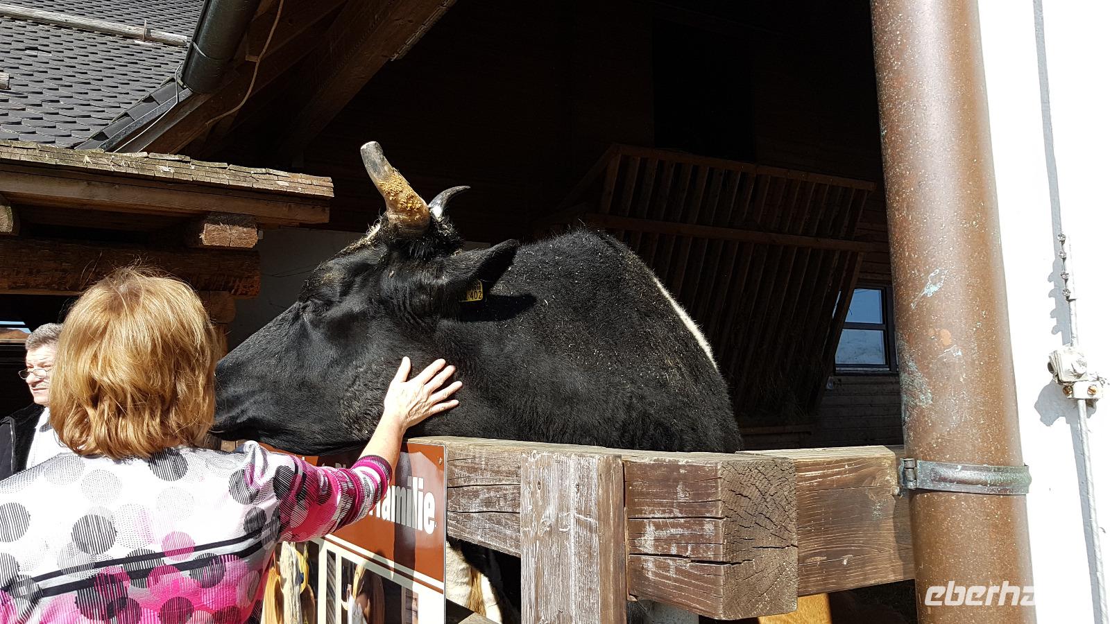 Dieses Extra war eine schöne Überraschung und so spazierten alle mit zu einer kleinen Führung durch den Hof, bestaunten die wohl berühmteste Kuh Bayerns, Yvonne. Sie hatte mit ihrer Flucht vor dem Schlachter und dem fast 100-tägigen Versteck im Wald für Schlagzeilen gesorgt. Doch noch viele andere Tiere finden hier einen Platz, seien es ehemalige Polizeipferde, Hunde, Katzen, Tauben, Rinder, Esel, Ziegen ... Jeder konnte sich individuell umschauen und ein Anziehungspunkt war natürlich die "Katzenvilla". Andere wiederum genossen die herrliche Aussicht hier und ruhten sich einfach unter einem der vielen Bäume auf einer Bank aus, beobachteten das Treiben, wenn die Pferde von der Koppel geholt wurden oder frisches Heu in ihre Raufen bekamen. Doch auch der schönste Nachmittag geht vorüber und so machten wir uns auf den Heimweg nach Hohenau. Der Abend klang mit einem tollen Salat-Buffet und weiteren 3 Gängen aus, nicht ohne den Hinweis auf die bevorstehende Zeitumstellung diese Nacht. Und die sollte ausgerechnet mir noch einige Kopfzerbrechen bereiten...