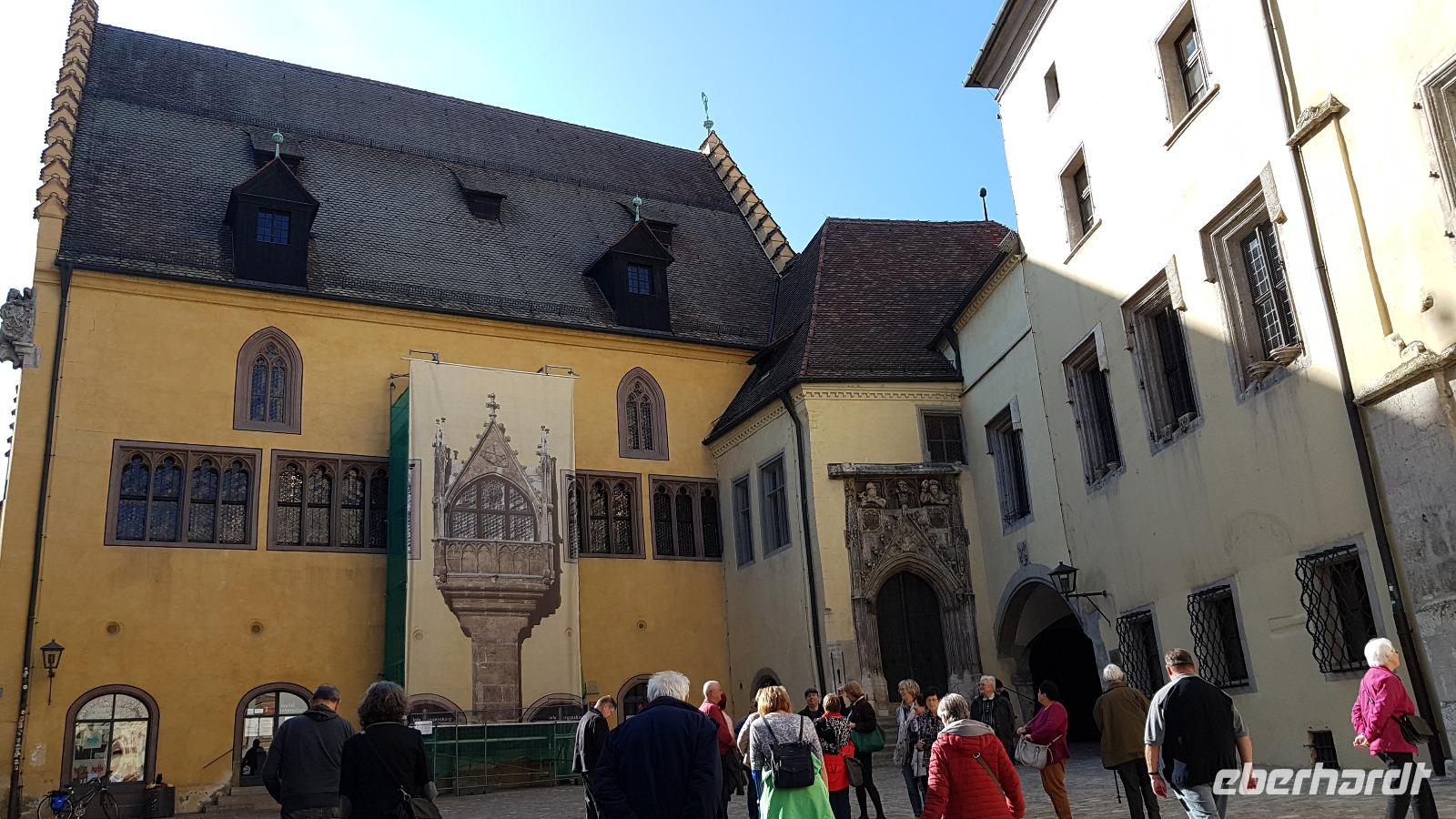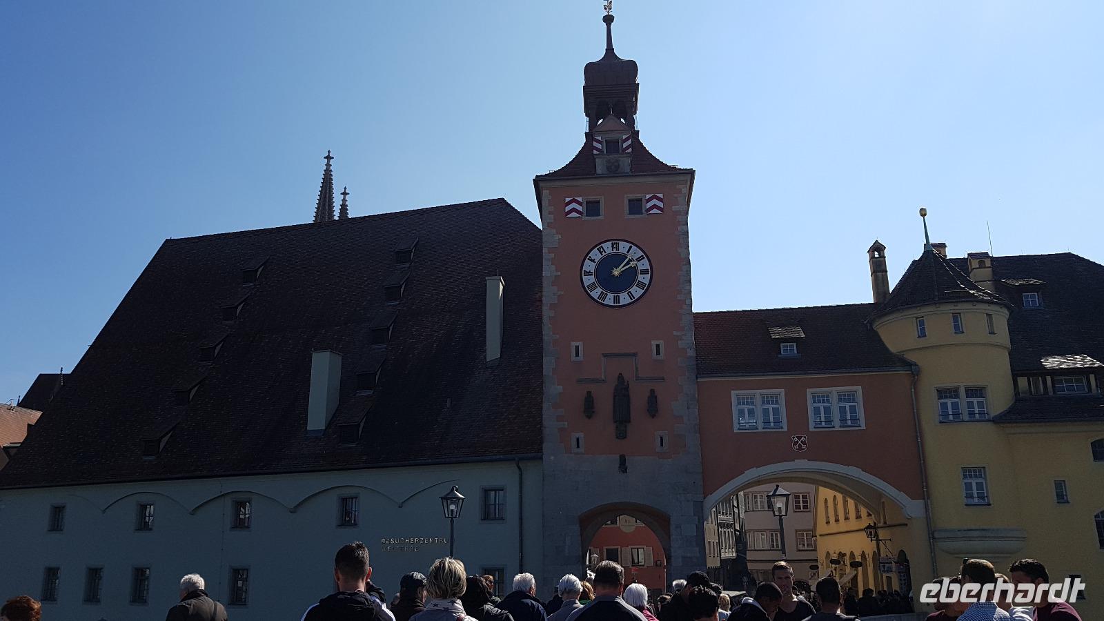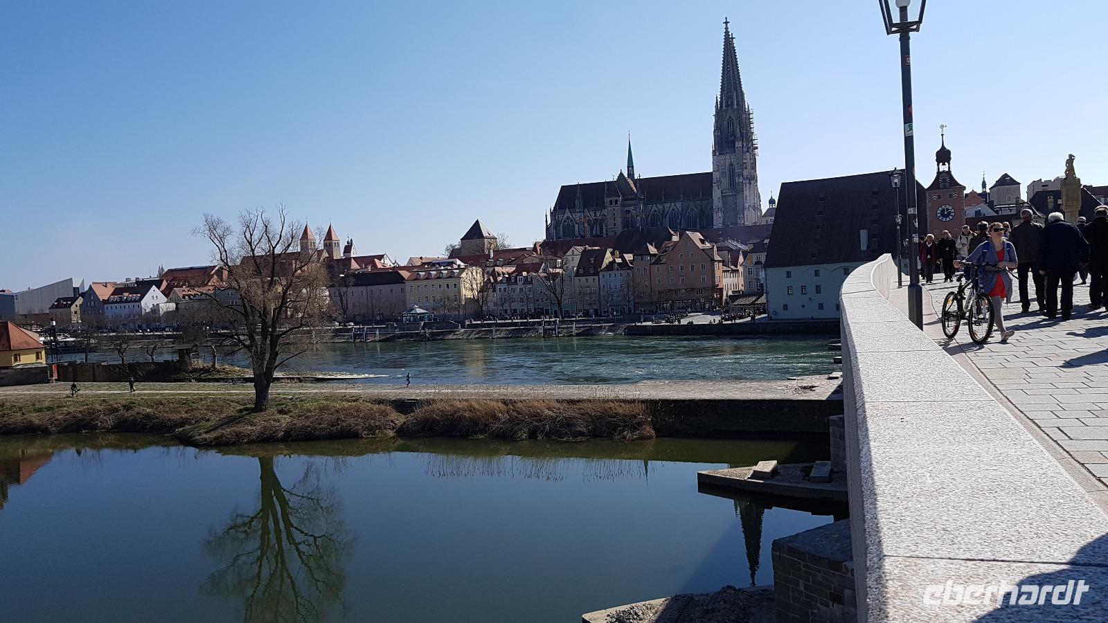 Unsere Stadtführerin empfängt uns am "Protzenweiher". Durch das Stadttor gelangen wir in die Altstadt und zur steinernen Brücke aus dem 12. Jahrhundert. Gerade wurde sie aufwändig saniert und wir bestaunen die 3 Arme der Donau die hier überquert werden. Durch das Info-Zentrum Weltkulturerbe erreichen wir die berühmte Wurstlküche, die schon seit dem Mittelalter hier am Ufer der Donau stehen soll. Wir sind noch alle gesättigt und so folgt auch niemand der Aufforderung, doch einen "Sechser auf Kraut" zu bestellen, wie unsere Stadtführerin Christine vorschlug. Also spazieren wir weiter, durch Gassen und Hinterhöfe bis zur Porta Praetoria- Zeitzeuge der Römer hier vor Ort. Von den 2 Türmen ist noch einer erhalten und durch die Porta gehen wir weiter, erfahren viel zur wechselvollen Geschichte einer Stadt, die nie zu Bayern gehören wollte. Seit 2006 sind viele der denkmalgeschützten Gebäude der Stadt Weltkulturerbe der UNESCO und so lassen wir uns beeindrucken von Baukunst und Ausstattungen. Höhepunkt natürlich der Dom. Und wieder lernen wir dazu, die Jahreszahl im linken Turm zeigt eine "halbe Acht"- also ist es eine Vier. Und es ist 1495 gemeint. Und nicht 1895- wie es von hier unten aussieht. Weiter geht unser Spaziergang bis zum Rathaus der Stadt. Hier wurde Geschichte geschrieben, denn die Zeit der Reichstage, auf denen Recht gesprochen wurde, Allianzen geschmiedet und Bündnisse besiegelt wurden war Mitte des 17. Jahrhunderts vorbei. Regensburg wurde auserkoren, Heimstatt des sogenannten "immerwährenden Reichstages" zu sein. Man traf sich nicht mehr selber in zeitlichen Abständen, Gesandte der Könige und Fürsten saßen nun ohne Unterbrechungen zusammen und diskutierten und entschieden die künftigen Entwicklungen. Und das bis 1803. Hier am Rathaus verabschiedeten wir uns schließlich von Christine und jeder konnte noch ein wenig bummeln, sich von der Lebendigkeit der Studentenstadt anstecken lassen oder vielleicht auch im strahlenden Sonnenschein ein Eis genießen. Pünktlich waren alle am Ufer der Donau zurück und weiter ging unsere Fahrt Richtung Nationalpark Bayerischer Wald. Deutlich merkte man die Höhenunterschiede- hier lag tatsächlich noch erheblicher Schnee an den Straßenrändern und im Wald. Nicht aber so in unserem Ziel: