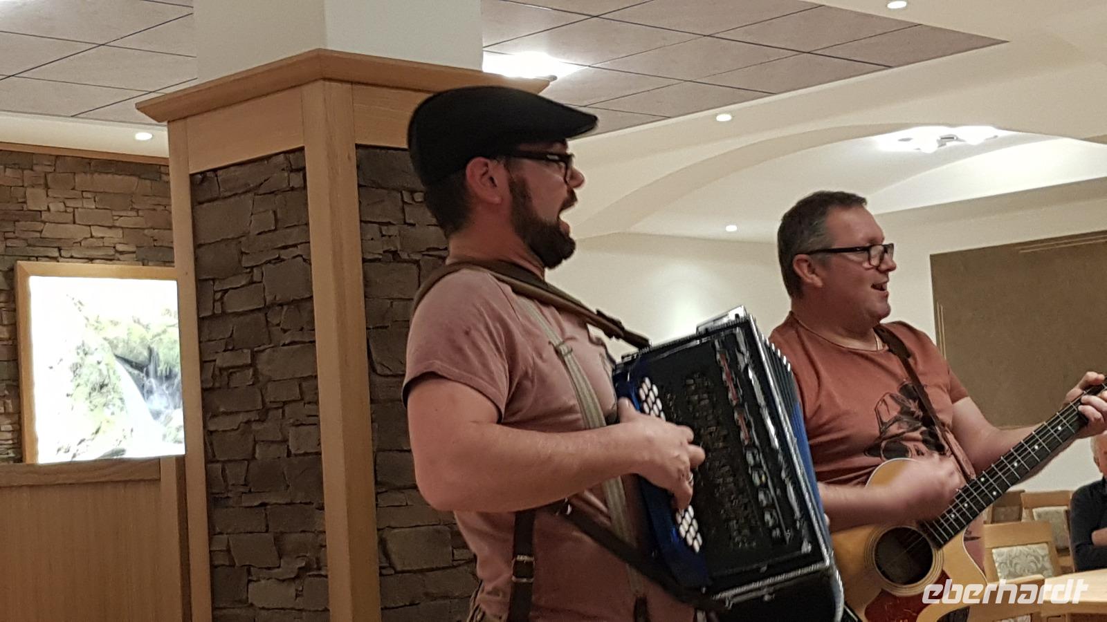 Andre fährt uns zum oberen Parkplatz und wir spazieren durch den Schloßpark hinunter. Eine außergewöhnliche Anlage, wunderschön die Gärten und riesig die Schloß- und Burganlagen. Nach der Prager Burg sind sie die zweitgrößten historischen Anlagen in Tschechien. Durch 3 Burghöfe laufen wir hinab, genießen eine spektakuläre Aussicht auf die Altstadt, die zum Weltkulturerbe der UNESCO gehört. Die Mühen über mittelalterliches Kopfsteinpflaster bergab werden schließlich mit einem guten böhmischen Mittagessen belohnt. Mit allem Drum und Dran und da darf natürlich ein Becherovka zum Abschluss nicht fehlen. Wer nun noch wollte (oder konnte) nutzte die Zeit für einen kleinen Bummel in die Altstadt bevor es wieder zurück ging. Unweit vom Restaurant wartet André mit dem Bus auf uns und wir genießen die Fahrt durch den Nationalpark Sumava, wie der Teil des Böhmerwaldes hier genannt wird. Noch ein kurzer Stopp am Markt vor der Grenze für einen Kaffee oder eine "Harmonie-Pause" und am Nachmittag erreichen wir wieder Hohenau. Wir verabschieden uns von Doris und wünschen ihr weiter viele liebe Erlebnisse mit ihrem "Mugel". Am Abend wartet dann ein Schmankerl Buffet auf uns- liebevoll von der Küche des Hauses hergerichtet und als krönenden Abschluß beehrt uns eine urbayerische Boy-Band: SMS, eigentlich ein Trio, heute jedoch als Duo unterwegs. Mit bayerischer Herzlichkeit und natürlich handgemachter Musik unterhalten sie uns aufs beste und so klingt ein wunderschöner Tag aus.