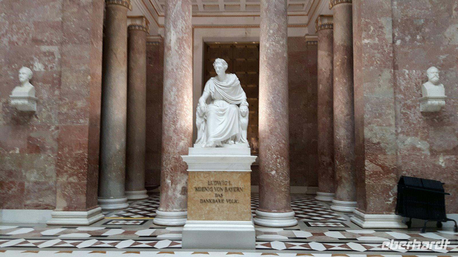 Noch einmal konnten wir das herzhafte Frühstücksbuffet im Hotel Haslbach genießen. Nach dem Check out war die Walhalle unser Ziel. Zuvor jedoch gab es noch eine Überraschung. Die Wirtsleute, Fam. Zweck, hatten sich als König Ludwig und Gattin verkleidet und empfingen uns zu Pferde am Ufer der Donau mit Blick zur Walhalla. Man erklärte uns die Walhalla und verabschiedete unsere Gruppe mit königlichem Gruß. Ein gelungener Höhepunkt ! Anschließend fuhren wir zur Walhalla, die der Akropolis in Athen nachempfunden ist. Die Gästeführerin führte uns in die Halle, in der ca. 130 Büsen und zahlreiche Tafeln verdienstvoller Persönlichkeíten gezeigt werden.