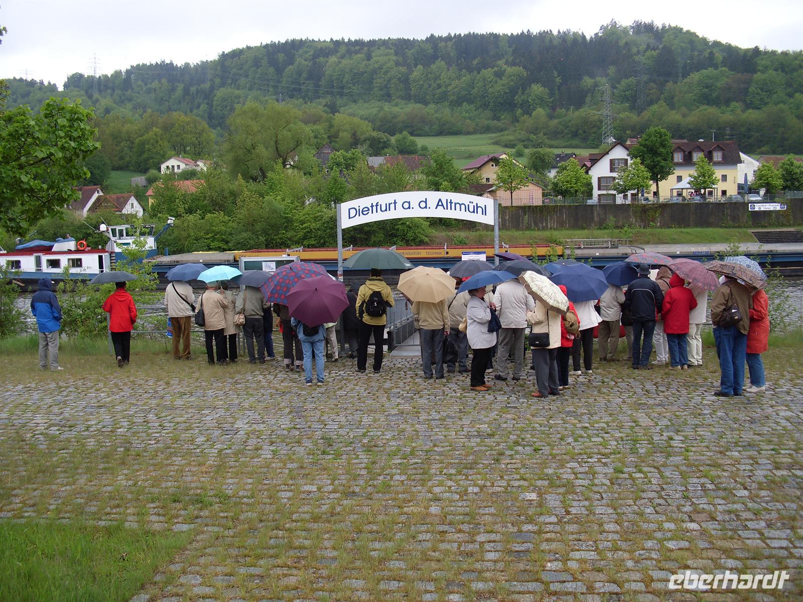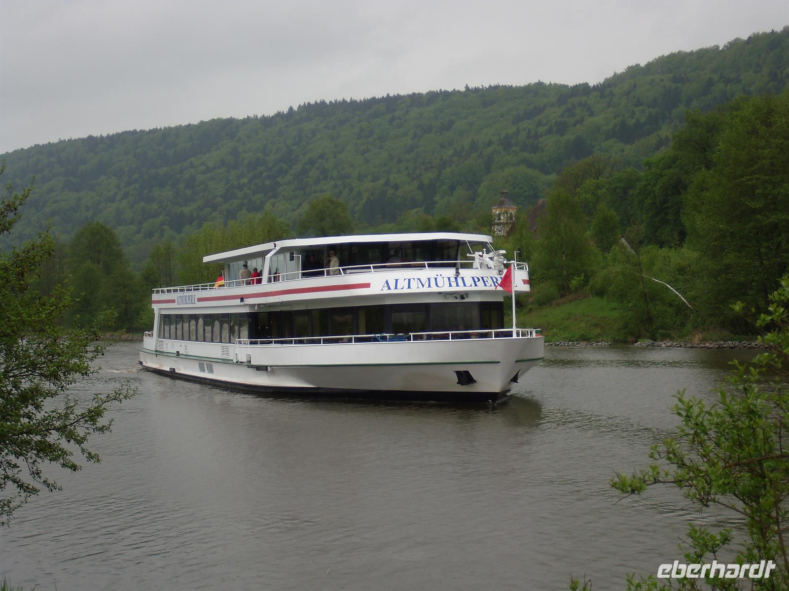 Am Nachmittag erreichen wir pünktlich ein Schiff, auf dem für die Gruppe im Oberdeck Plätze reserviert sind. Auch hier wird die Gastronomie gerne in Anspruch genommen. Eine Schleuse liegt auf der Strecke und ist ein Highlight vor allem für Reisegäste, die sich für Technik interessieren. Auf der Strecke zeigt sich das Altmühltal wirklich von einer sehr romantischen Seite. Wir legen in Riedberg an, wo der Bus schon uns wartet.