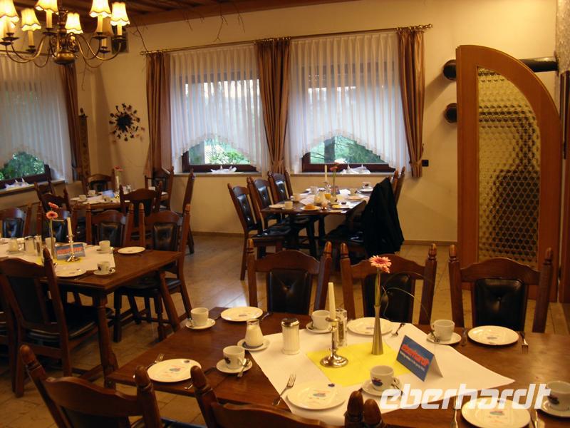 Das erste Frühstück: Die Wirtin macht auf Wunsch Spiegel- oder Rührei. Das Buffet ist reichhaltig. Alle haben bei der Ruhe hier sehr gut geschlafen. Die Laune ist prächtig.