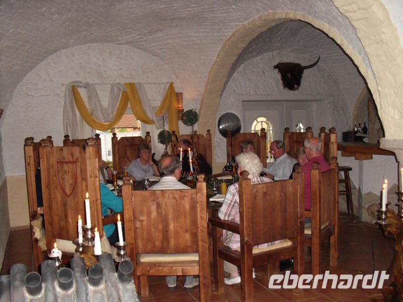 Das Abendessen findet heute im so genannten Kuhstall statt. Das alte Kreuzgratgewölbe gibt ein harmonisches Ambiente zum rustikalen Essen ab.