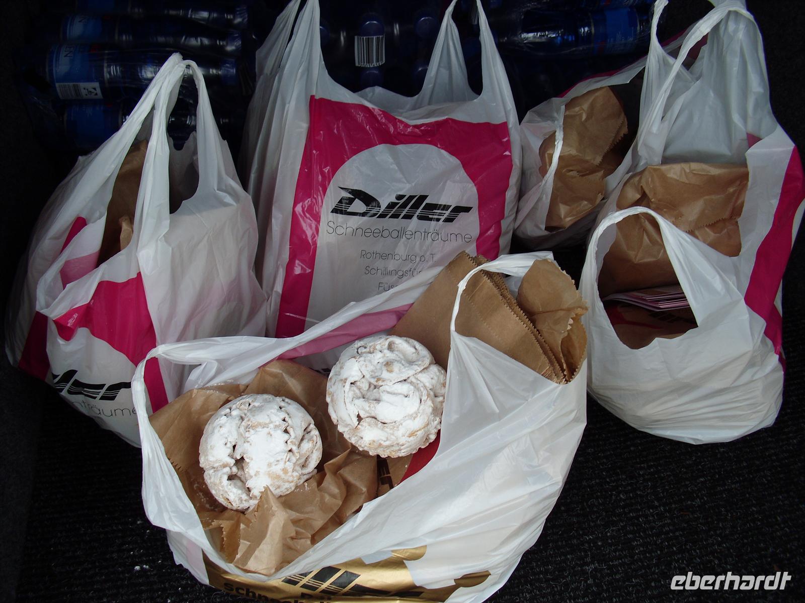 Ich laufe schnell in eine Bäckerei und kaufe als Überraschung für jeden Gast die Rothenburgische Spezialität: Schneeballen! Ein altes Feiertagsgebäck.