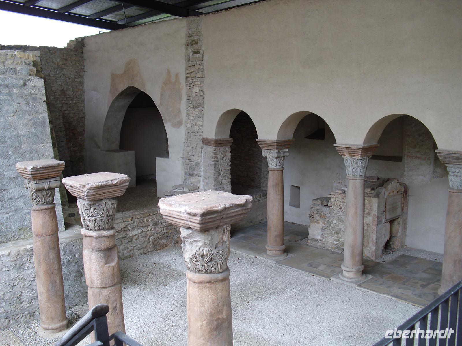 In Solnhofen erläutere ich den Jura-Plattenkalk und wir besichtigen die Ruine der Sola-Basilika, eine der ältesten Kirchen Bayerns aus dem 7. Jh.