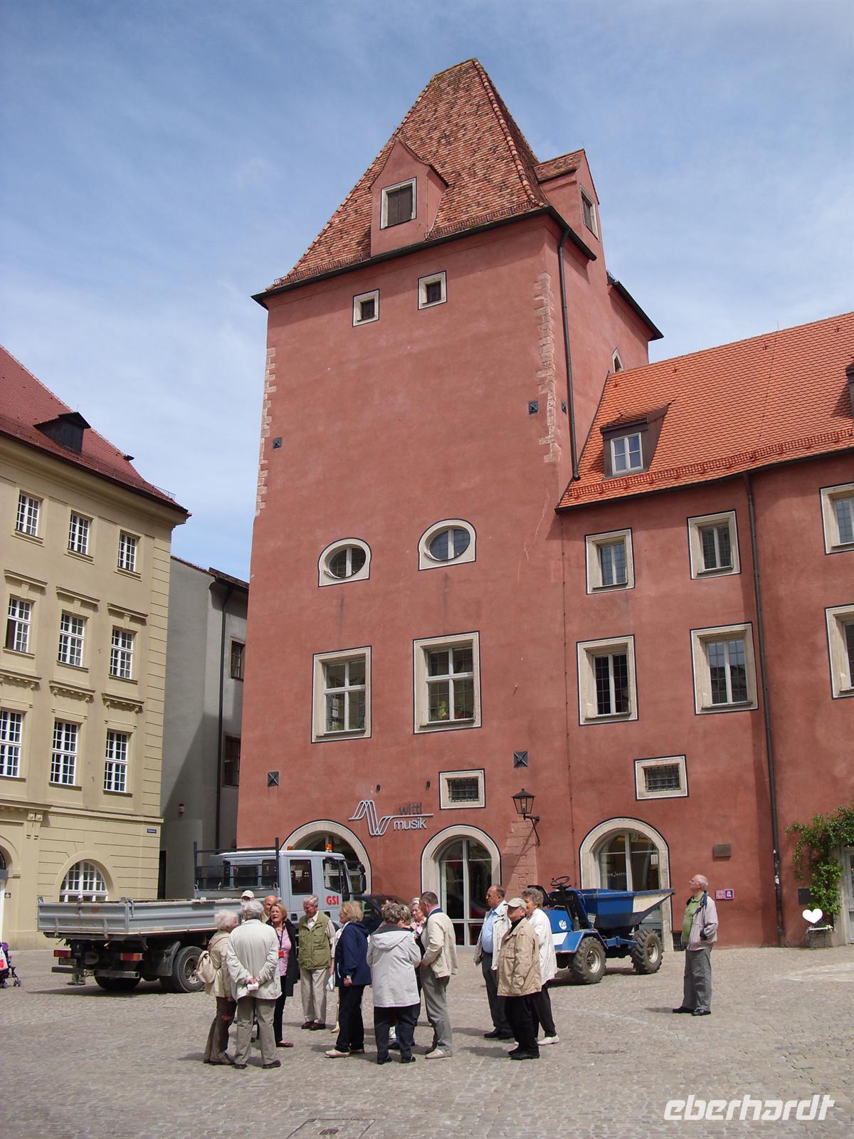 Über den Marktplatz und St. Emmeran vorbei, geht es in die Pfarrhofgasse und an der Stadtmauer am Folterturm entlang. Schon ist eine Stunde vorbei und wir begeben uns nach Regensburg.
