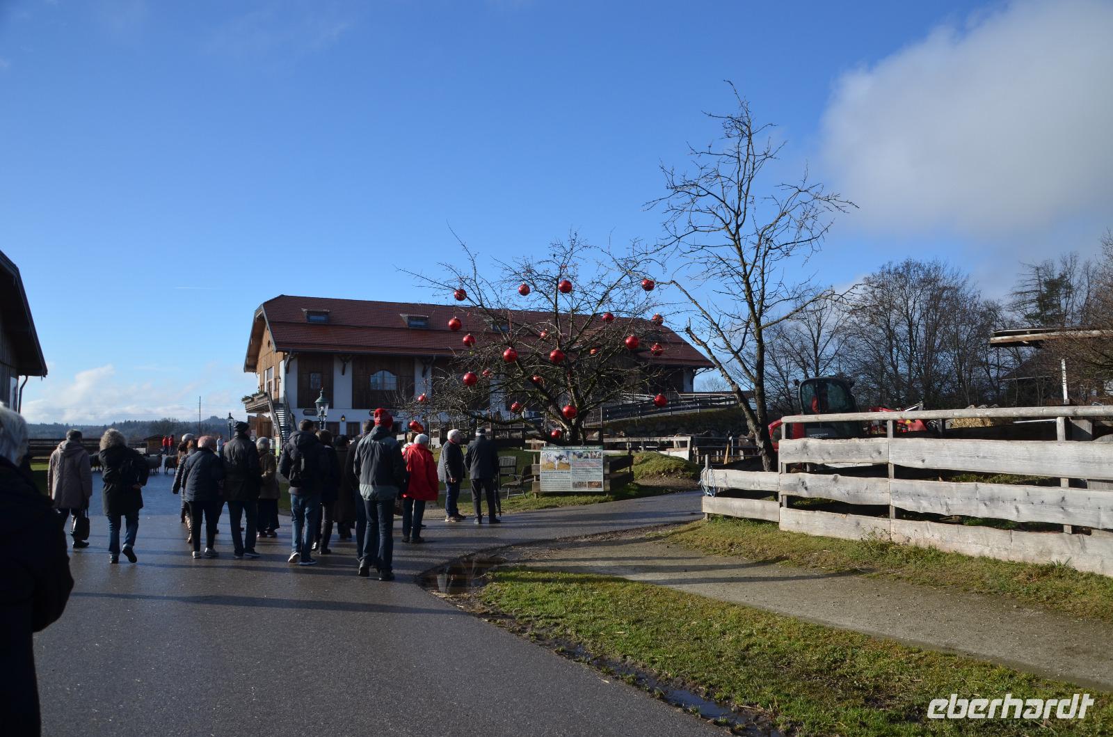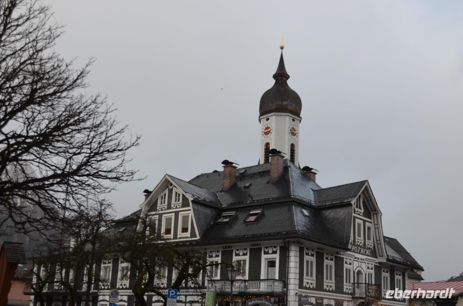Bei einem guten Frühstück konnten wir den ersten Tag in Bernried schön beginnen. Unsere Fahrt ging nach Bad Tölz wo wir von der Stadtführerin schon erwartet wurden. Unser erster Weg ging aber über den Inn auf die andere Seite wo wir die Klosterkirche und eine schöne Krippenausstellung beschtigen konnten. Beim Gang zurück in die Stadt hatten wir einen schönen Blick auf den Kalvarienberg mit seiner großen Kreuzigungsgruppe und einer schönen Kirche. Beim Gang durch die Stadt amchte uns unsere Stadtführerin immer wieder auf die schön bemalten Häuserfassaden aufmerksam und erzählte auch einiges zu den geschichtlichen Hintergründen. Ein Gang über den Weihnachtsmarkt und eine Aufwärmpause beschloß unseren Tölz Besuch. Jetzt ging es mit dem Bus weiter nach Garmisch doch leider machte uns das Wetter einen dicken Strich durch die Planung. Es begann zu regnen und von den schönen Bergmassiven um Garmisch herum waren nur Schemen zu erkennen. Von einem Bildschirm mit Panoramakarte von der Zugspitze war auch nur Regen und Nebel zu sehen. Die meisten Gäste triotzten aber dem Wetter und machten einen Spaziergang durch die Stadt. Unser Reisebegleiter Reinhard schlug bereits im Bus vor die Anwesenheit in Garmisch etwas zu verkürzen womit alle Einverstanden waren. Bald waren wir wieder im Hotel und genossen das feine Abendessen.