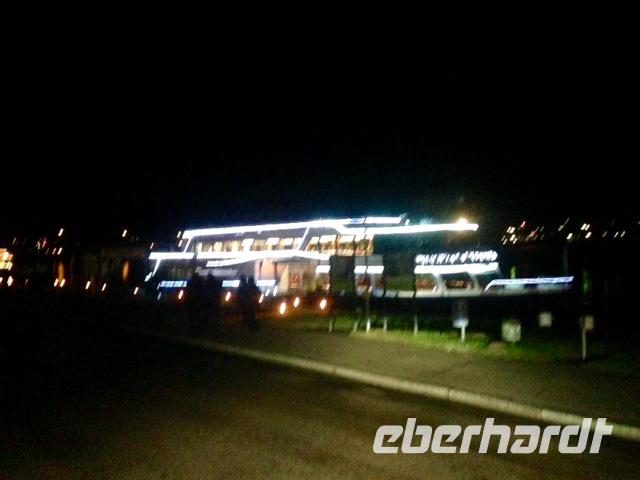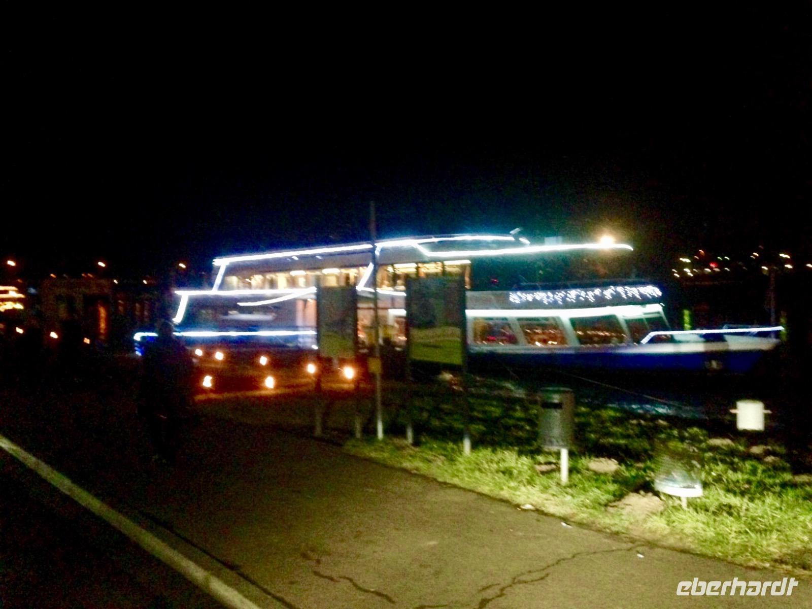 Der BUS bringt uns pünktlich um 18 Uhr an den Schiffsanleger in Kehlheim, wo schon eine ganze Reihe festlich beleuchteter Schiffe auf ihre Gäste warten.
