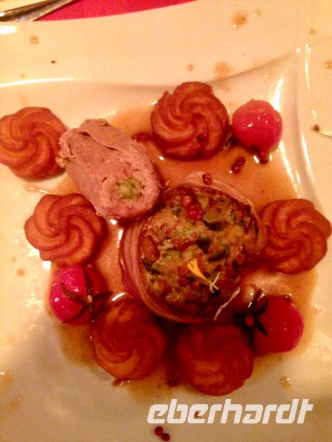 Kalb trifft Schwein mit Herzoginkartoffeln und glacierten Tomaten