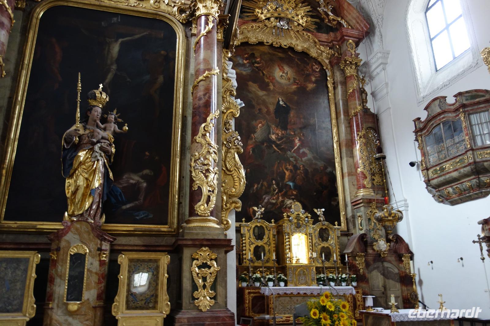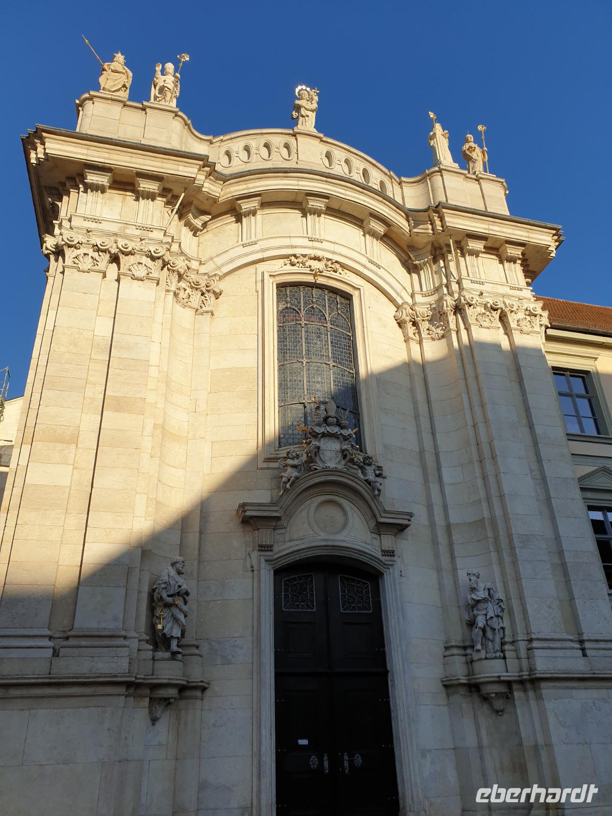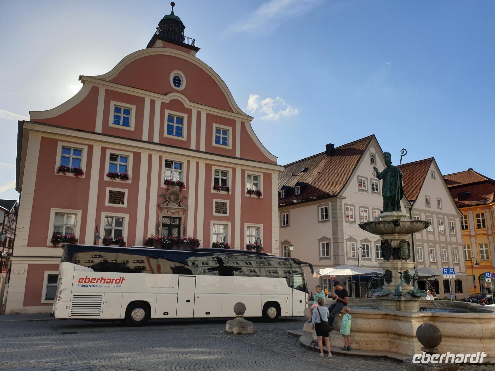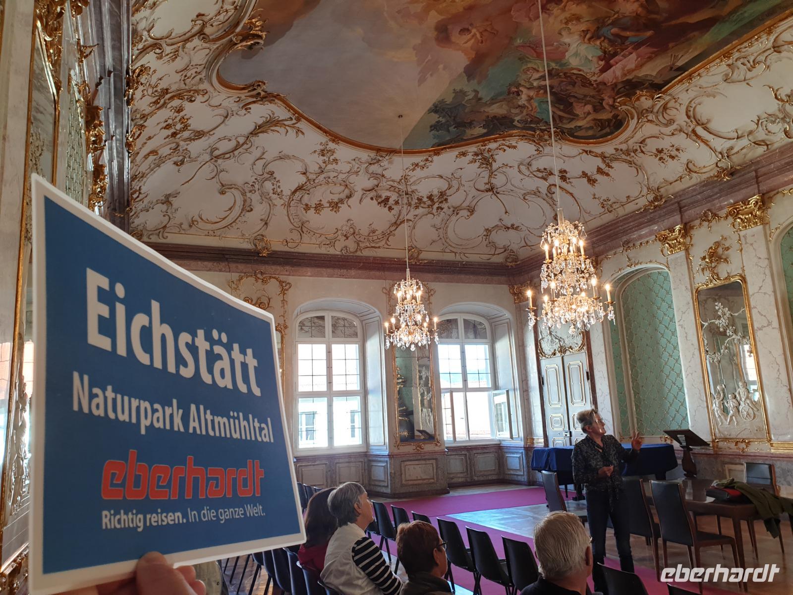 Eichstätt, jahrhundertealte Bischofsstadt und Sitz der katholischen Universität, ist geprägt von prachtvollen Klöstern und reich geschmückten Kirchen. So gehört der Eichstätter Residenzplatz mit einem verspieltem Brunnen und der Mariensäule zu einem der schönsten Plätze Deutschlands durch seine barocke Einheitlichkeit. Ein richtiger Glanzpunkt. Zeugnis dieser Baukunst ist auch der prunkvolle Spiegelsaal und das Treppenhaus der Residenz, die ehemalige Klosterkirche Notre Dame de Sacre Coeur und die Klosterkirche von St. Walburg - um nur einige Bauwerke zu nennen. Darüber hinaus ist auch moderne Architektur, geschaffen vom Diözesanbaumeister Karljosef Schattner oder vom Stararchitekten Günther Behnisch von großer Bedeutung. Das und vieles mehr erfahren wir heute mit einer 2 Stunden Stadtführung. Bedeutende Baumeister wie Gabriel de Gabrieli und Maurizio Pedetti gaben im Auftrag der einstigen Fürstbischöfe von Eichstätt dieses barocke Kleid. Hier ist der Barock ein Spezialthema. Eichstätt hat mehrere Kirchen mit entsprechender Ausgestaltung (z.B. die Schutzengelkirche oder St. Walburg) und eine barocke Innenstadt von zwei berühmten Barock-Bausmeistern (Gabriel de Gabrieli und Maurizio Pedetti, beide aus Graubünden). Auch die großen missionarischen Gestalten Hl. Willibald und Hl. Walburga und ihre Familie sind weit über die Grenzen des Bistums hinaus bekannt. Über die Hl. Walburga hat sogar John Henry Newman geschrieben.