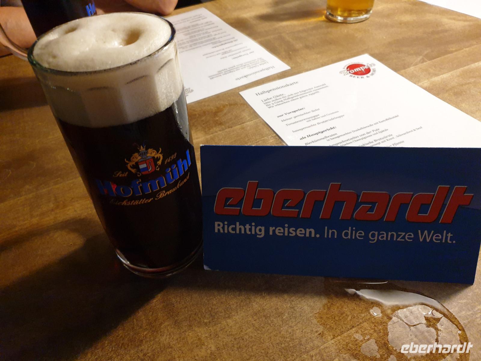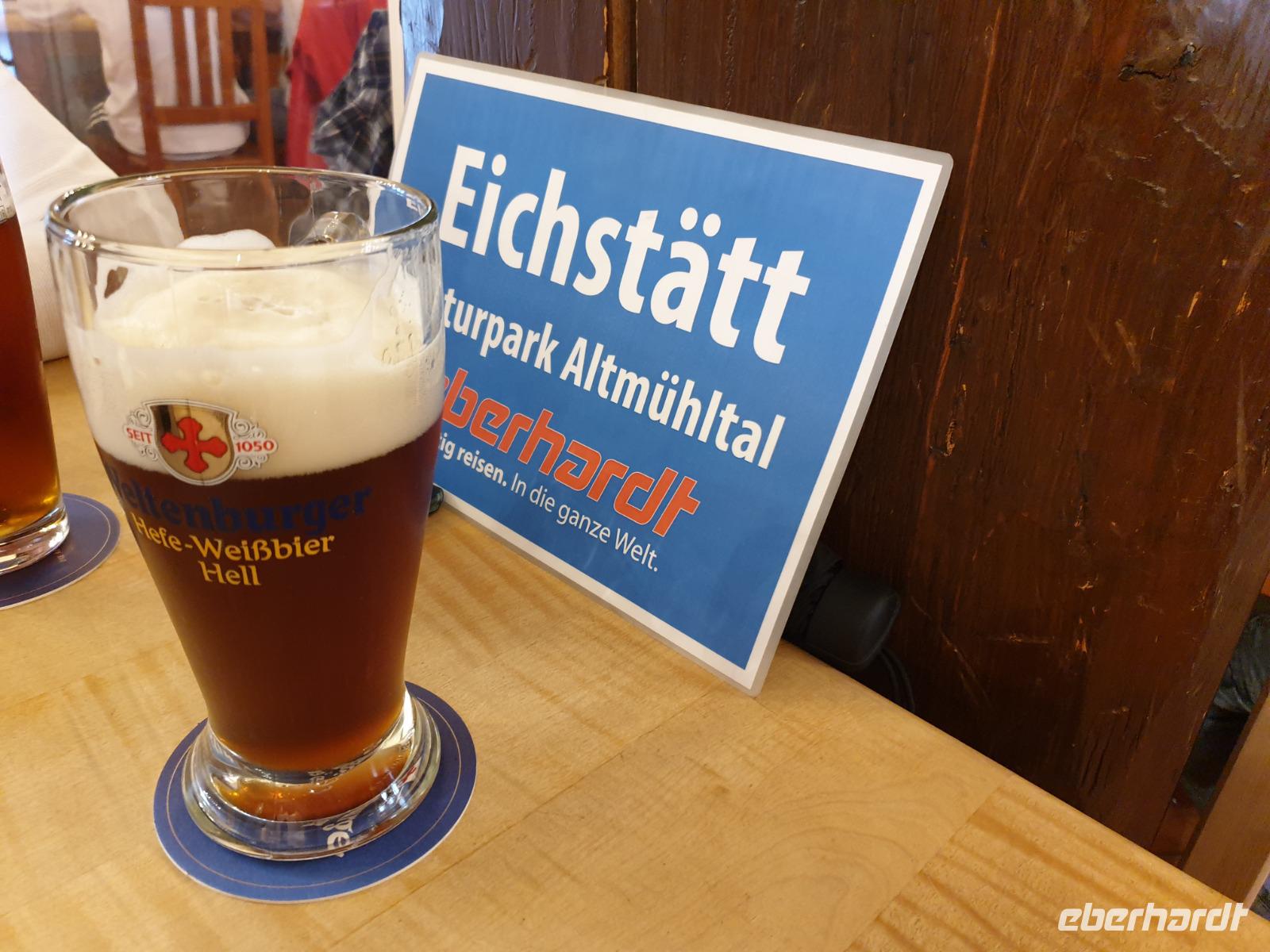 Unsere „Entdeckungsreise" endet in einem der reizvollen Cafés der Innenstadt. Bei einer Tasse Kaffee im Freien lassen wir uns mittags noch einmal den unverkennbaren italienischen Flair der Stadt auf uns wirken. Die barocke Stadt Eichstätt im Zentrum des Naturpark Altmühltal lädt weiter zu einem Stadtbummel durch ihre Altstadt ein.Der Nachmittag steht zur freien Verfügung. Wie wäre es mit einem Spaziergang durch den Hofgarten oder ein Besuch am Informationszentrum des Naturpark Altmühltal mit Biotopgarten und Spanischem Brunnen? Einige möchten aber lieber mit Benjamin ein bisschen mehr Bewegung und hoch auf den Willibaldsburg laufen;) Die Willibaldsburg ist mit dem Juramuseum, dem Museum für Ur- und Frühgeschichte und dem Botanischen Garten Hortus Eystettensis das Wahrzeichen von Eichstätt. Der Hortus Eystettensis liegt aber in seiner heutigen Gestalt doch direkt neben der Willibaldsburg. Der Hortus Eystettensis war ein Botanischer Garten, der in der Zeit der Renaissance unter Fürstbischof Johann Konrad von Gemmingen auf den Bastionen der Willibaldsburg in Eichstätt angelegt wurde. Mächtig und stark erhebt sich die Burg auf einer Bergzunge und thront über der Stadt Eichstätt und dem Altmühltal. Von hier hat man einen wunderbaren Ausblick auf die Stadt und das Tal. Ein Besuch des Juramuseums mit einzigartigen Fossilien, dem bekannten Archäopteryx und Juravenator sowie den „lebendigen Fossilien", nämlich den in Aquarien zu beobachtenden Fischen und Meerestieren, die von ihren urzeitlichen Vorfahren abstammen könnten, mit anschließendem Besuch des Fossiliensteinbruchs ist nicht nur besonders bei Kindern beliebt. 2 Gäste von uns besichtigen das Juramuseum und andere wandern noch weiter mit Benjamin bis zu der Frauenbergkapelle. Gemeinsam mit Benjamin gestalten wir einen schönen Nachmittag bis zum Abendessen. Wir lassen uns von den bayerischen Empfehlungen und köstlichen Spezialitäten diesmal im Braugasthof Trompete wieder überraschen.